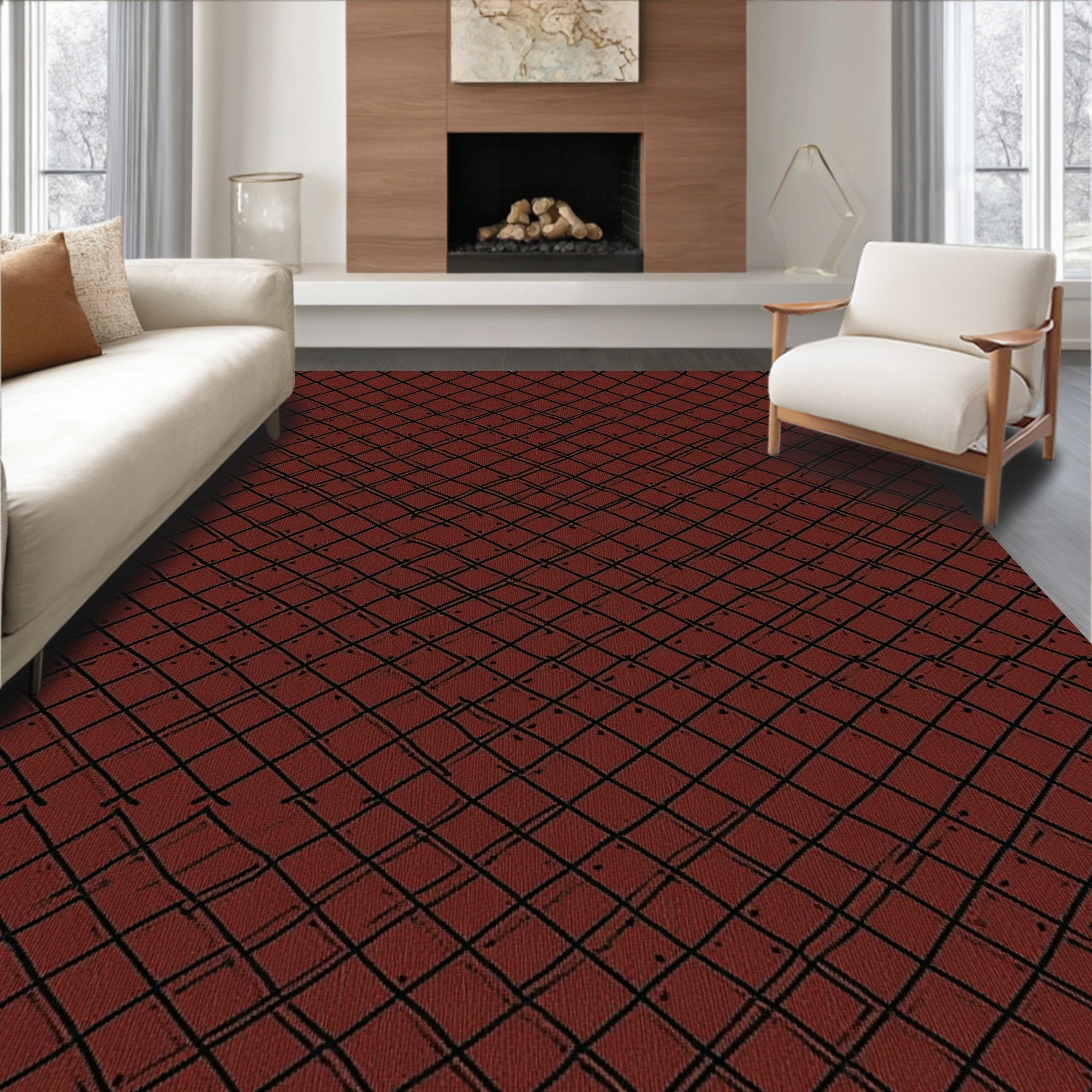 Ultra Soft Area Rug, Non Slip, Stain Resistant, Washable Area Rugs for Living Room, Bedroom, Classic Tartan Inspired Crosshatch with Heritage Motifs(Brown) Overview: