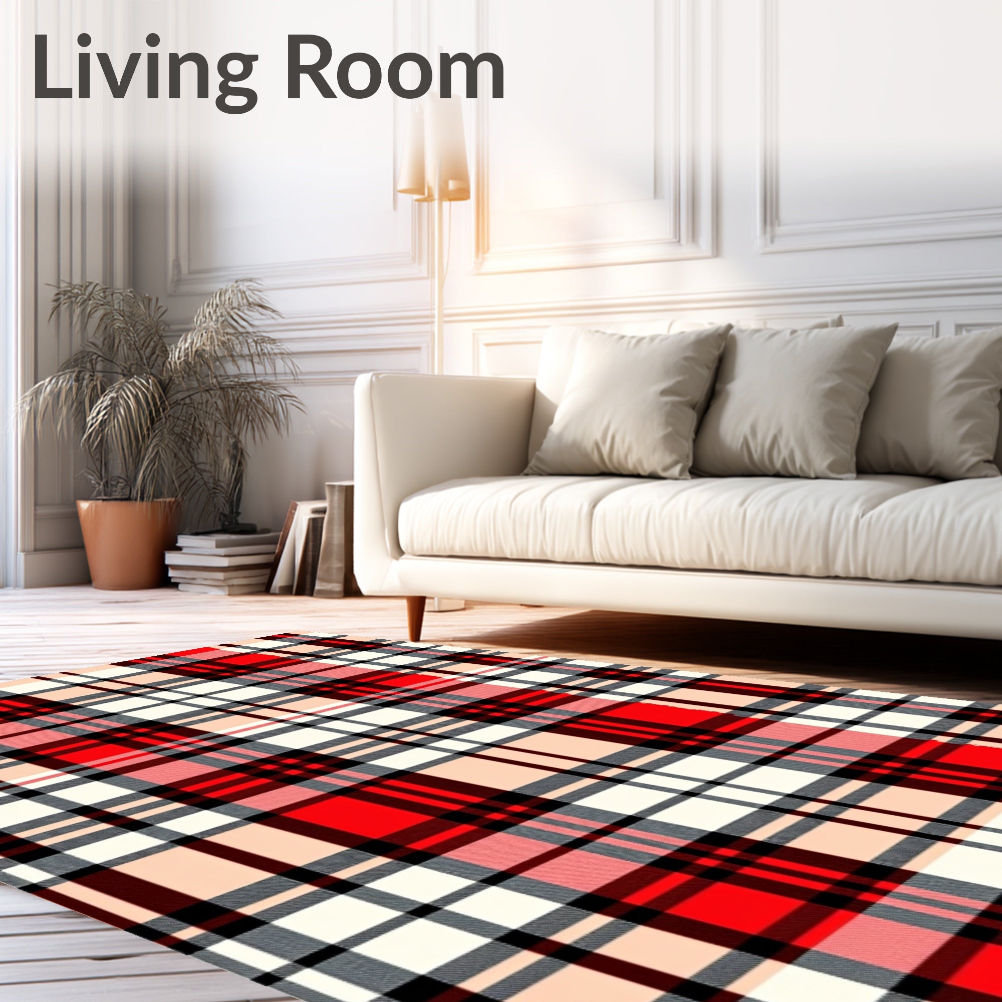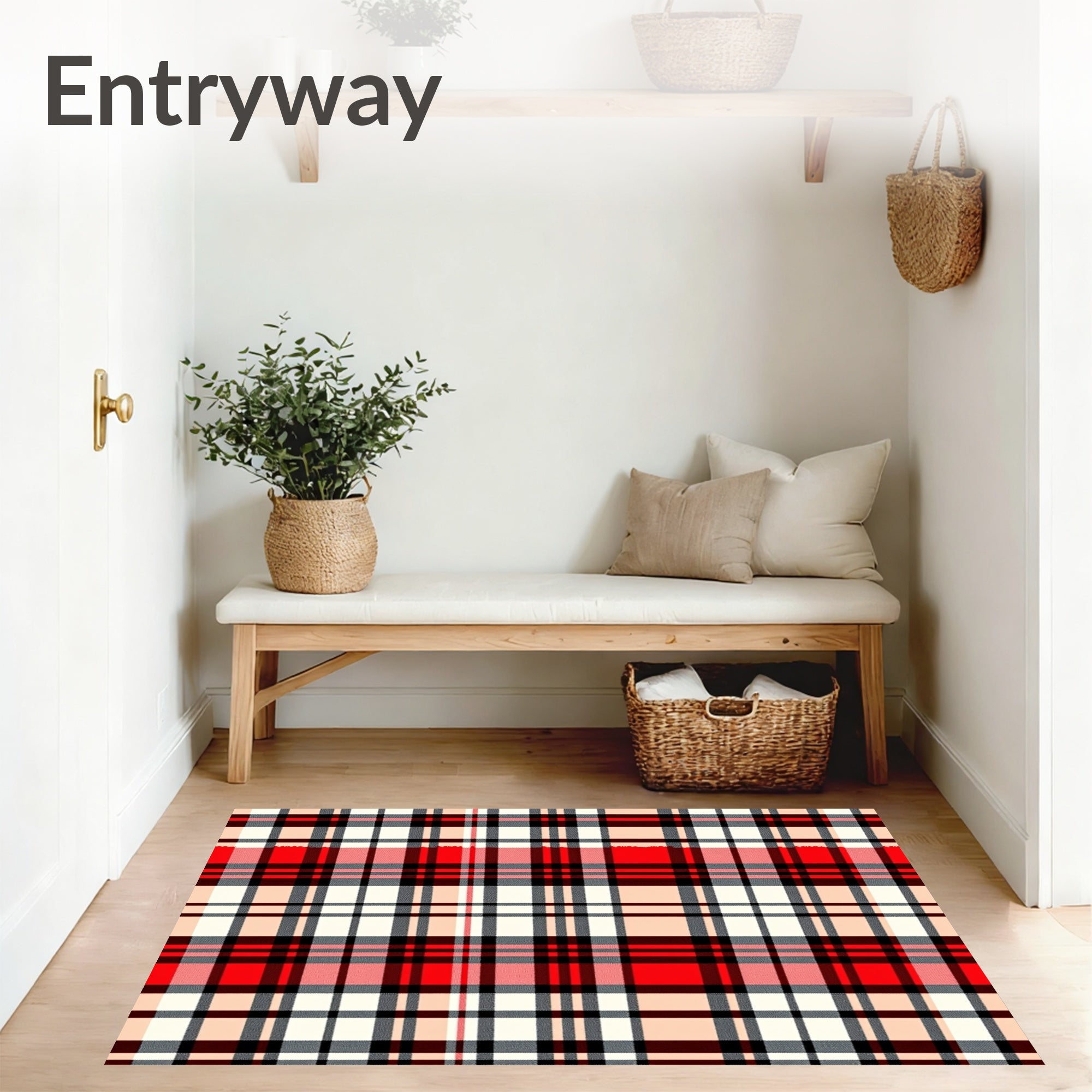 Ultra Soft Area Rug, Non Slip, Stain Resistant, Washable Area Rugs for Living Room, Bedroom, Classic Tartan Inspired with Bold Checkered Squares(Red) Overview: