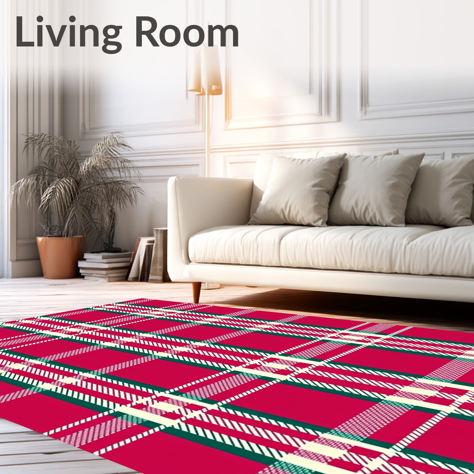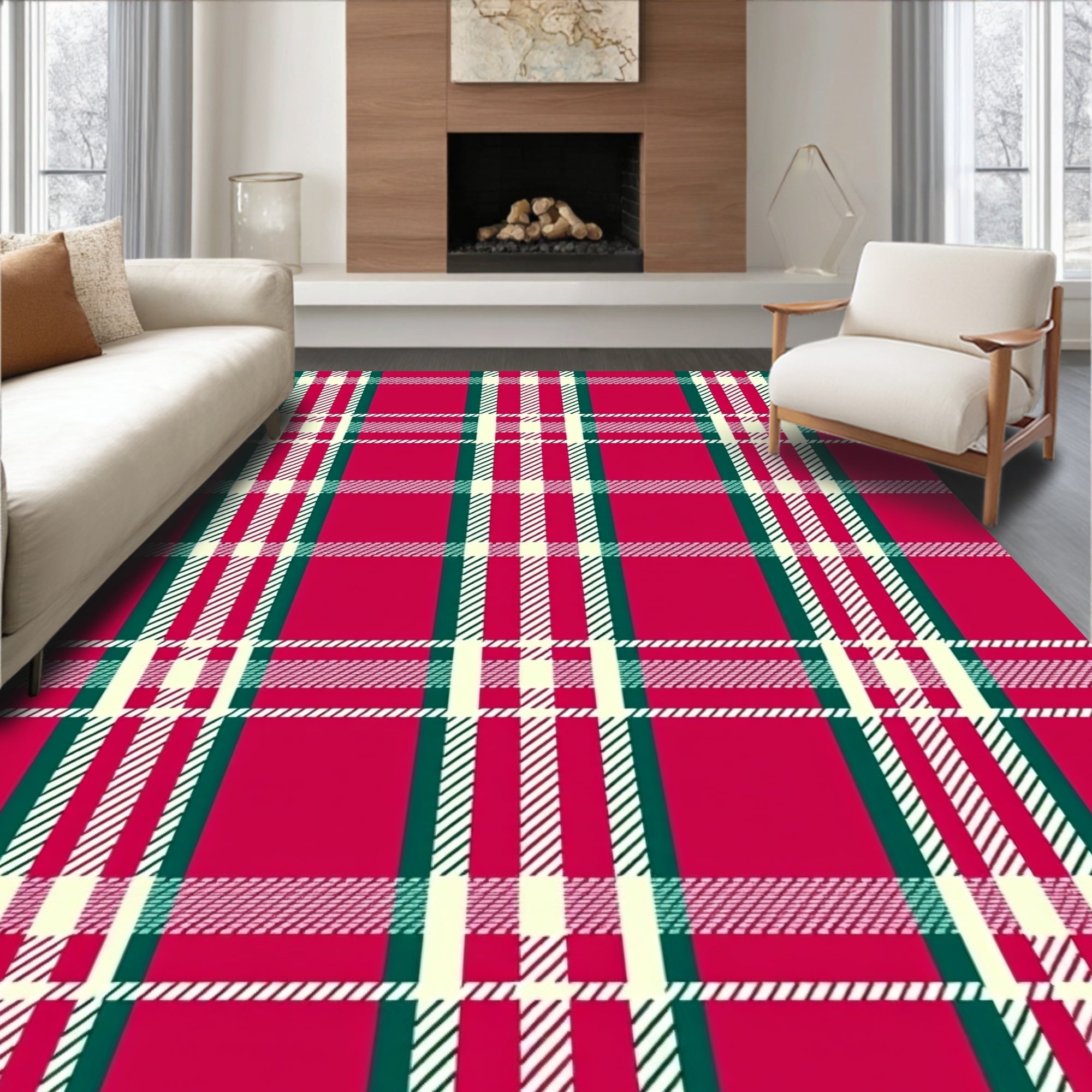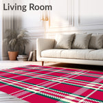 Ultra Soft Area Rug, Non Slip, Stain Resistant, Washable Area Rugs for Living Room, Bedroom, Classic Tartan Plaid with Interlocking Festive Stripes(Red) Overview: