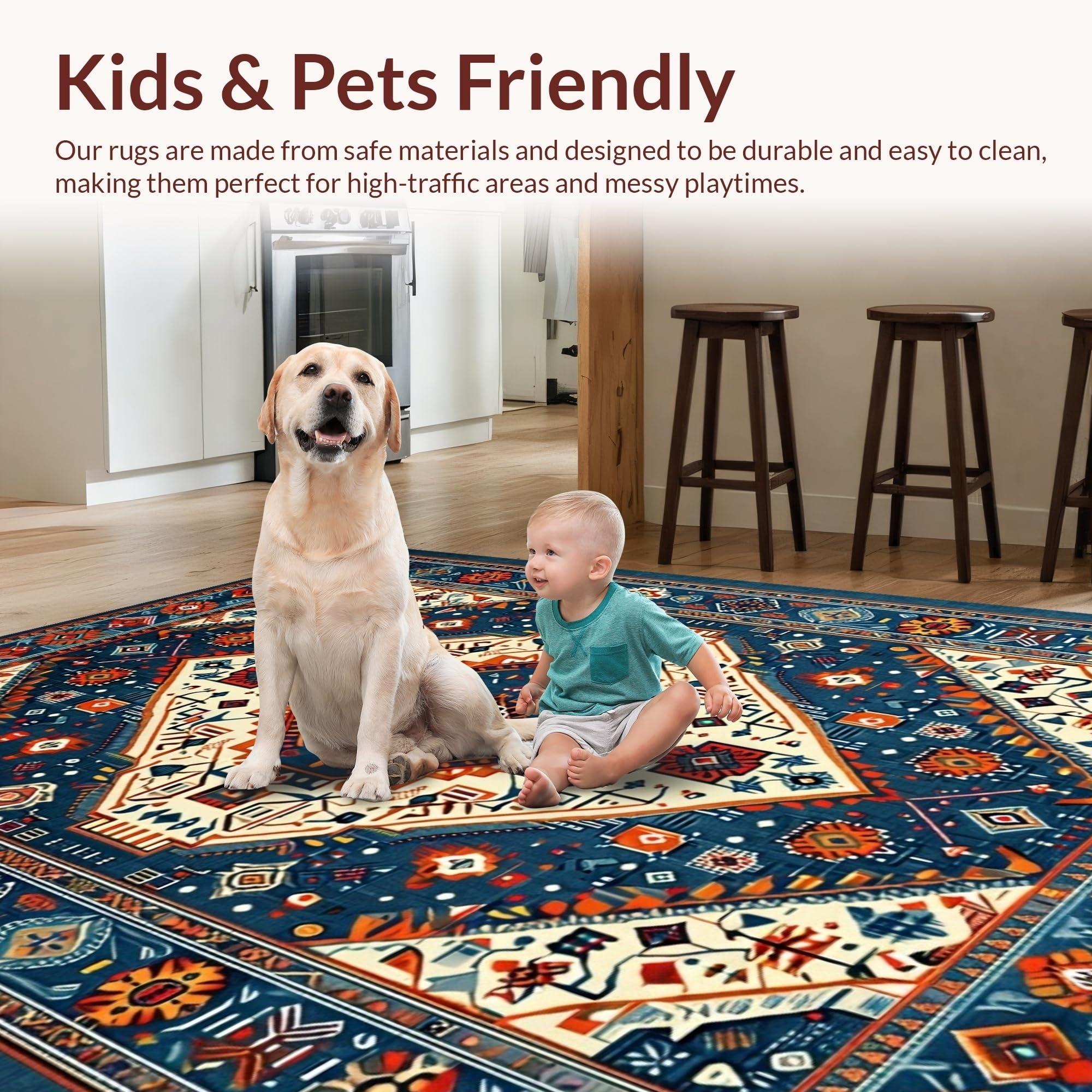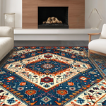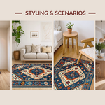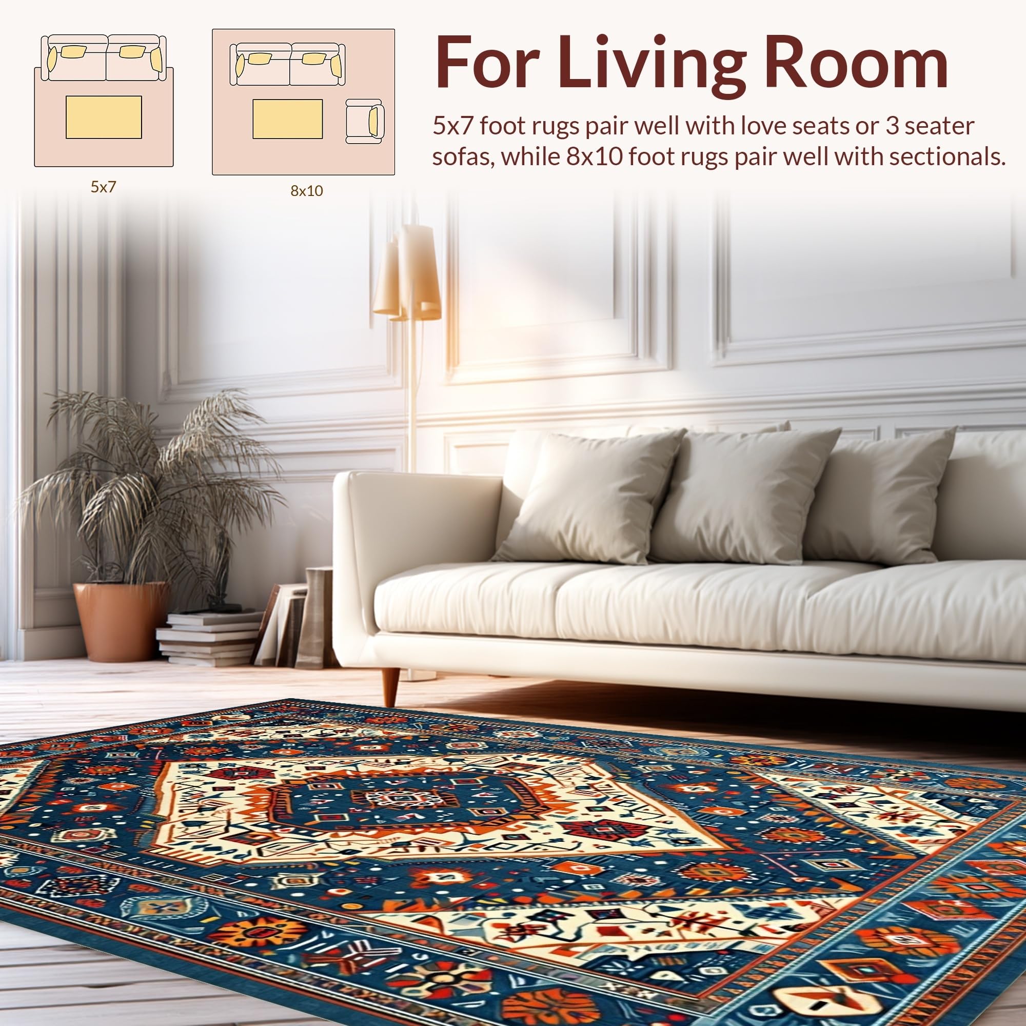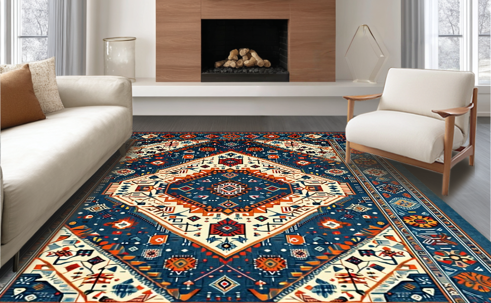 Ultra Soft Area Rug, Non Slip, Stain Resistant, Washable Area Rugs for Living Room, Bedroom, Classic Textured Medallion Design(Blue) Overview: