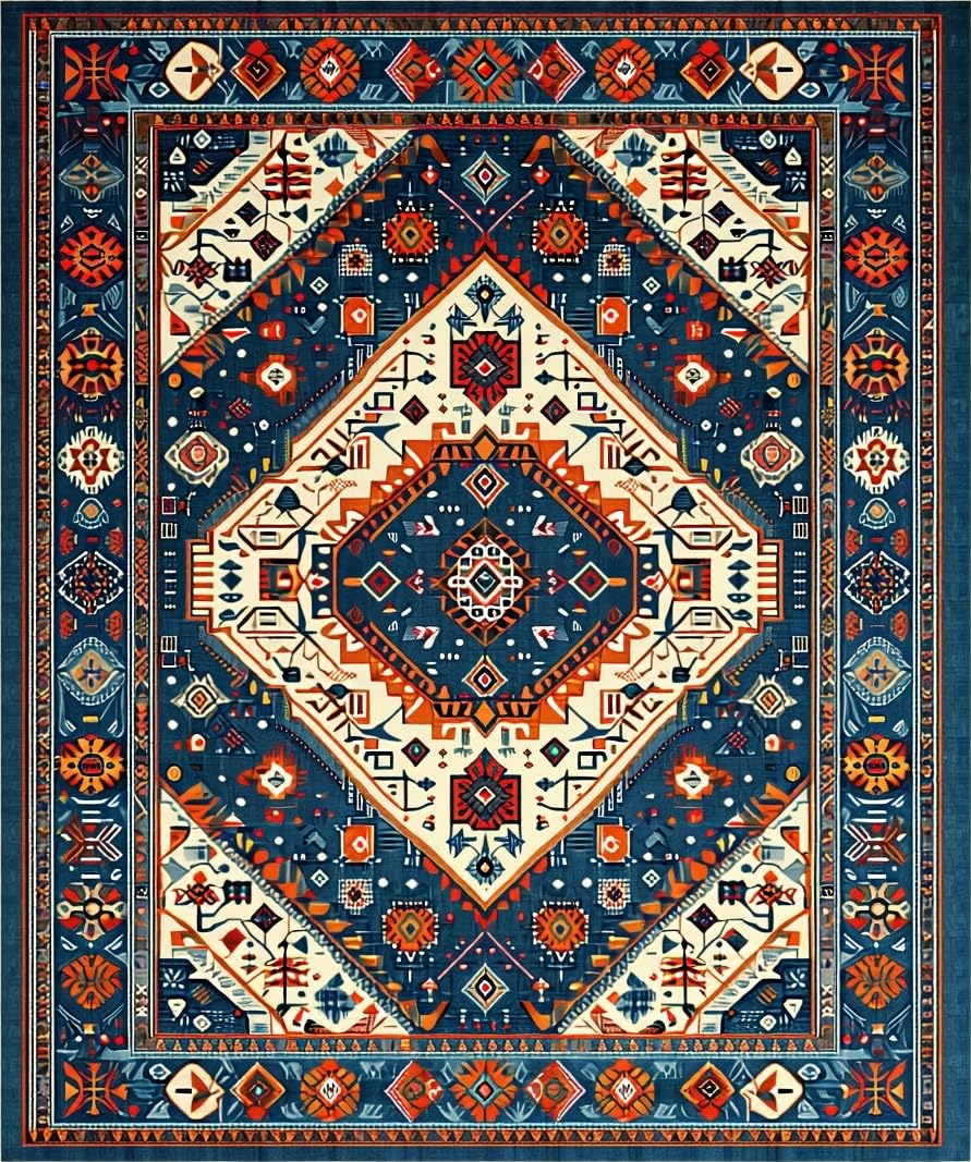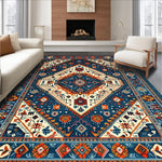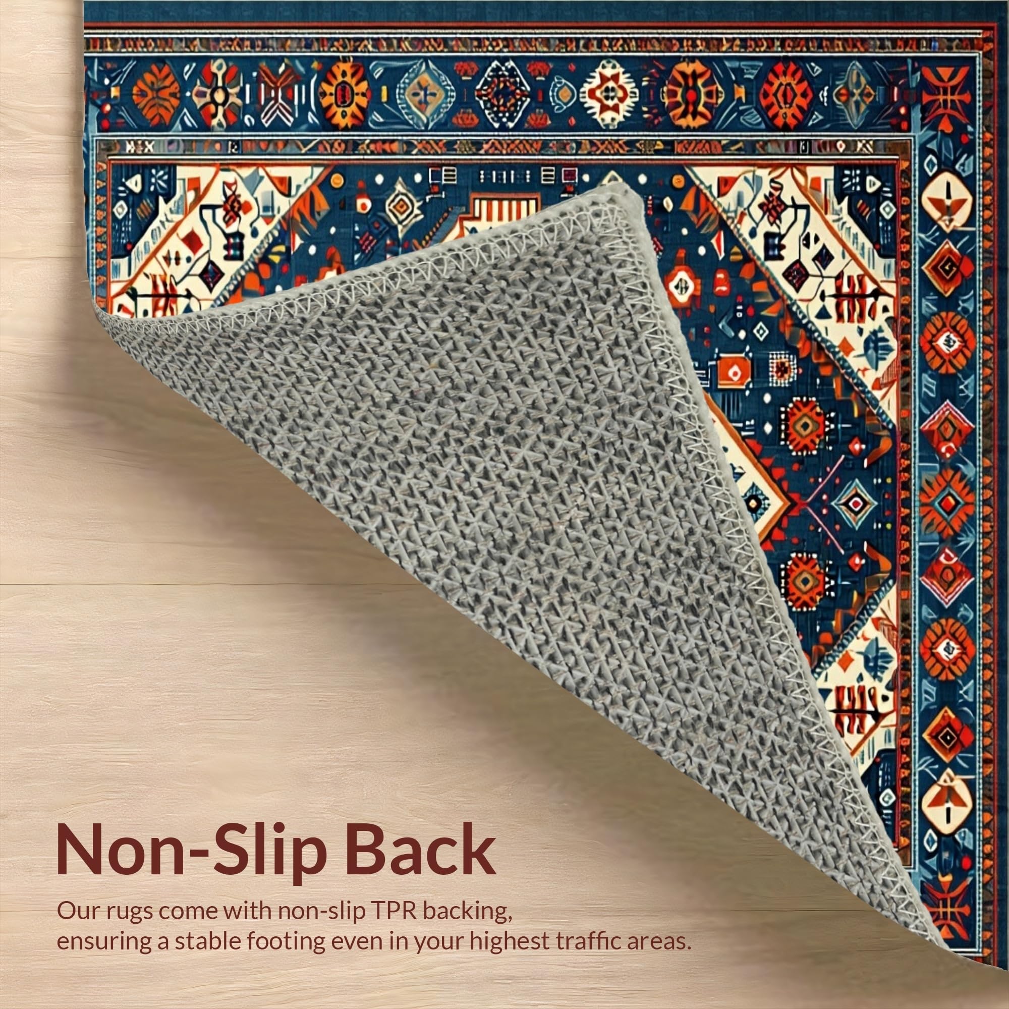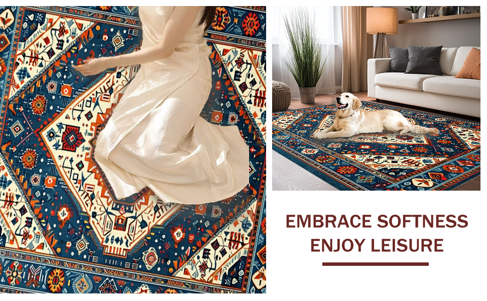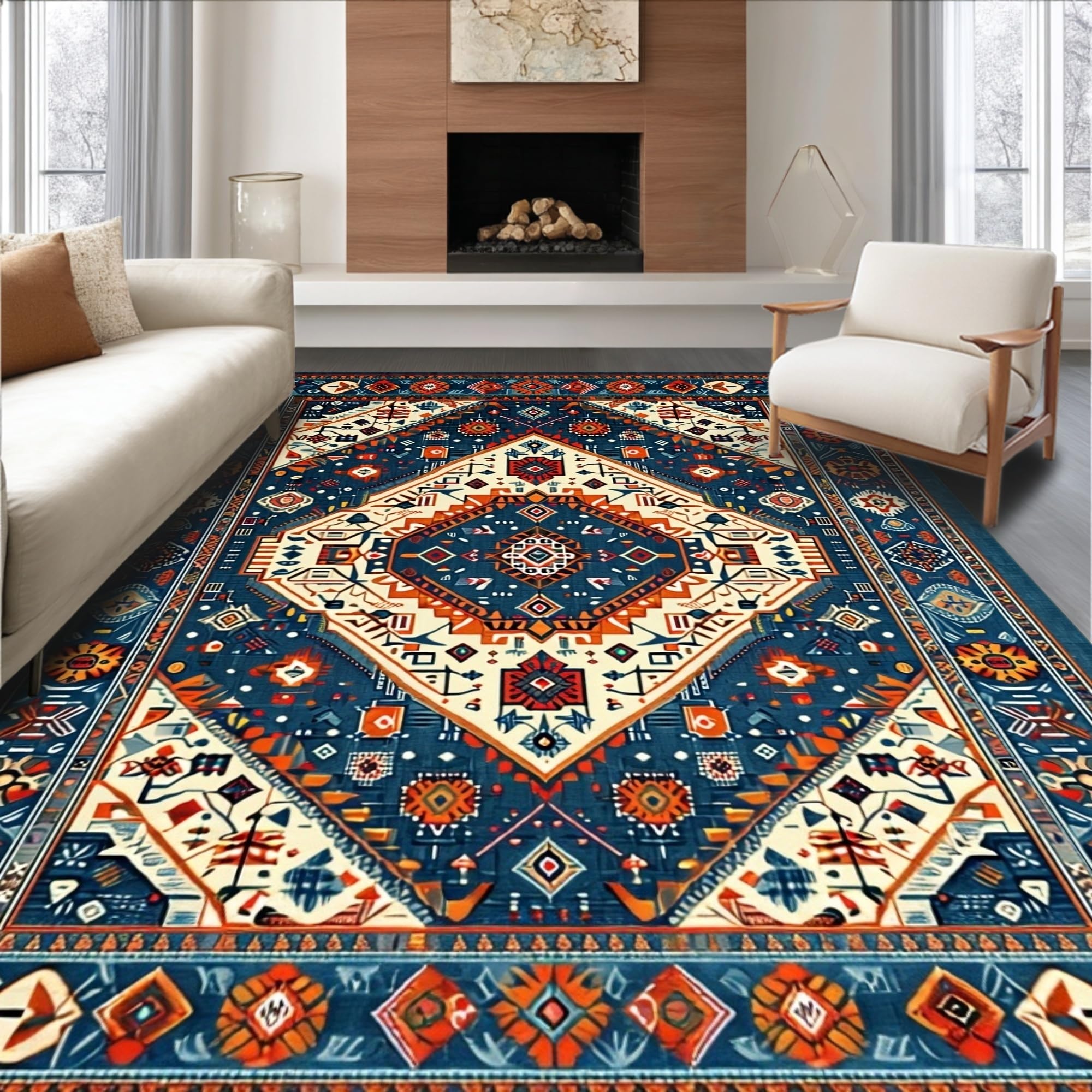 Ultra Soft Area Rug, Non Slip, Stain Resistant, Washable Area Rugs for Living Room, Bedroom, Classic Textured Medallion Design(Blue) Overview: