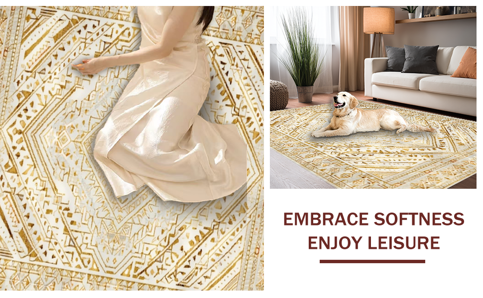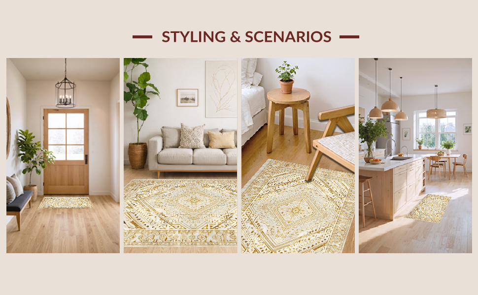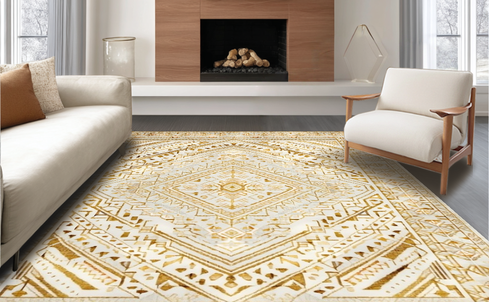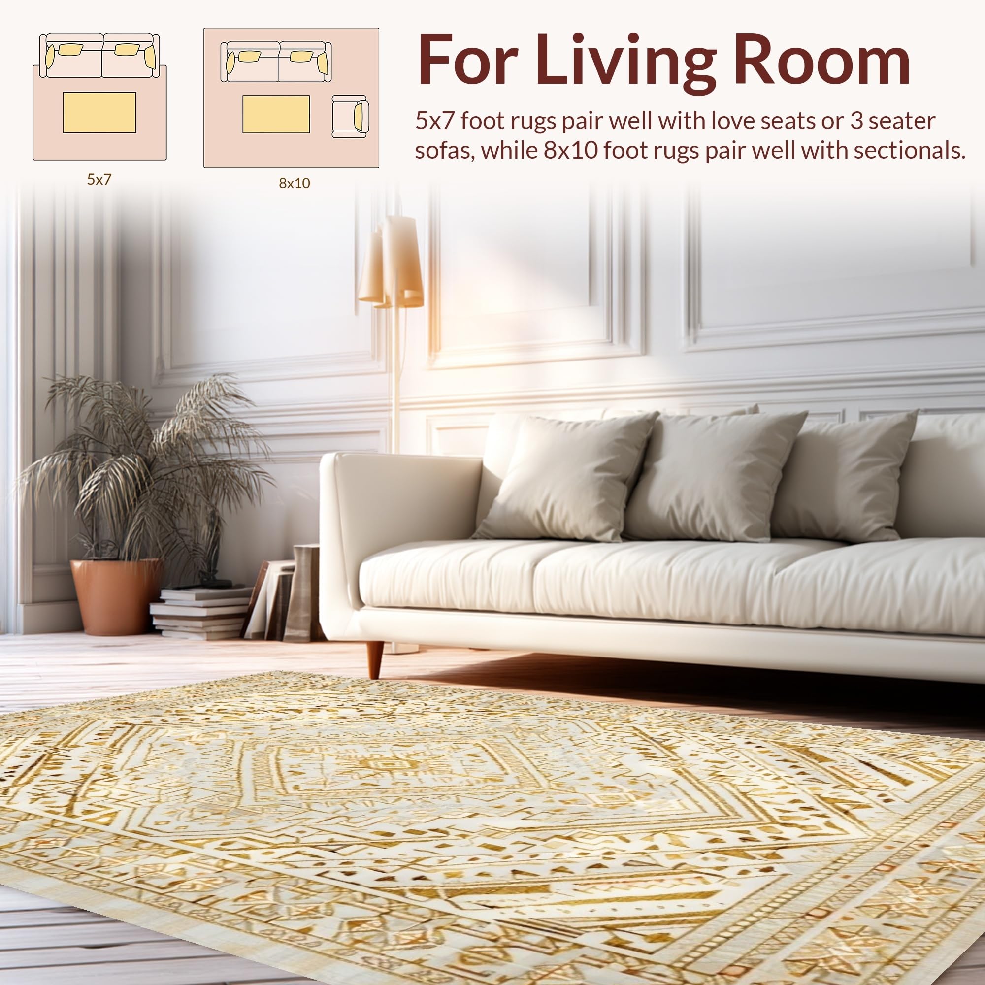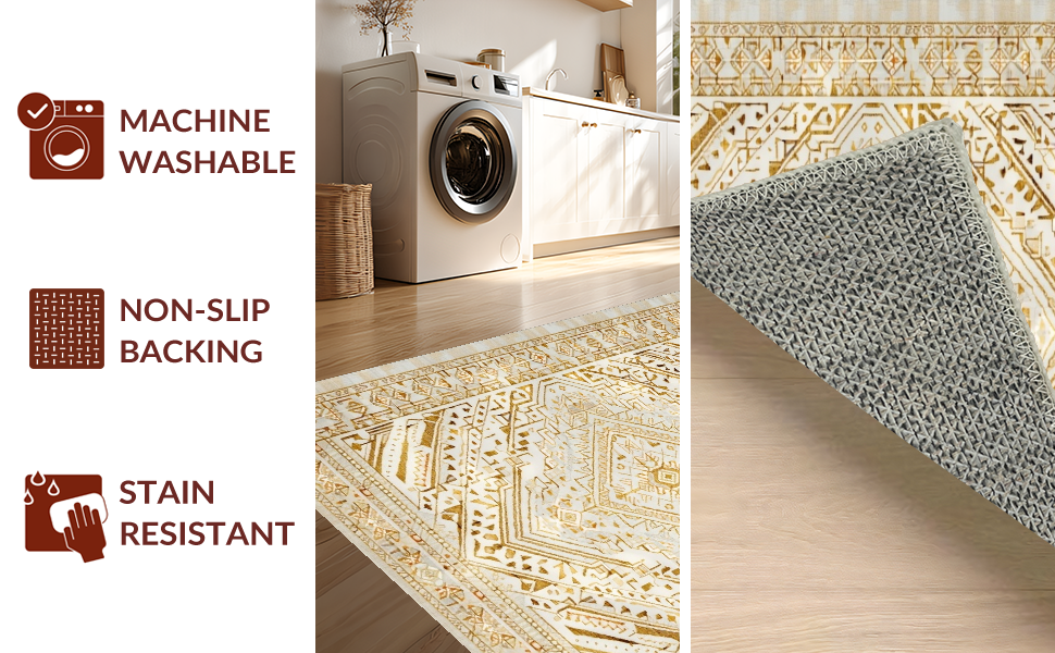 Ultra Soft Area Rug, Non Slip, Stain Resistant, Washable Area Rugs for Living Room, Bedroom, Classic Tiled Geometric Appeal(Beige) Overview: