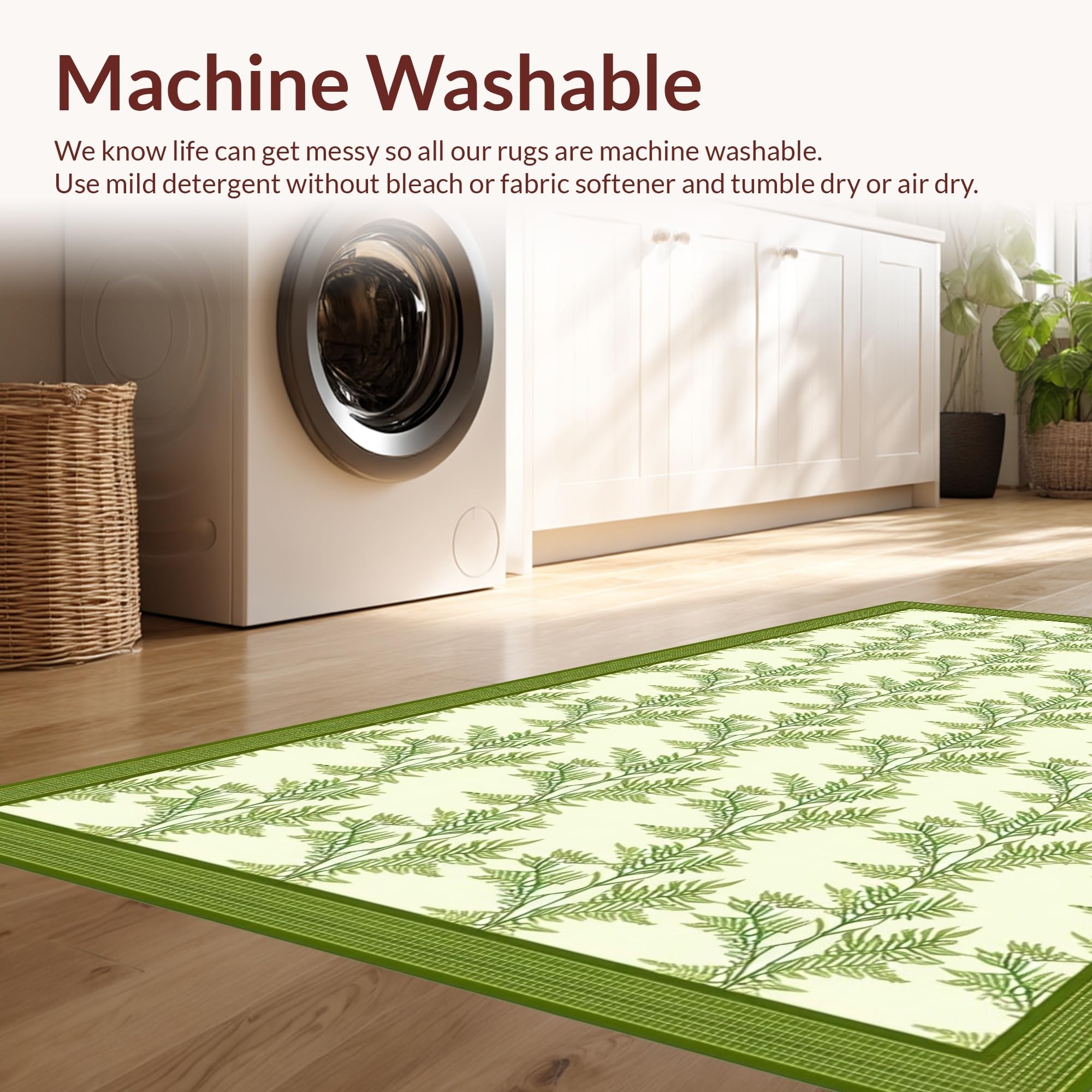 - Machine Washable: Our rugs can be easily thrown in the wash machine.
