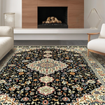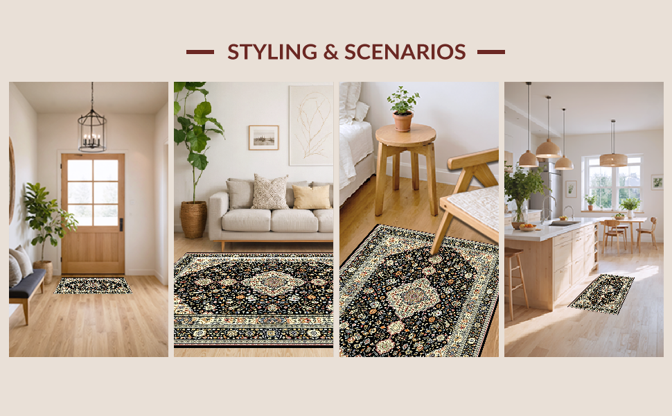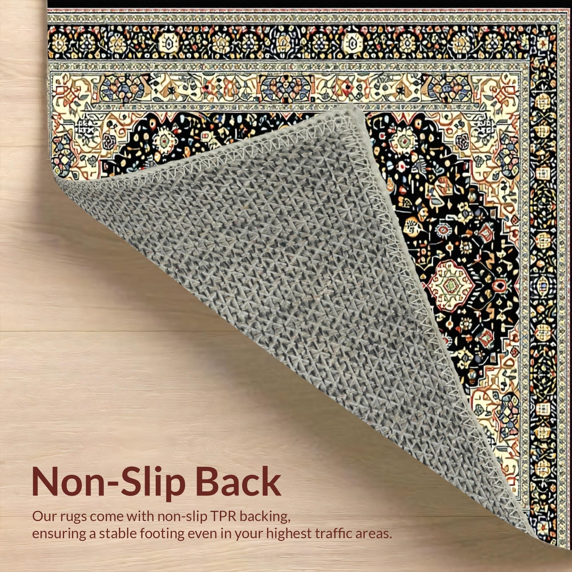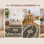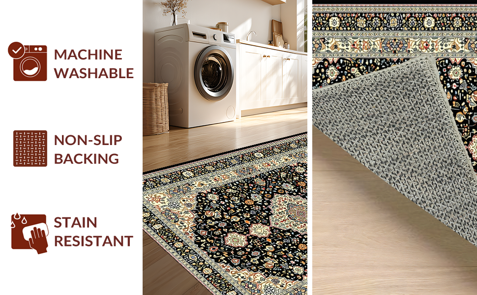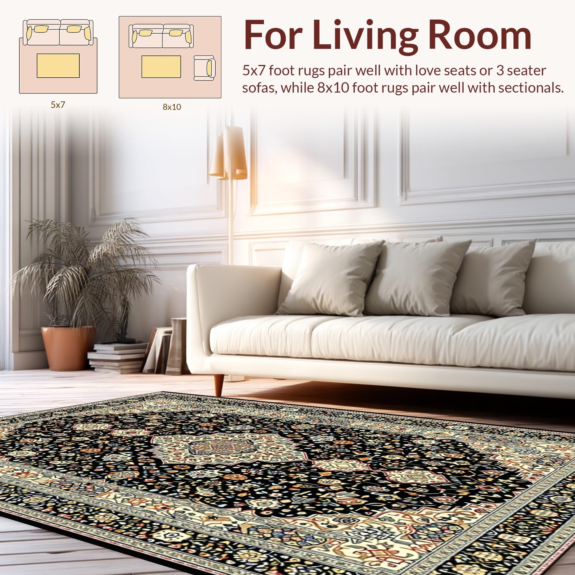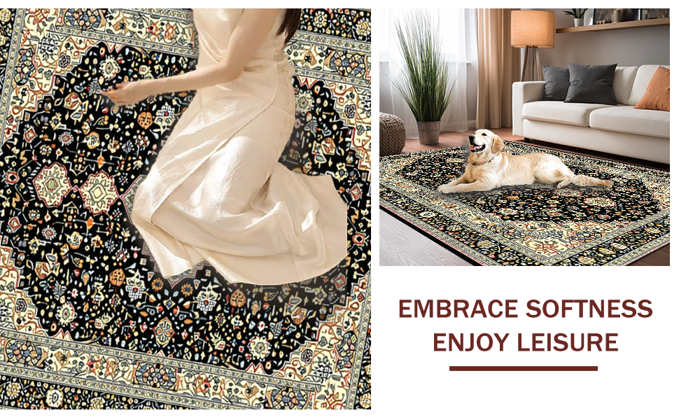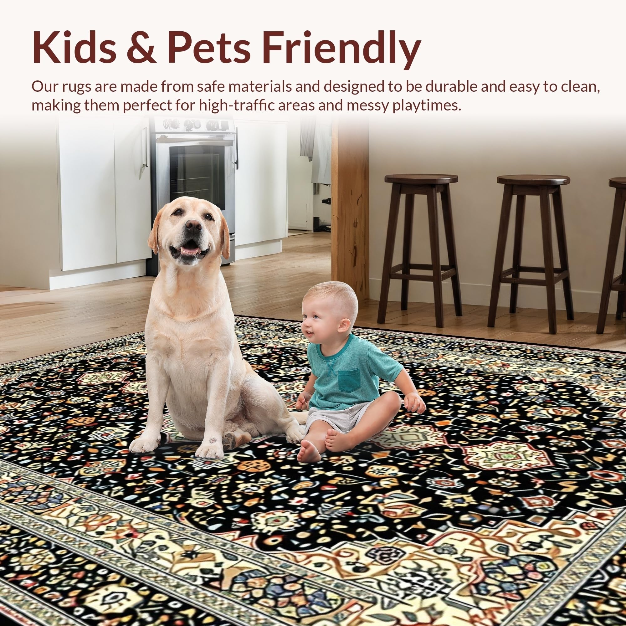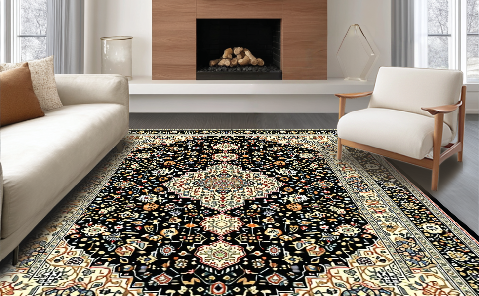 Ultra Soft Area Rug, Non Slip, Stain Resistant, Washable Area Rugs for Living Room, Bedroom, Classic Transitional Ogee Design(Black) Overview: