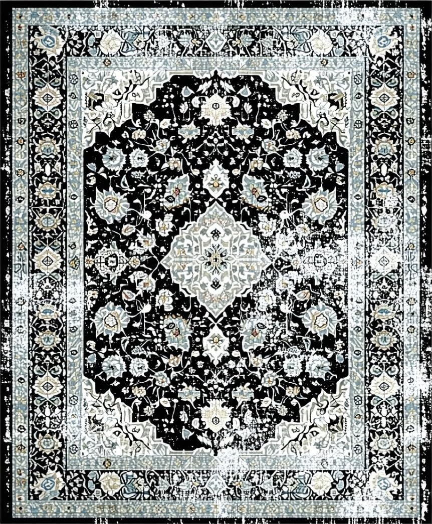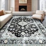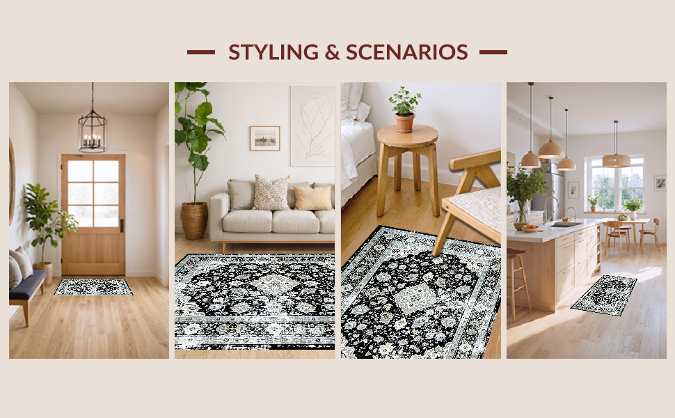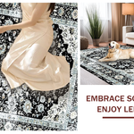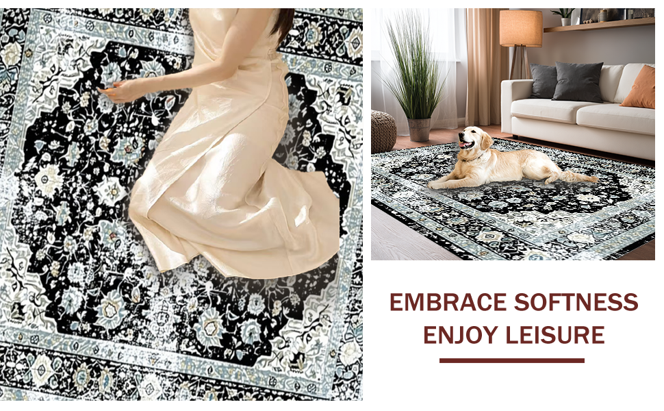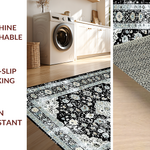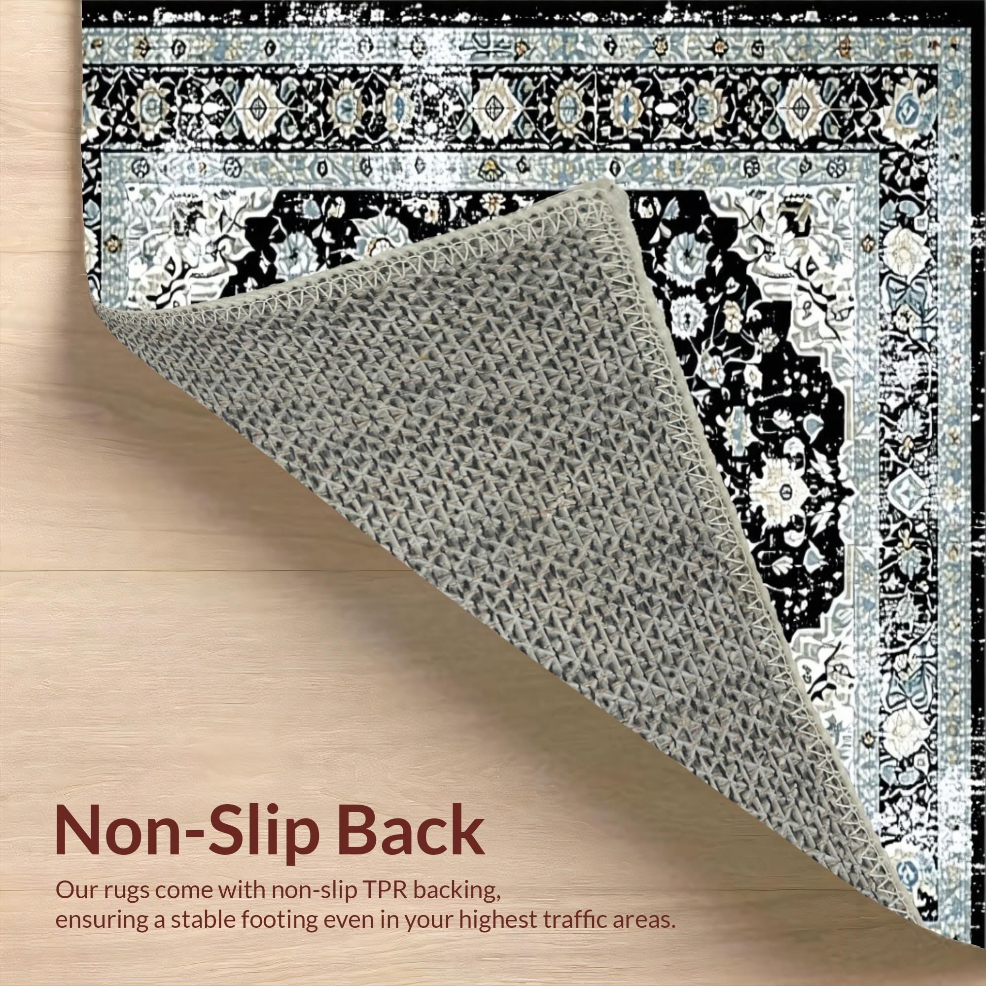 Ultra Soft Area Rug, Non Slip, Stain Resistant, Washable Area Rugs for Living Room, Bedroom, Classic Trellis Design with Grey Accents(Black) Overview: