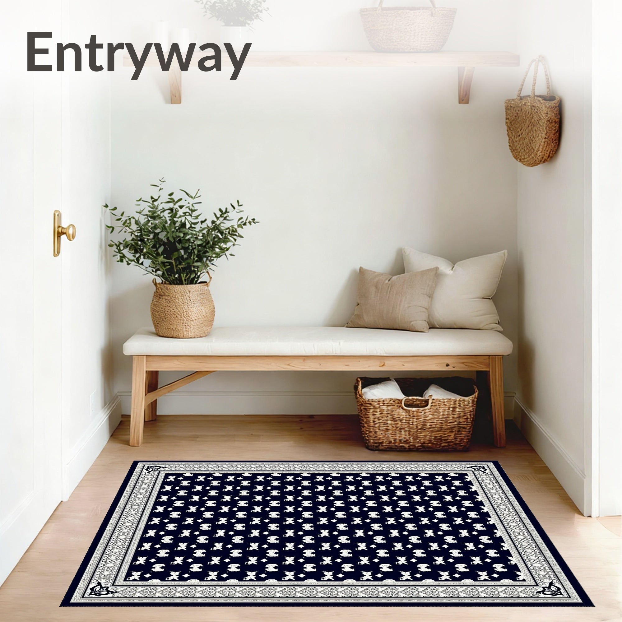 Ultra Soft Area Rug, Non Slip, Stain Resistant, Washable Area Rugs for Living Room, Bedroom, Classic Trellis Ornate Pathway Decoration(Black) Overview: