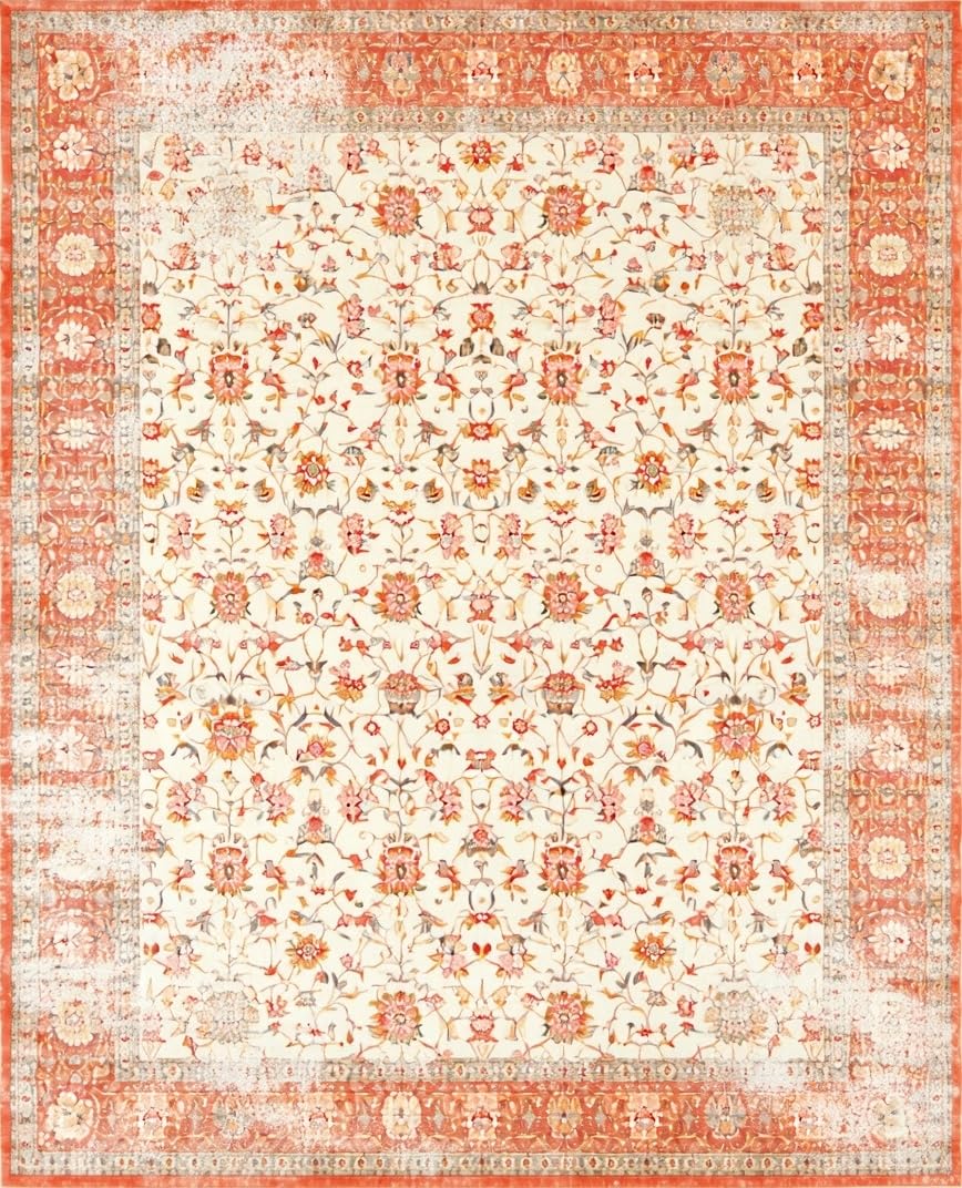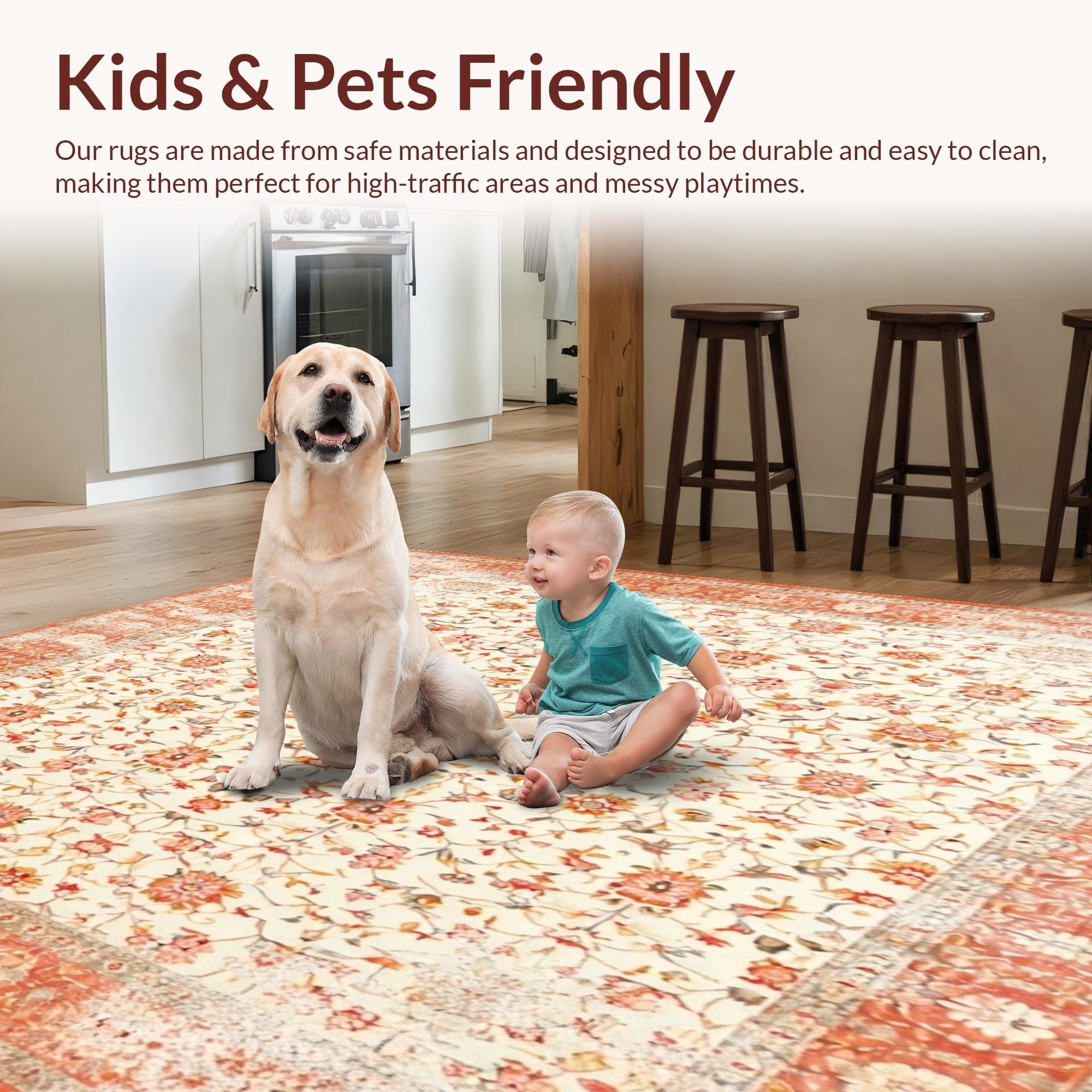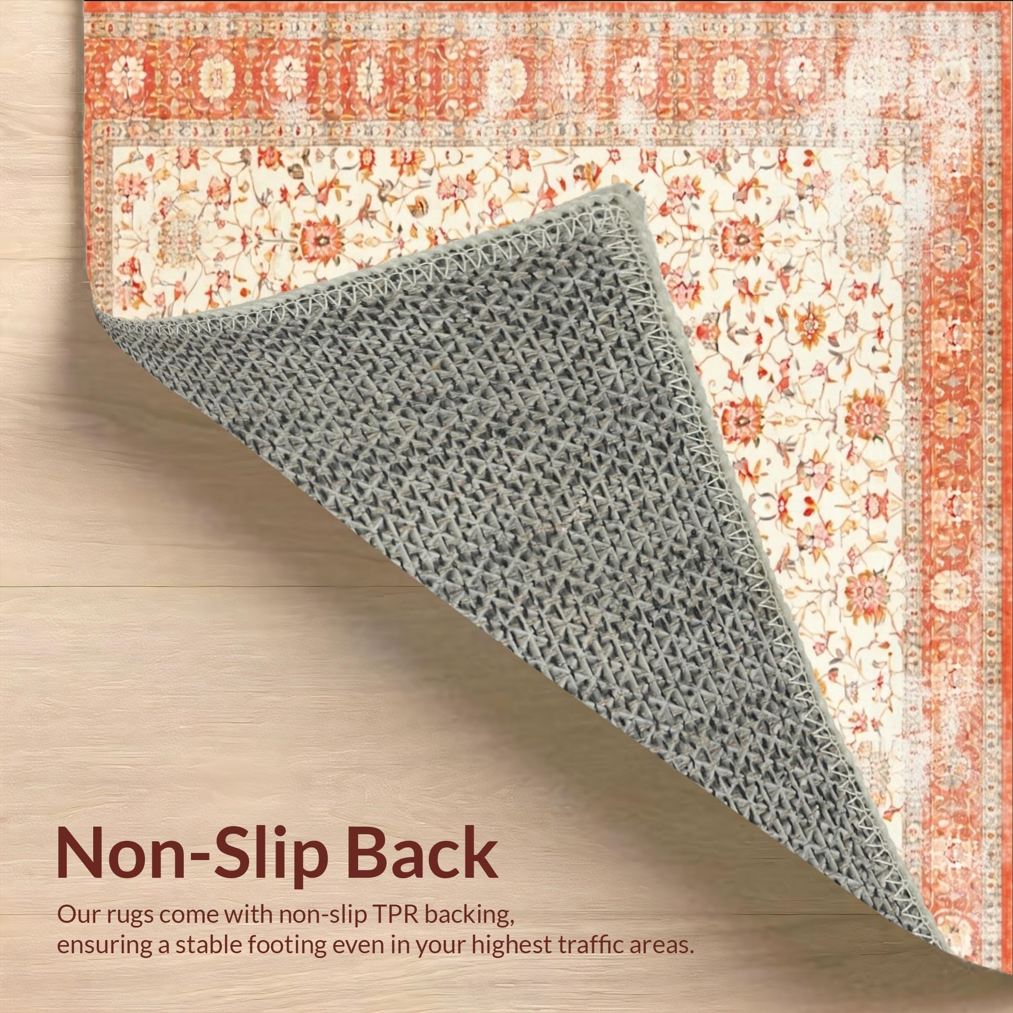 Ultra Soft Area Rug, Non Slip, Stain Resistant, Washable Area Rugs for Living Room, Bedroom, Classic Vintage Area Cream and Terracotta Floral(Beige) Overview: