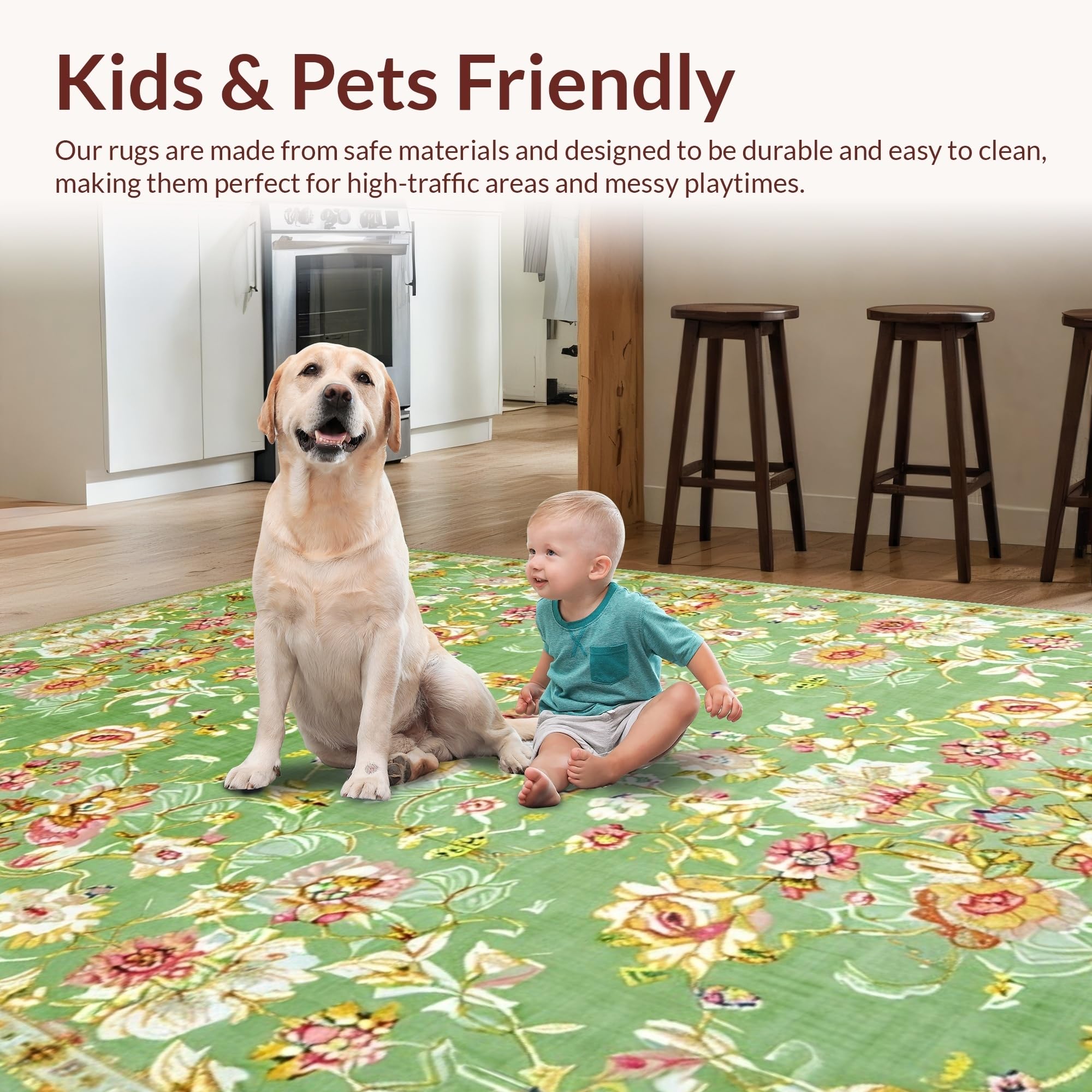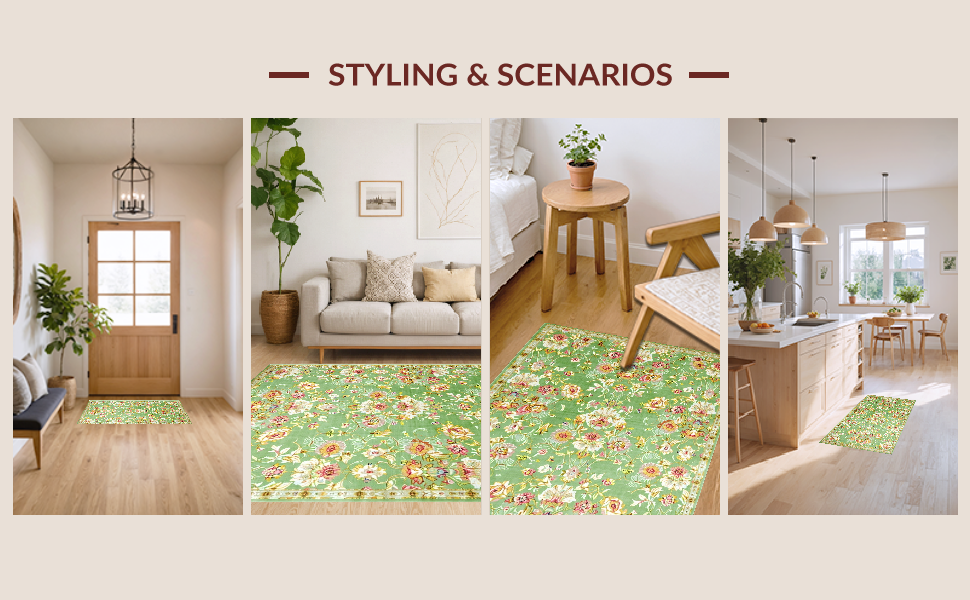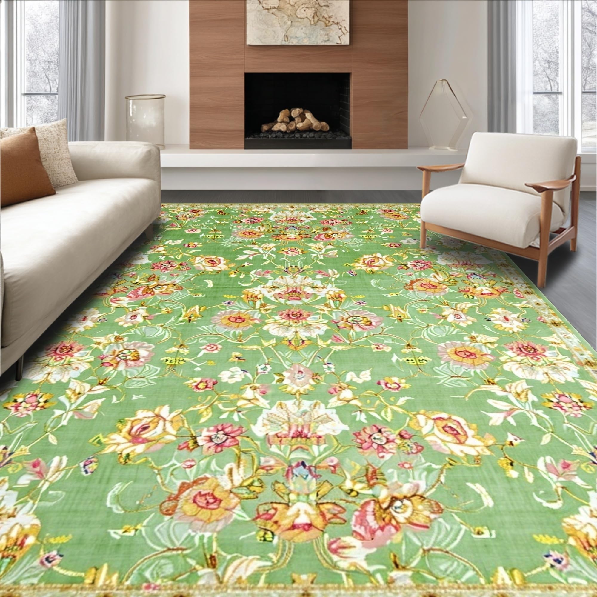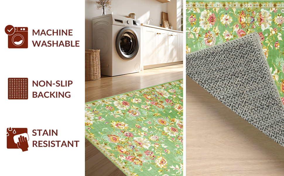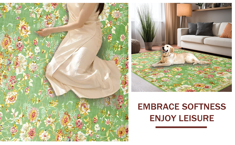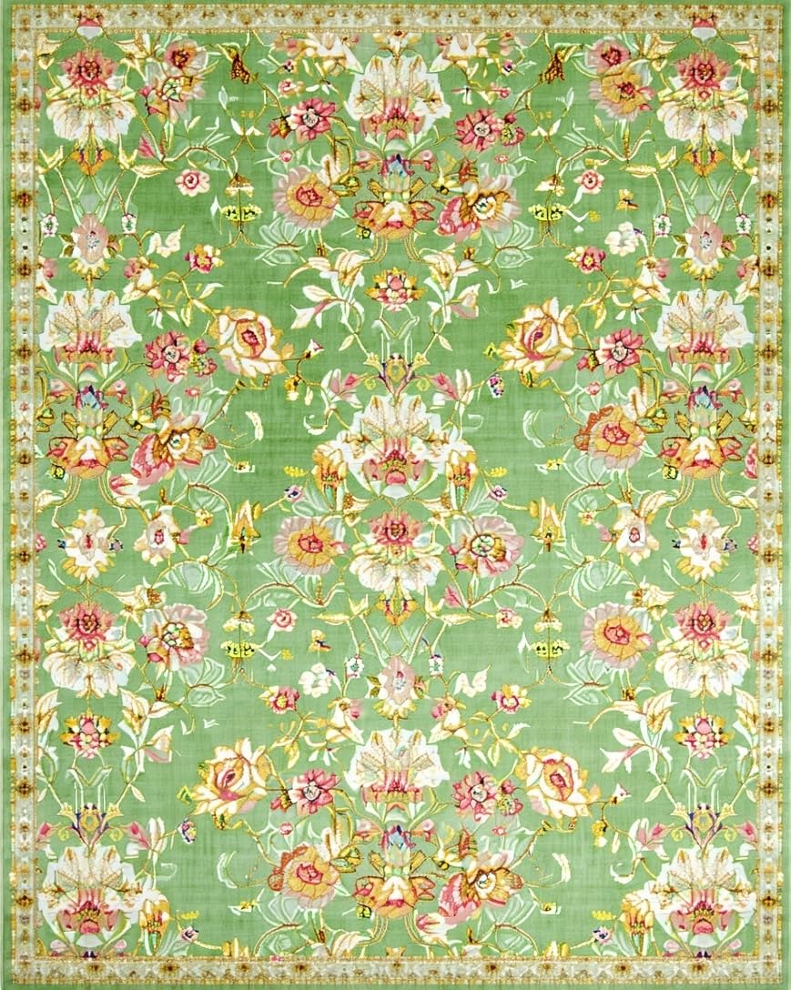 Ultra Soft Area Rug, Non Slip, Stain Resistant, Washable Area Rugs for Living Room, Bedroom, Classic Vintage Floral Elegance(Green) Overview: