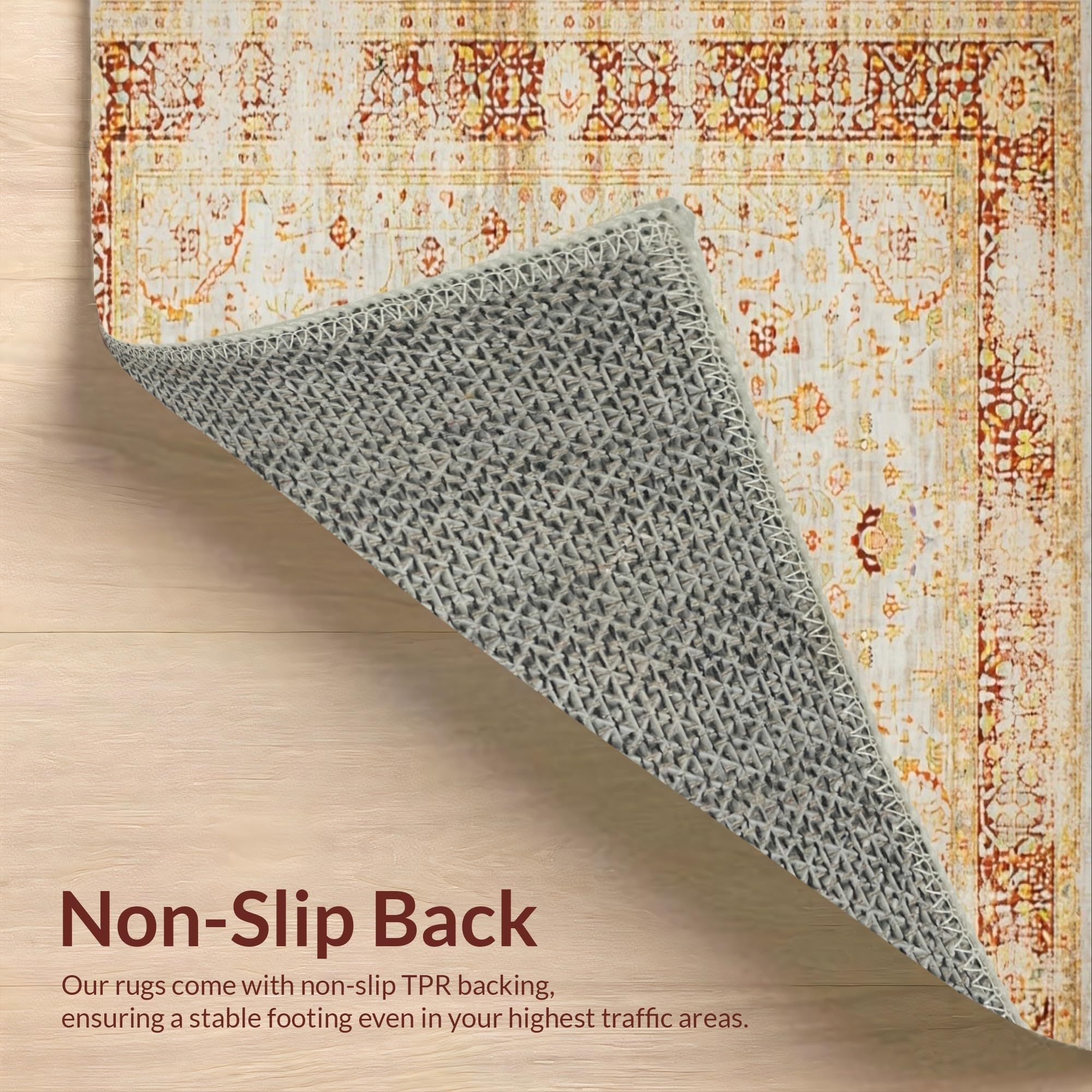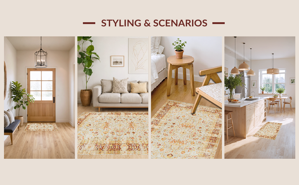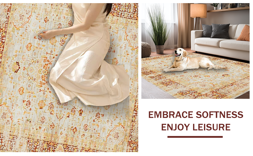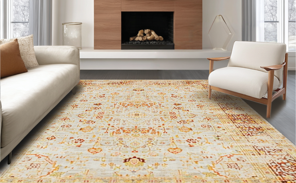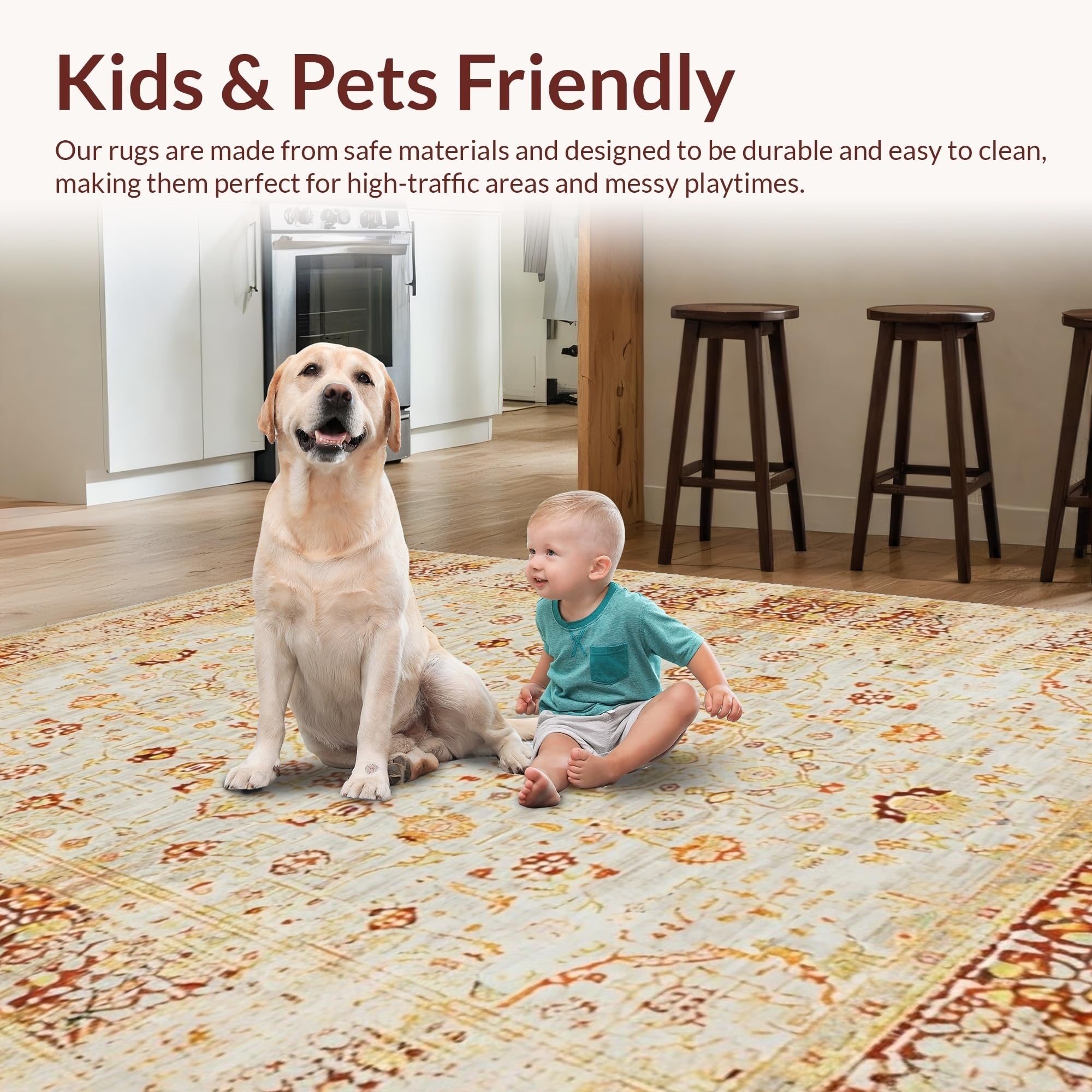 Ultra Soft Area Rug, Non Slip, Stain Resistant, Washable Area Rugs for Living Room, Bedroom, Classic Vintage Ogee Motif Appeal(Beige) Overview: