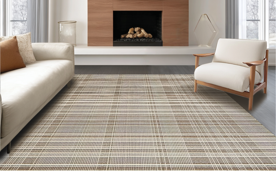 Ultra Soft Area Rug, Non Slip, Stain Resistant, Washable Area Rugs for Living Room, Bedroom, Classic Vintage Tartan Style(Beige) Overview: