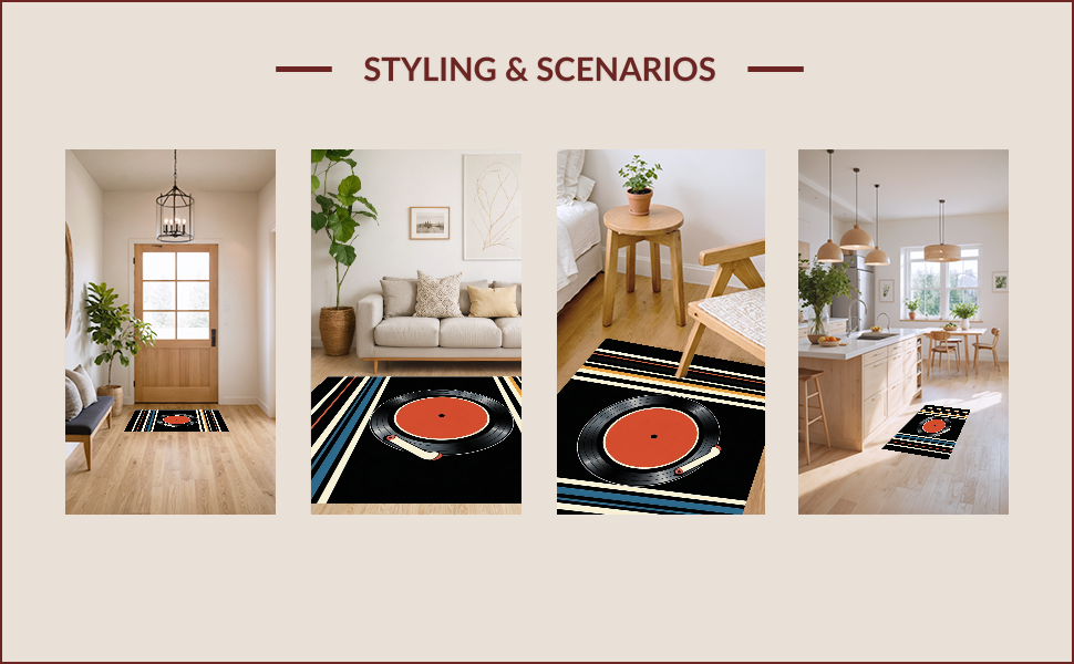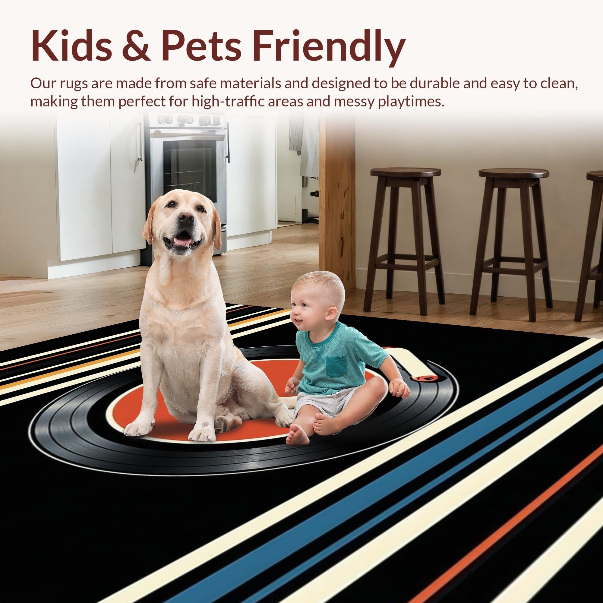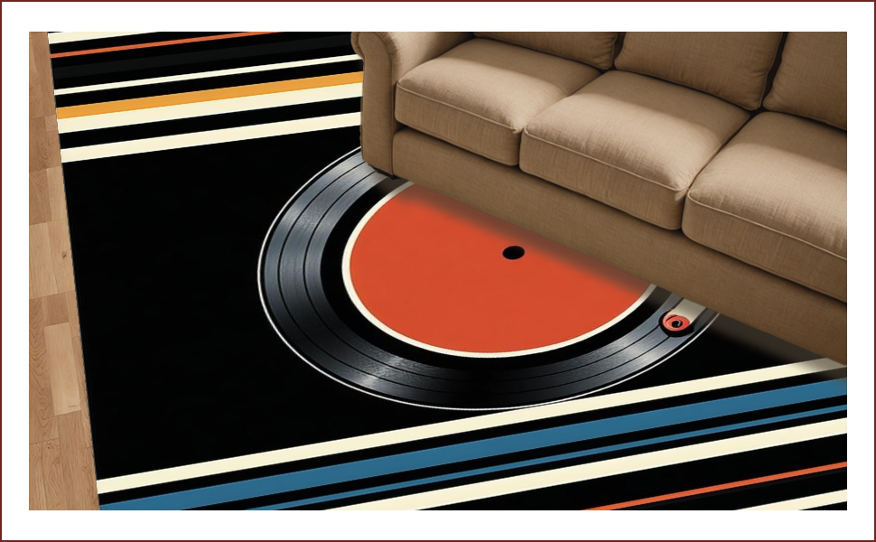 Ultra Soft Area Rug, Non Slip, Stain Resistant, Washable Area Rugs for Living Room, Bedroom, Classic Vinyl Circular Elegance(Orange) Overview: