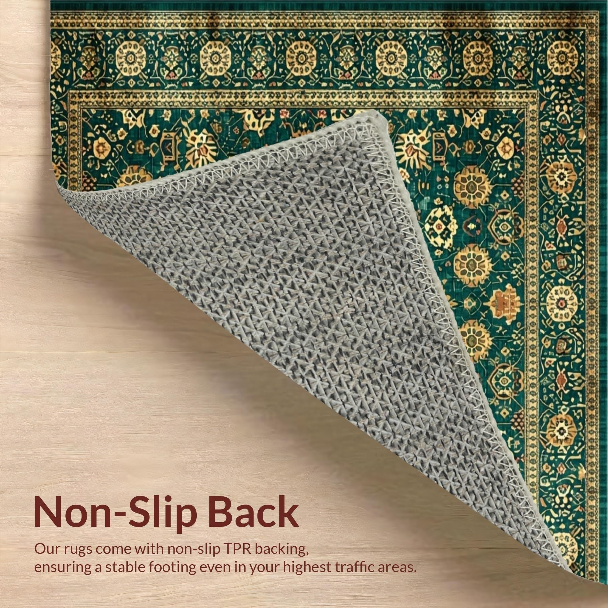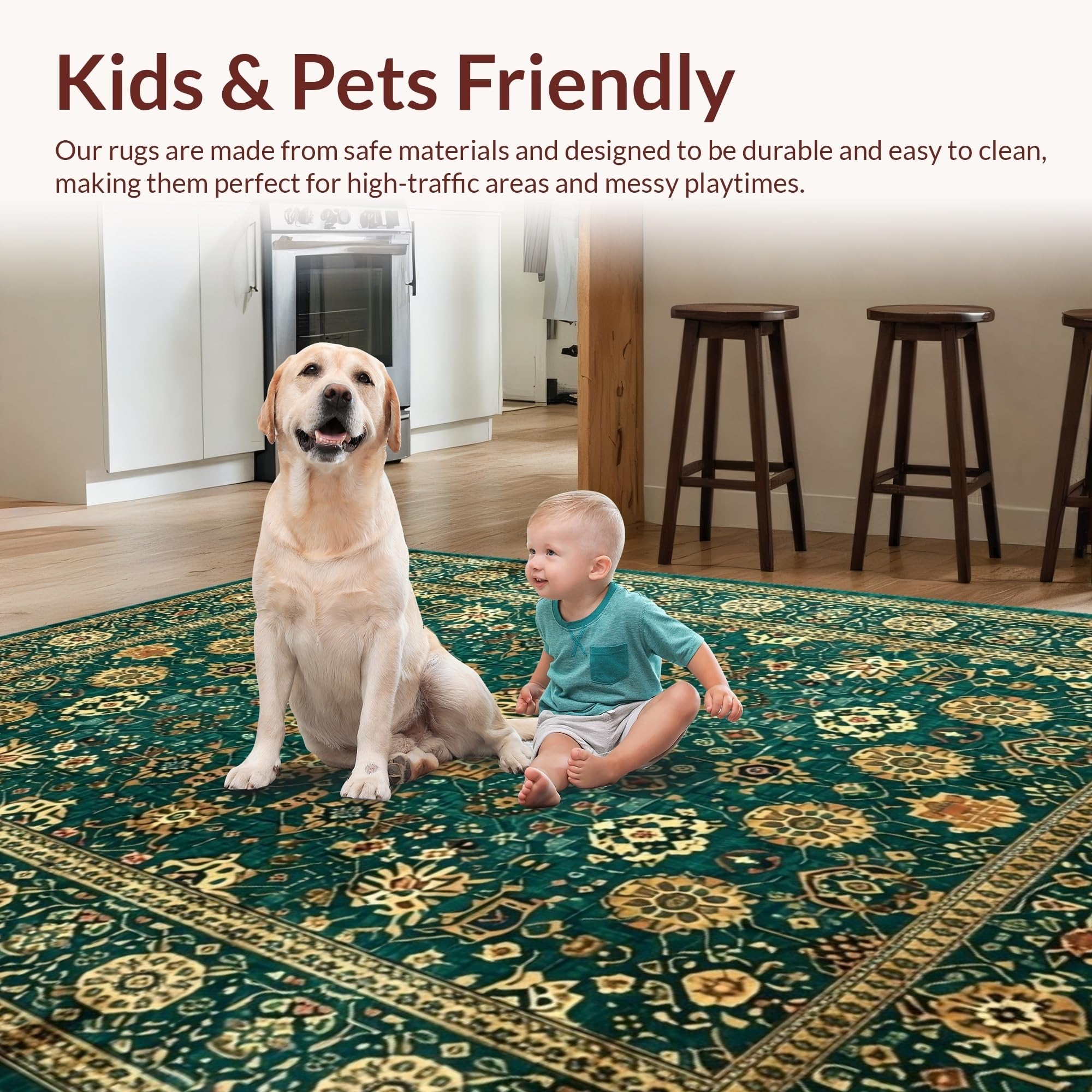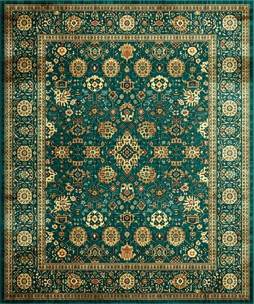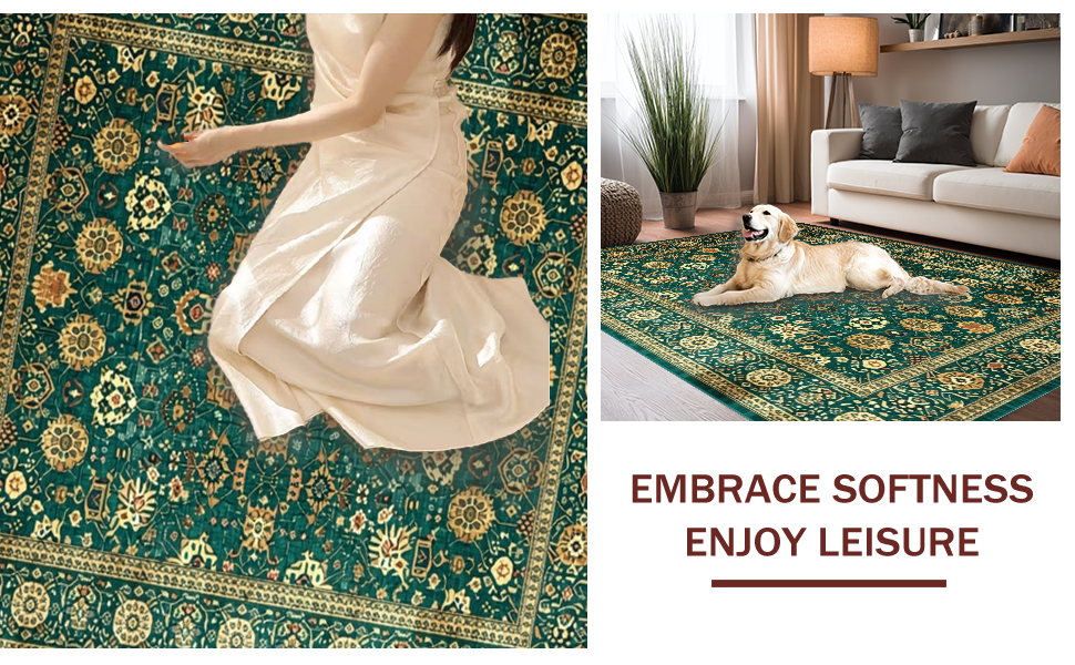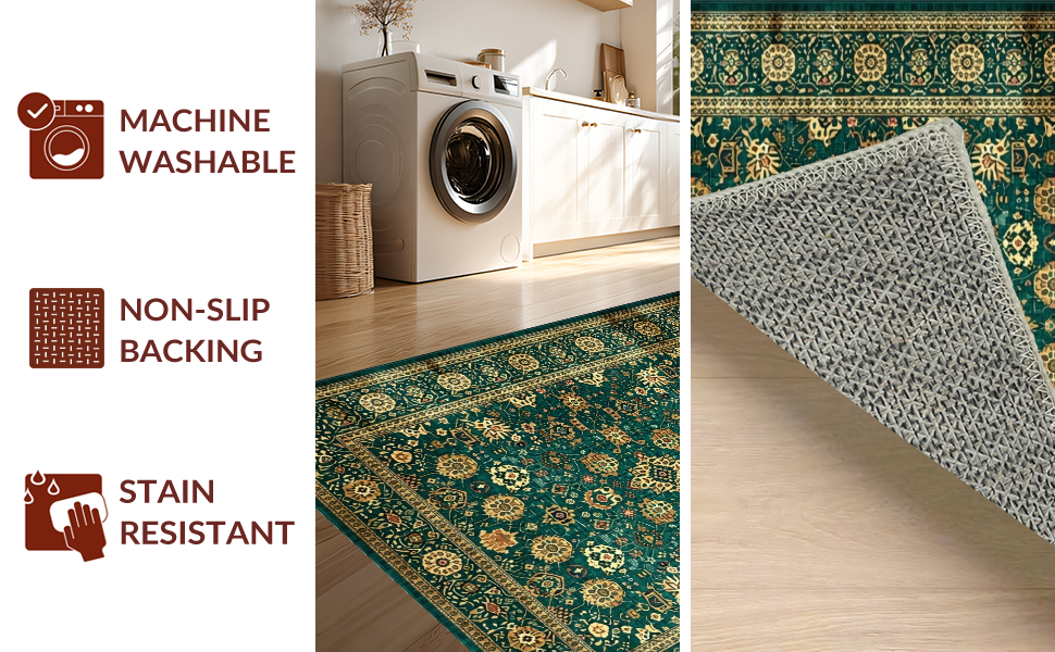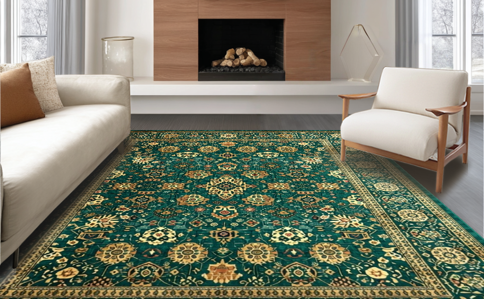 Ultra Soft Area Rug, Non Slip, Stain Resistant, Washable Area Rugs for Living Room, Bedroom, Classic Warm Toned Vintage Pattern(Green) Overview: