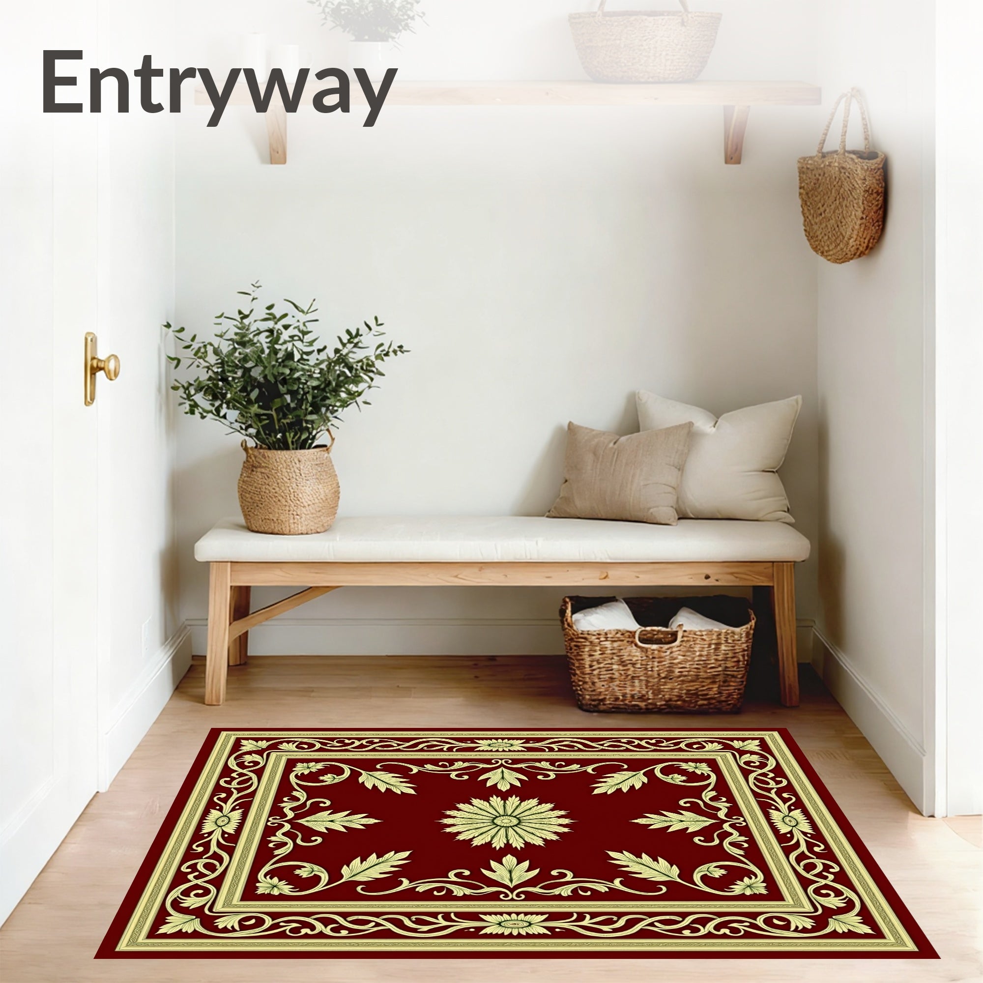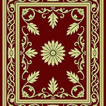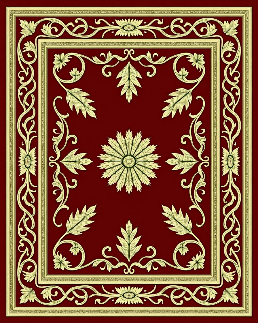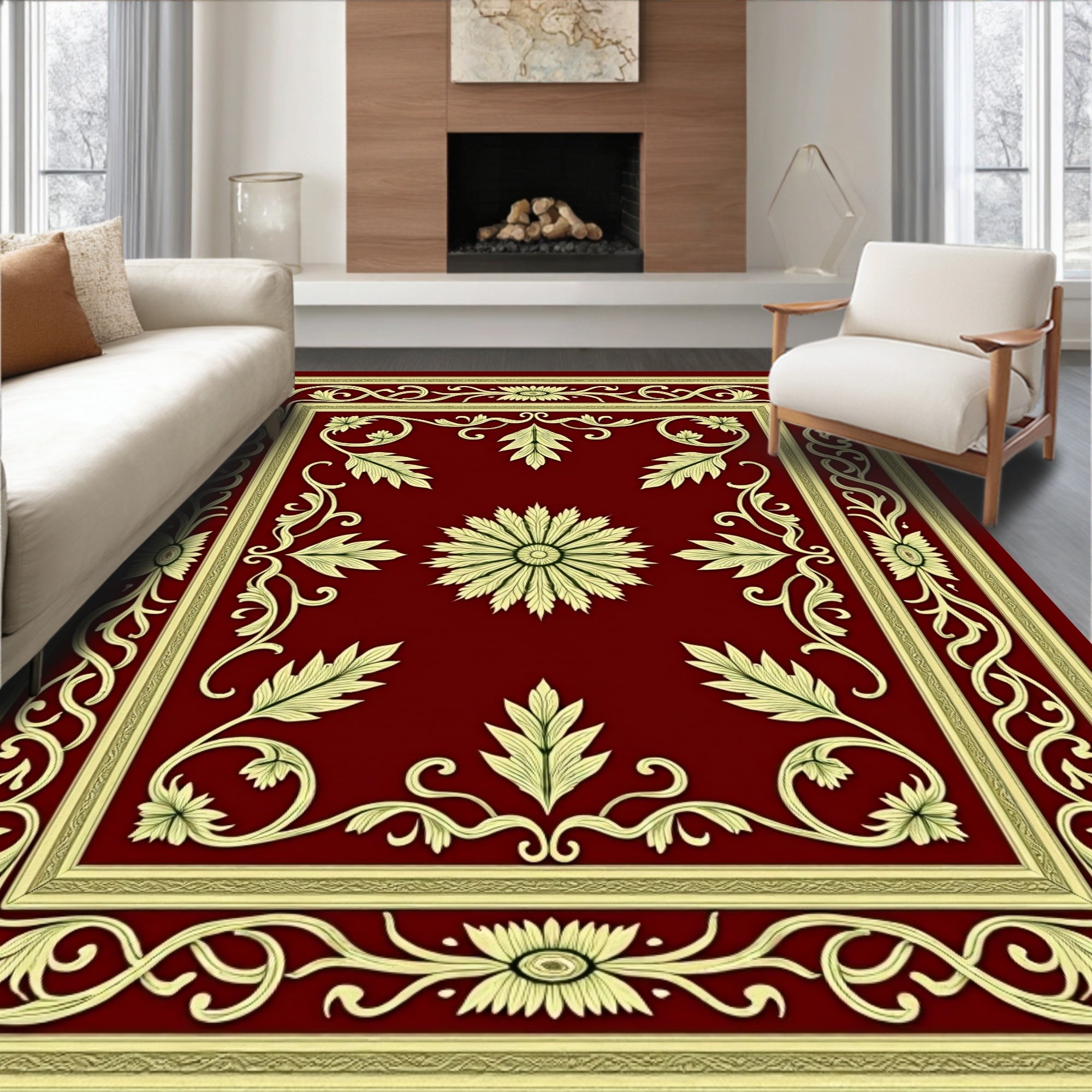 Ultra Soft Area Rug, Non Slip, Stain Resistant, Washable Area Rugs for Living Room, Bedroom, Classic Yuletide Oakleaf with Baroque Vine Embellishments(Red) Overview: