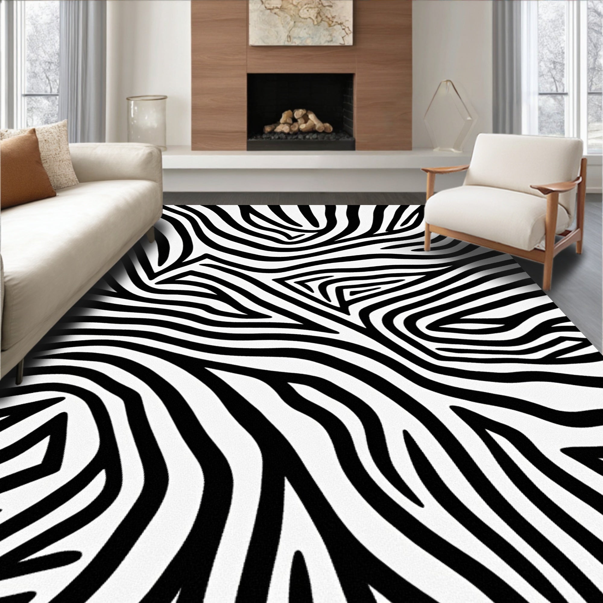 Ultra Soft Area Rug, Non Slip, Stain Resistant, Washable Area Rugs for Living Room, Bedroom, Classic Zebra Inspired Monochrome Handwoven Farmhouse Entrance(Black) Overview: