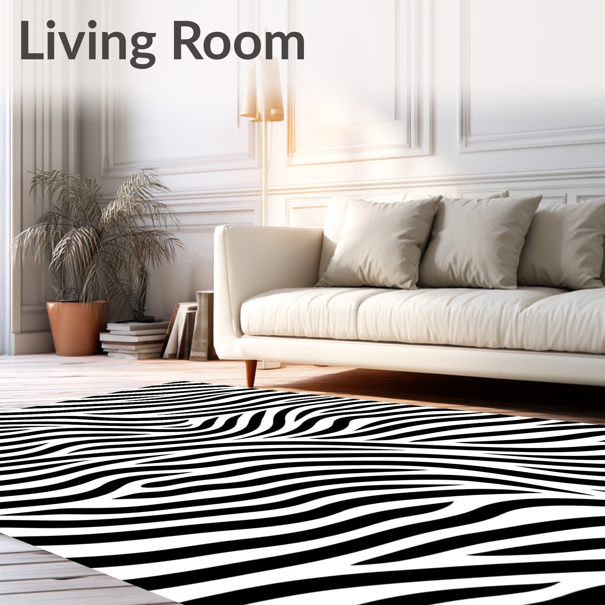 Ultra Soft Area Rug, Non Slip, Stain Resistant, Washable Area Rugs for Living Room, Bedroom, Classic Zebra Inspired Striped Handwoven Entry Collection(Black) Overview:
