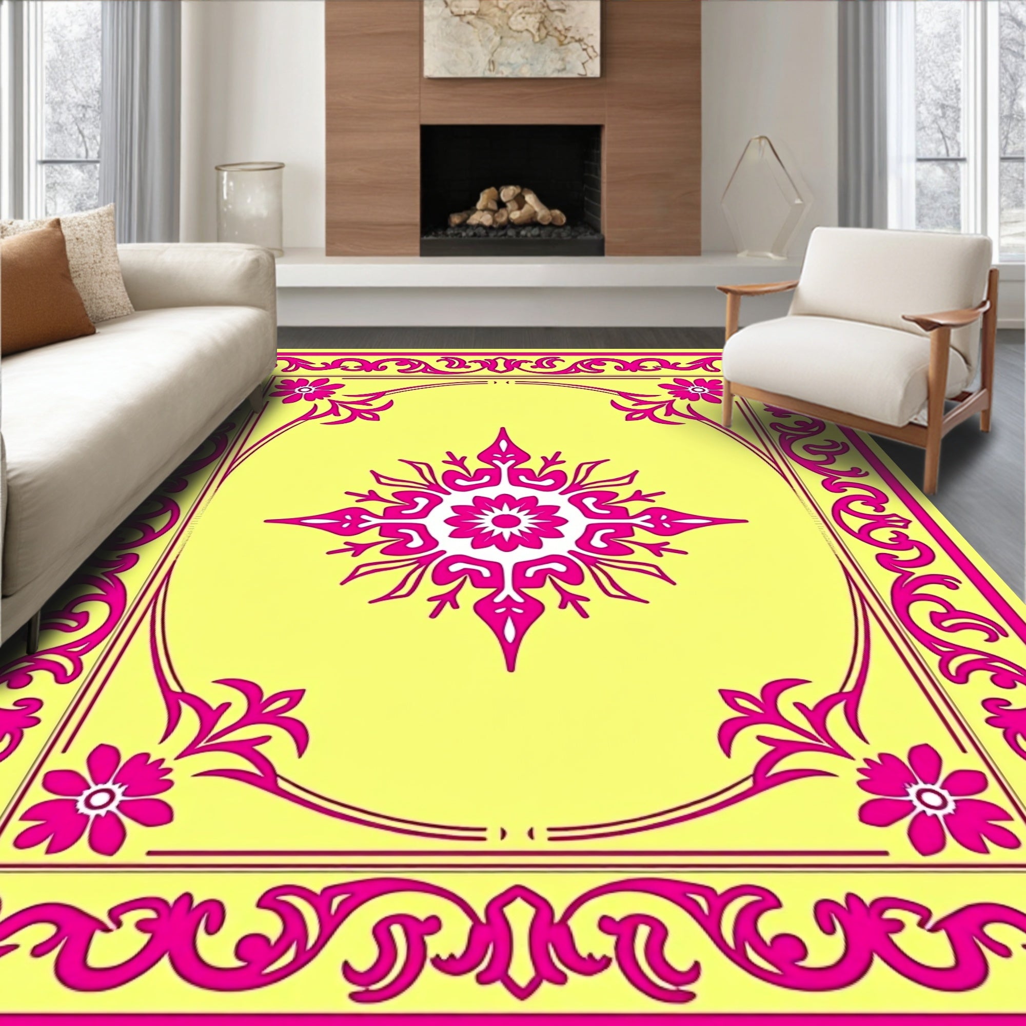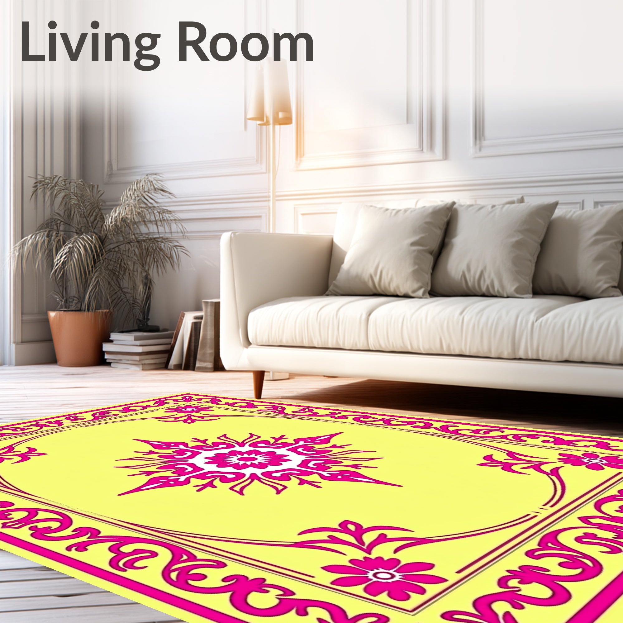 Ultra Soft Area Rug, Non Slip, Stain Resistant, Washable Area Rugs for Living Room, Bedroom, Classical Arabesque Damask Elegant Scroll Charm(Yellow) Overview: