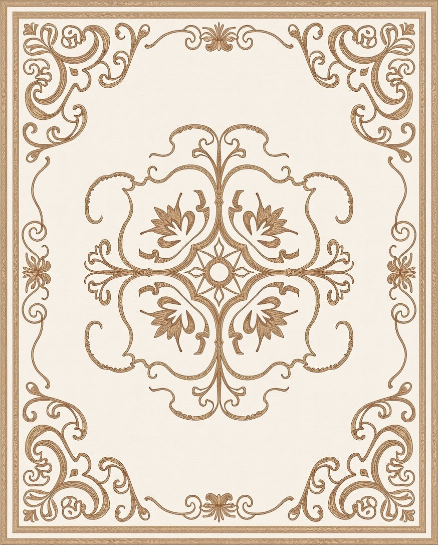 Classical Arabesque Damask Elegant Scroll Motif Artisan Design(Beige)