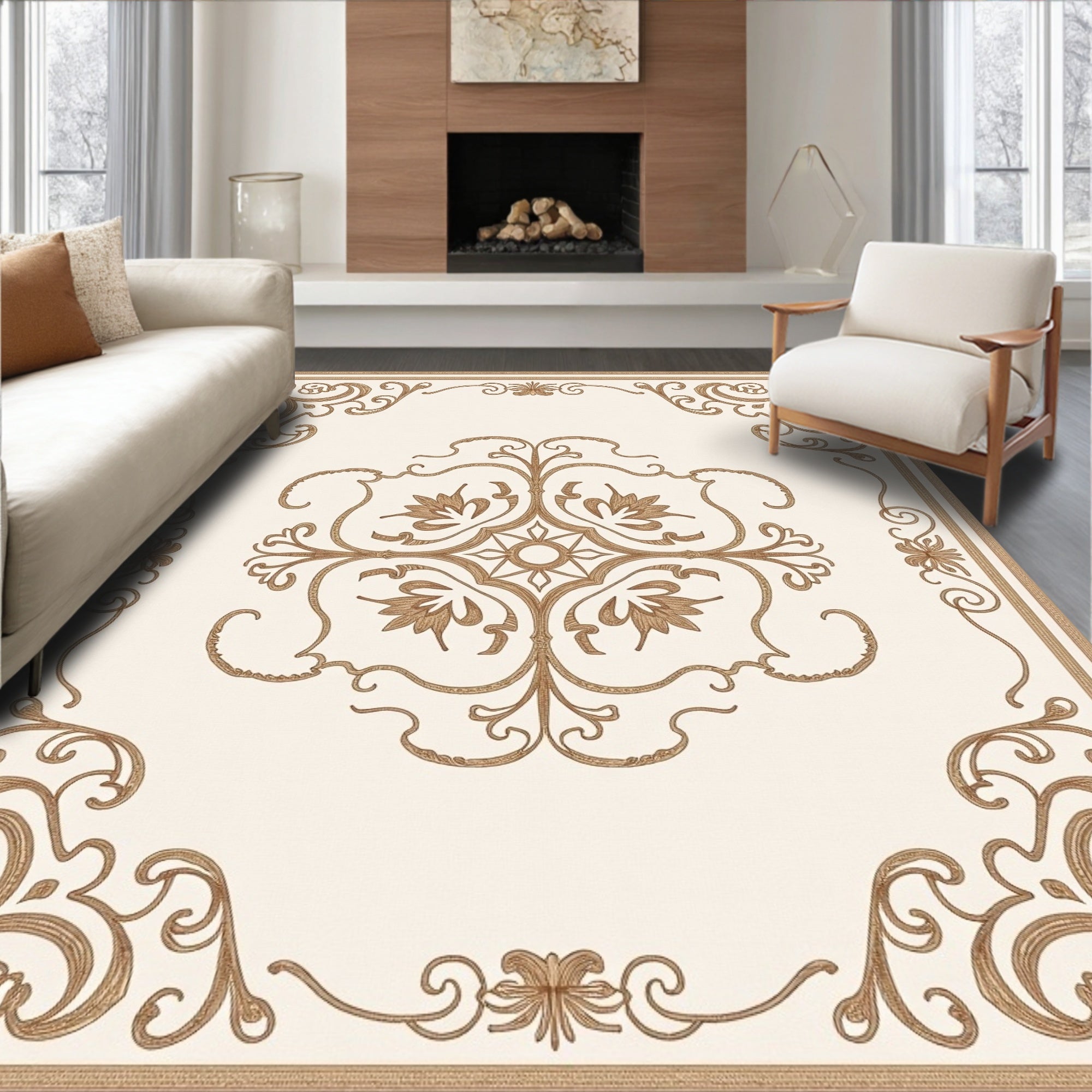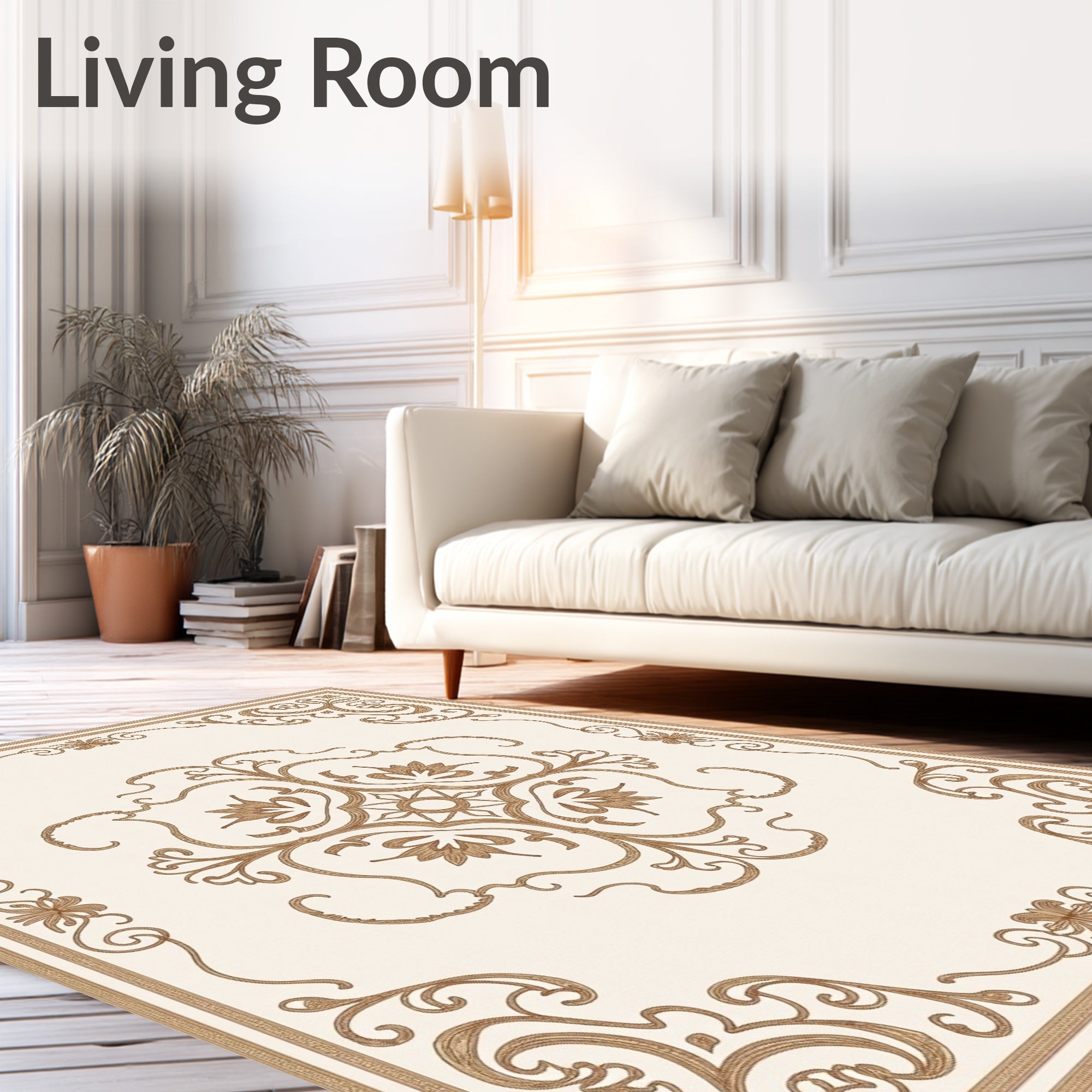 Ultra Soft Area Rug, Non Slip, Stain Resistant, Washable Area Rugs for Living Room, Bedroom, Classical Arabesque Damask Elegant Scroll Motif Artisan Design(Beige) Overview: