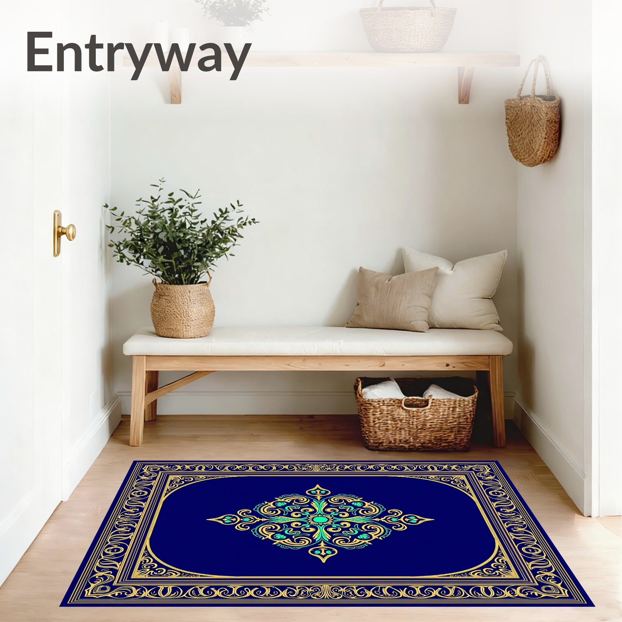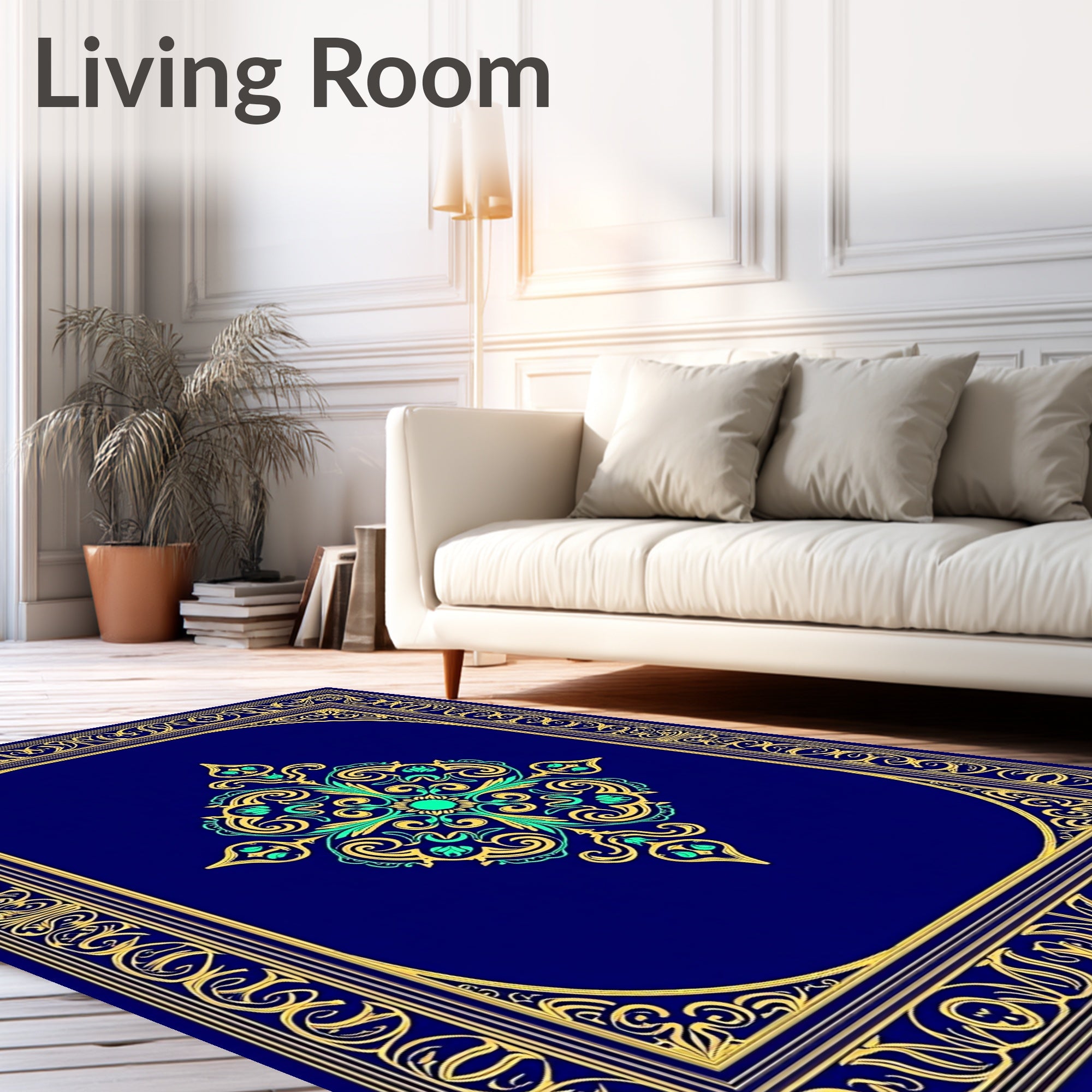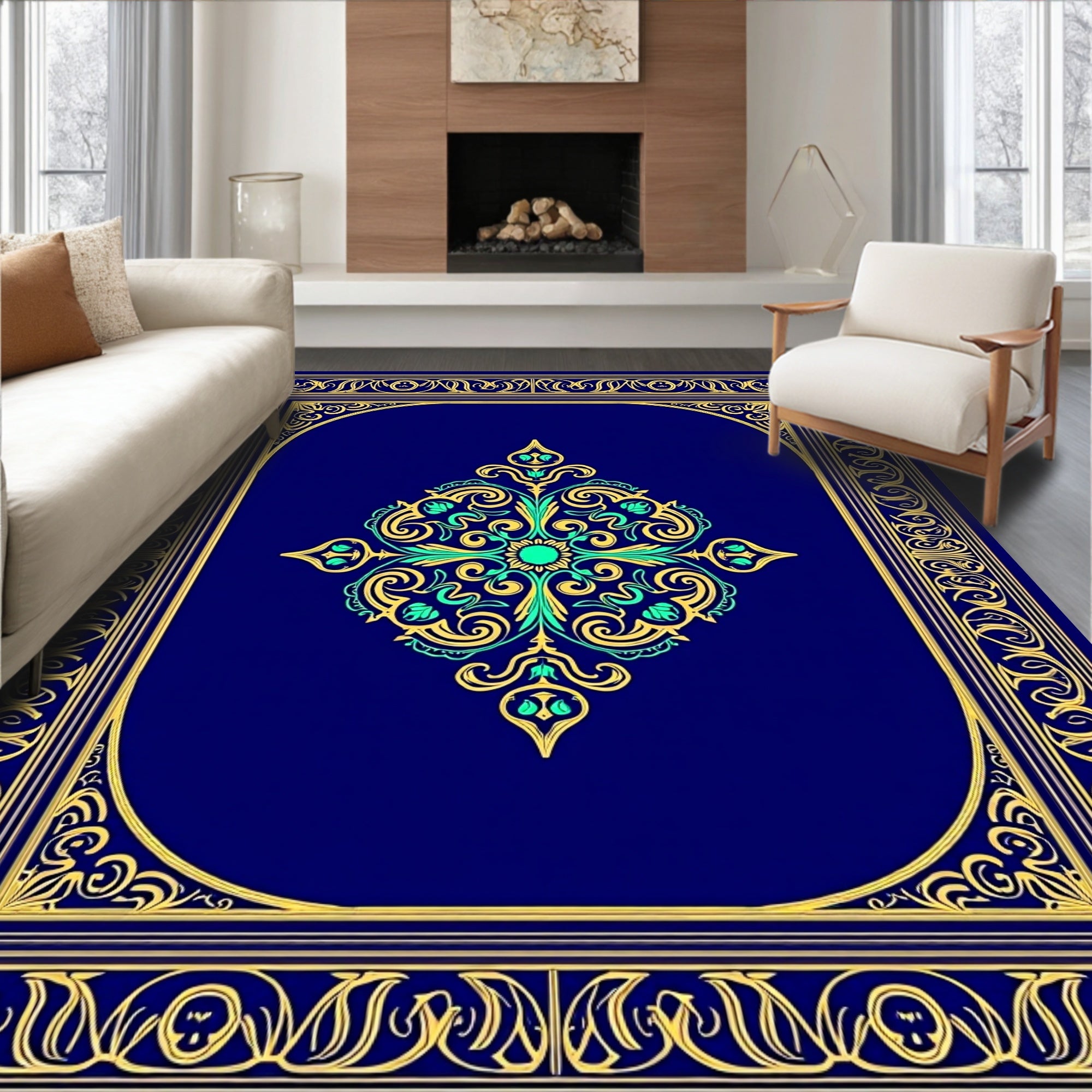 Ultra Soft Area Rug, Non Slip, Stain Resistant, Washable Area Rugs for Living Room, Bedroom, Classical Damask Nouveau Swirl Palatial Elegant Treasure(Blue) Overview: