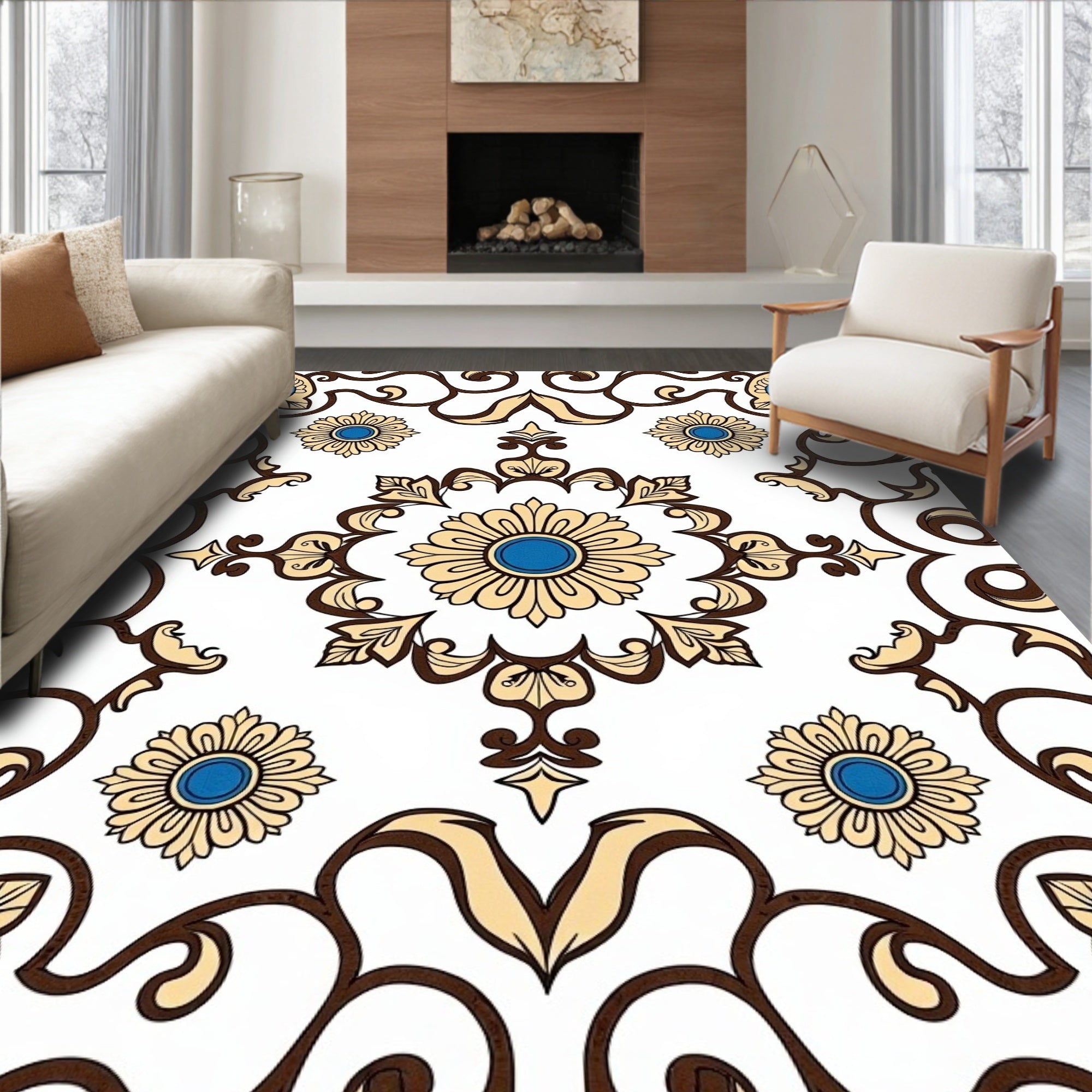Ultra Soft Area Rug, Non Slip, Stain Resistant, Washable Area Rugs for Living Room, Bedroom, Classical Ornate Flourish Elegant Swirl Timeless(Brown) Overview: