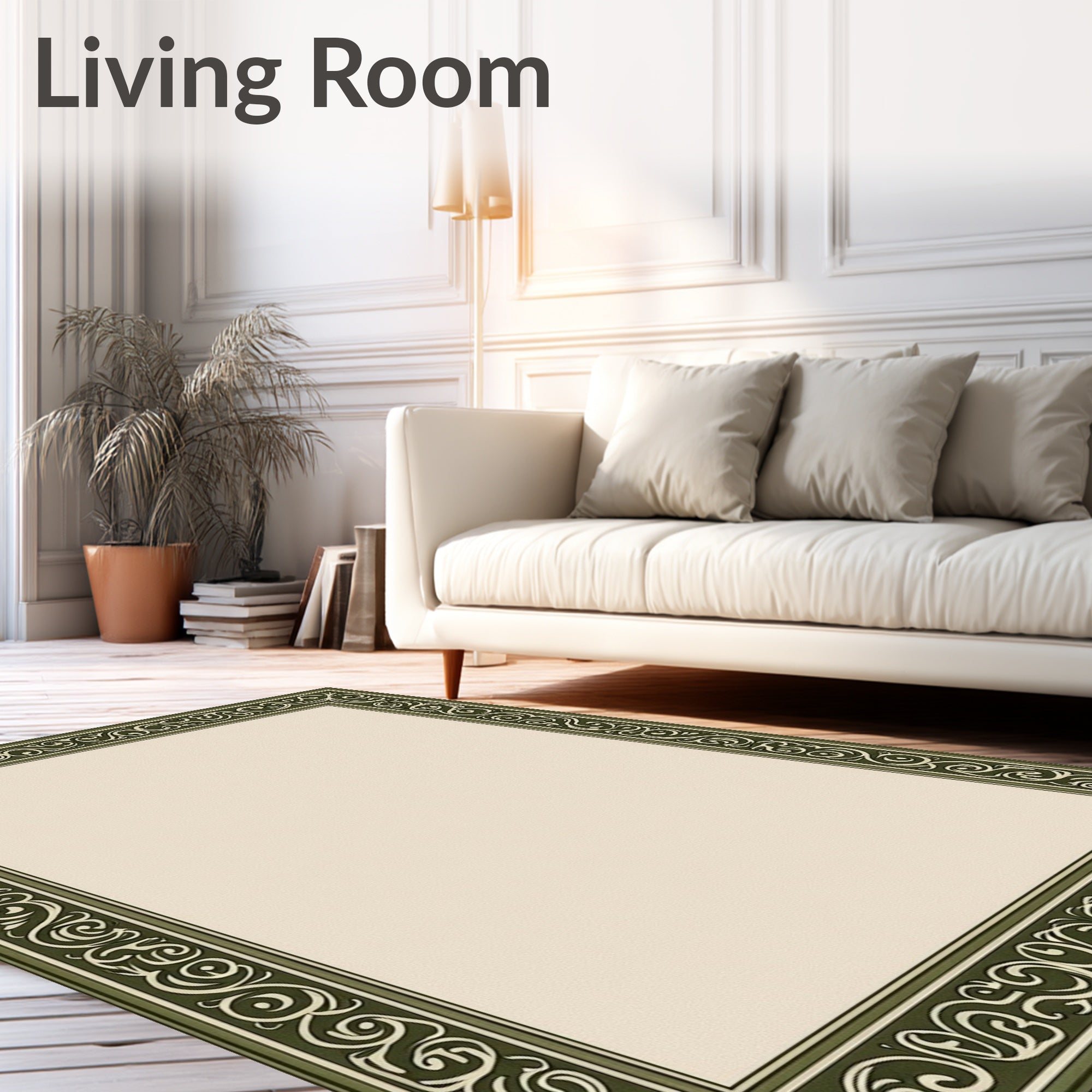 Ultra Soft Area Rug, Non Slip, Stain Resistant, Washable Area Rugs for Living Room, Bedroom, Classical Scrollwork Timeworn Elegant Artisan(Beige) Overview: