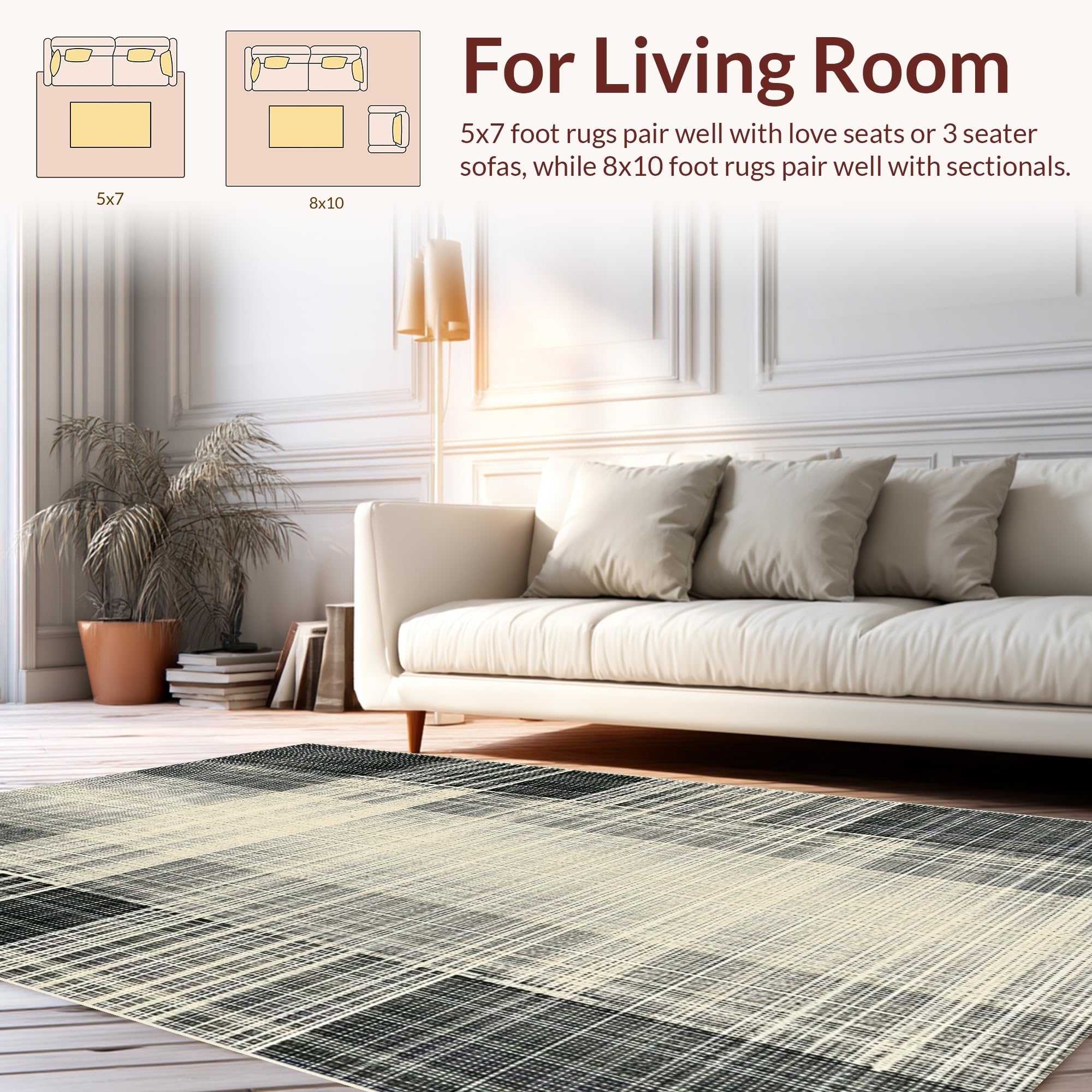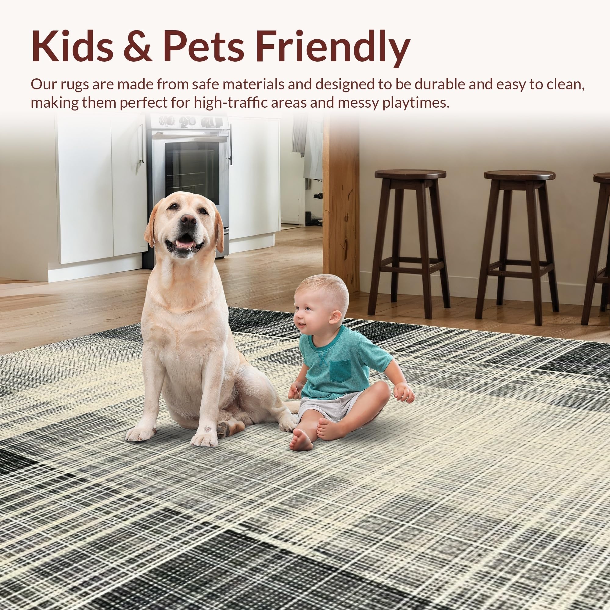 Ultra Soft Area Rug, Non Slip, Stain Resistant, Washable Area Rugs for Living Room, Bedroom, Classy Urban Patterned Composition(Beige) Overview: