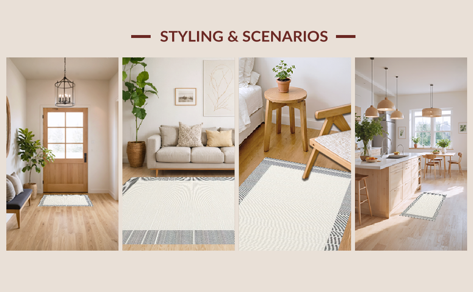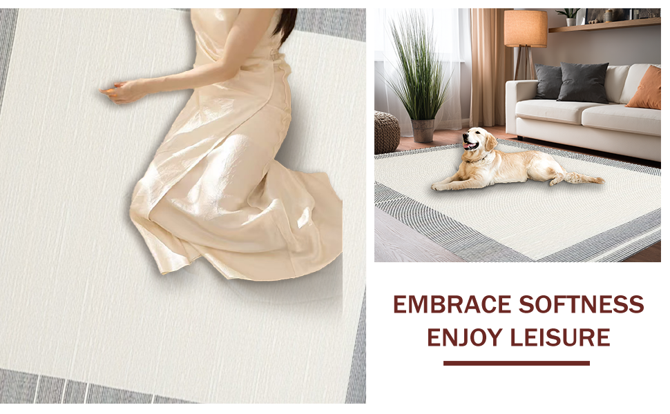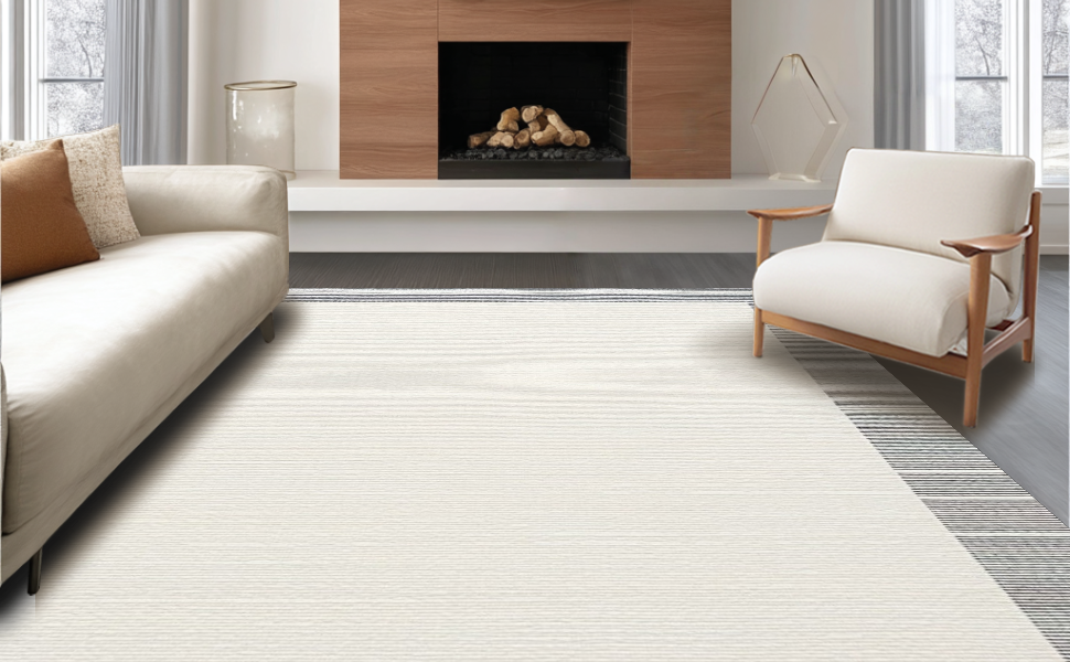 Ultra Soft Area Rug, Non Slip, Stain Resistant, Washable Area Rugs for Living Room, Bedroom, Clean Cut Striped Visual Harmony(Ivory) Overview: