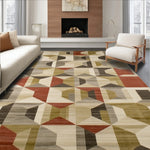 Clean Lines Modern Geometric Area In Deep Beige And Brown(Beige)