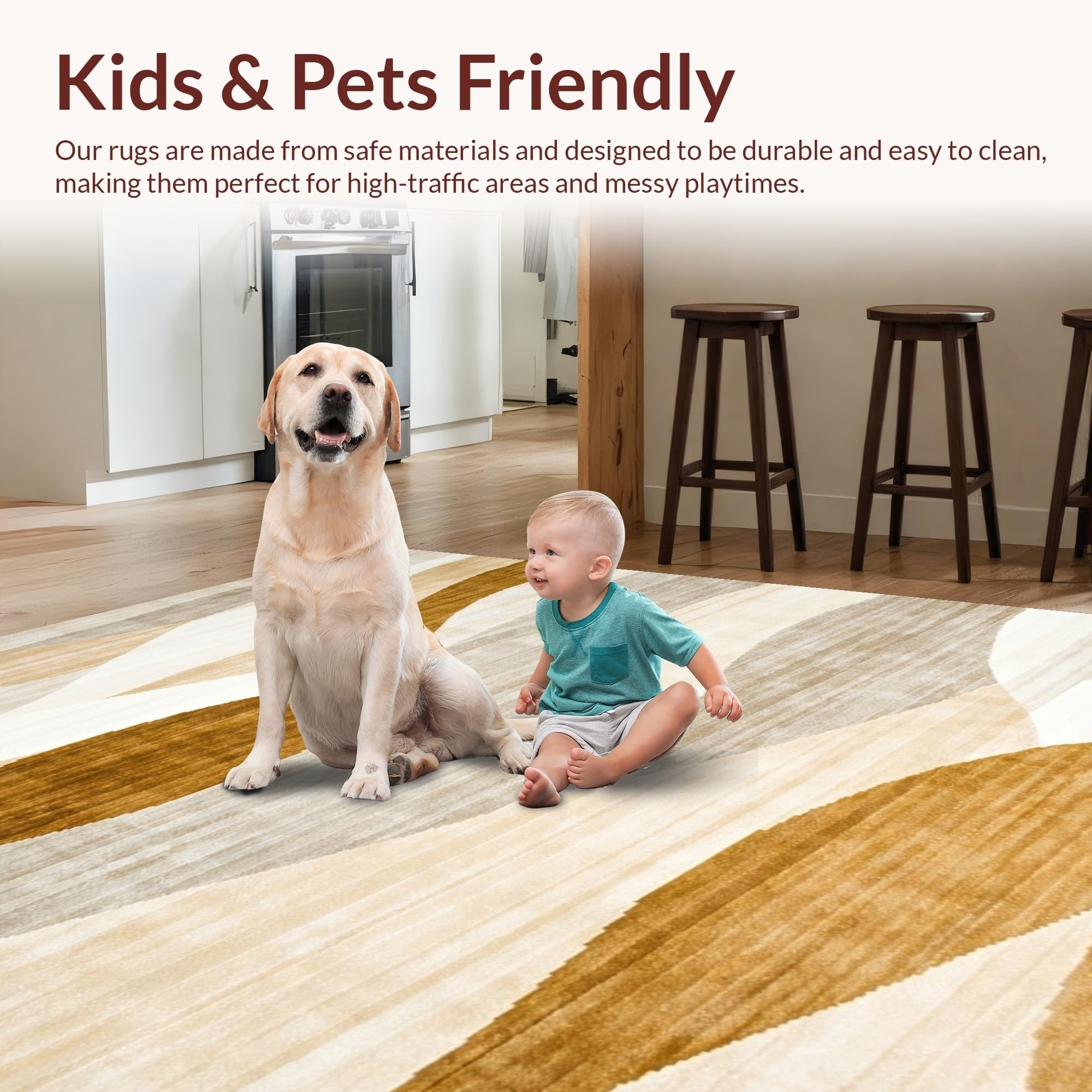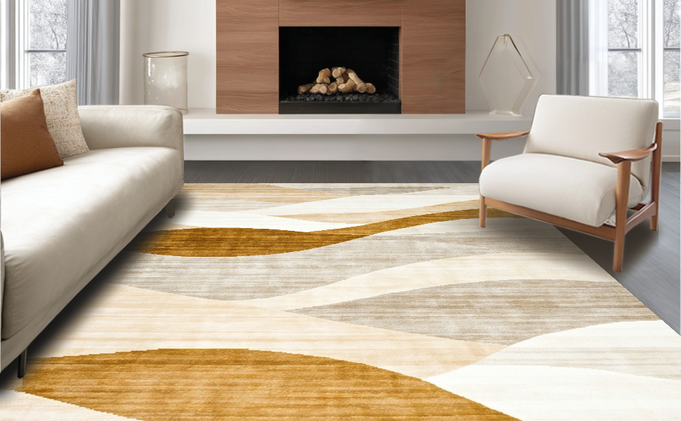 Ultra Soft Area Rug, Non Slip, Stain Resistant, Washable Area Rugs for Living Room, Bedroom, Clean Modern Tiled Arrangement(Beige) Overview:
