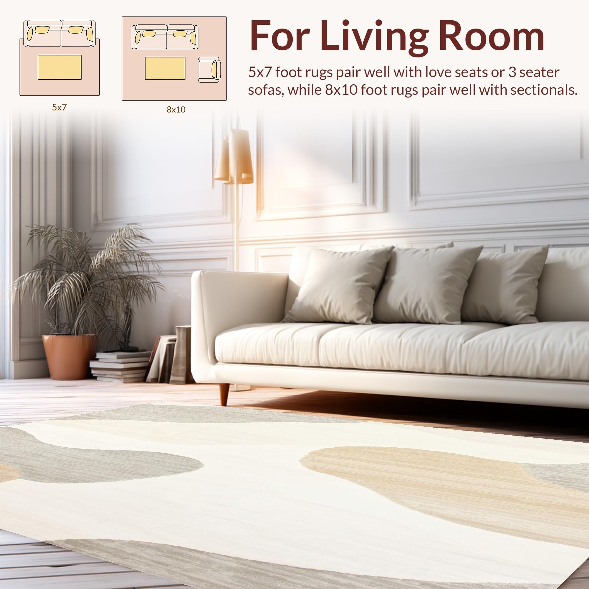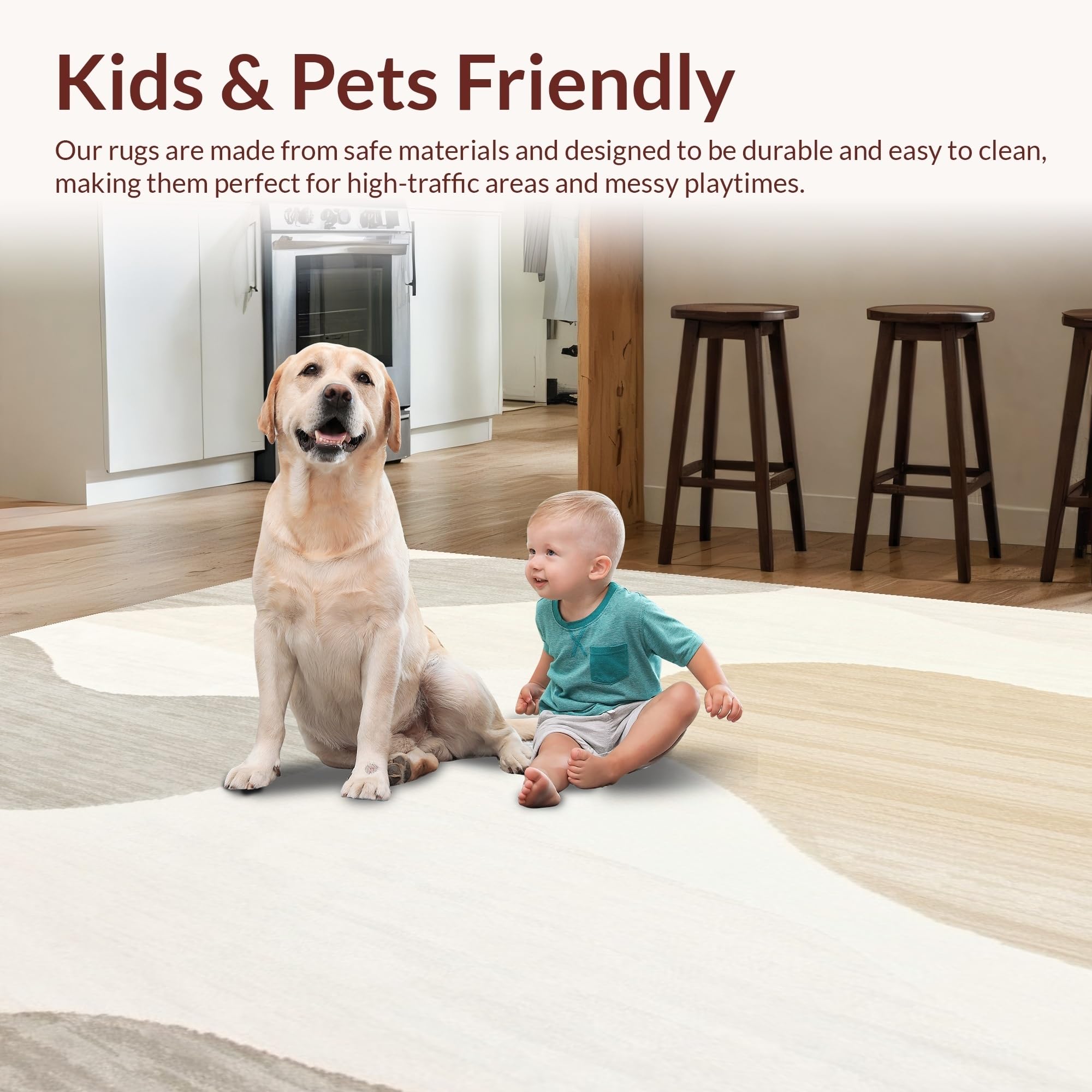 Ultra Soft Area Rug, Non Slip, Stain Resistant, Washable Area Rugs for Living Room, Bedroom, Cloud Dream Area Beige Serenity Abstract Wave Design(Beige) Overview: