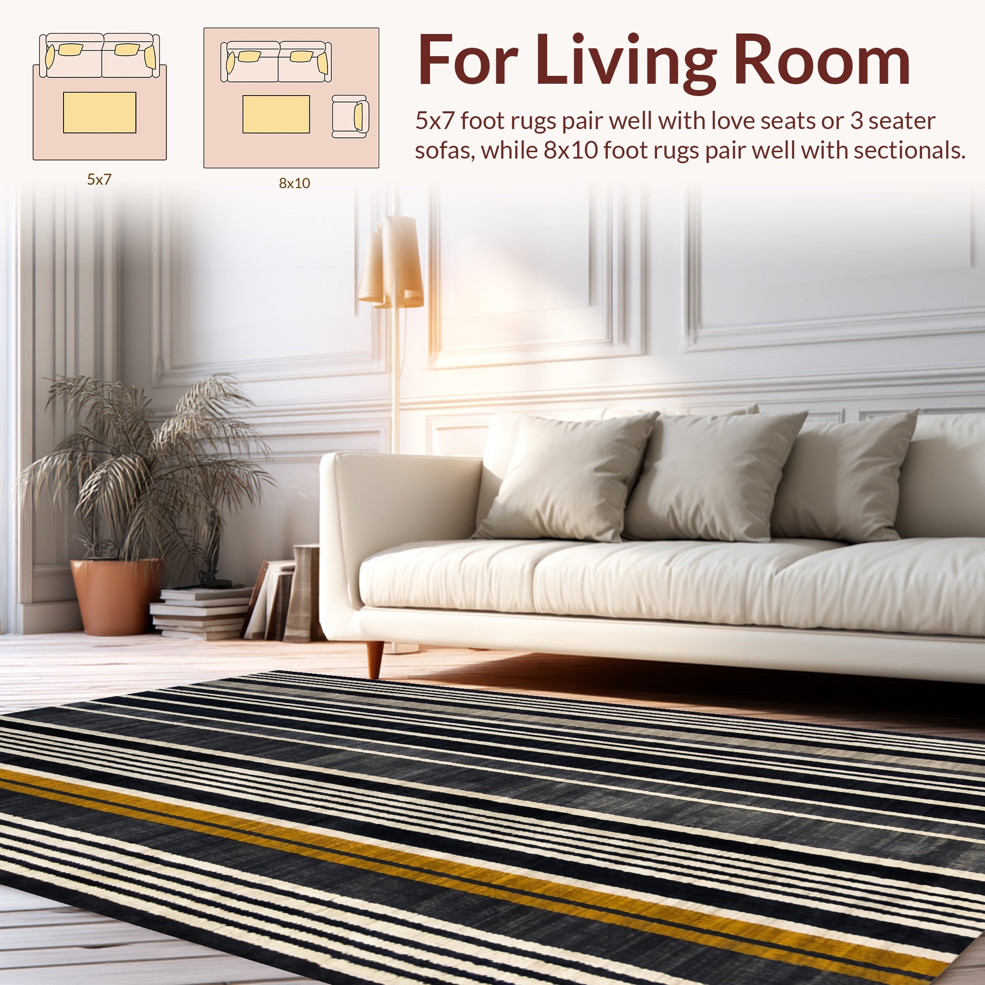 Ultra Soft Area Rug, Non Slip, Stain Resistant, Washable Area Rugs for Living Room, Bedroom, Coal & Bone Stripe Woven Rug Reversible Floor Decor(Gray) Overview: