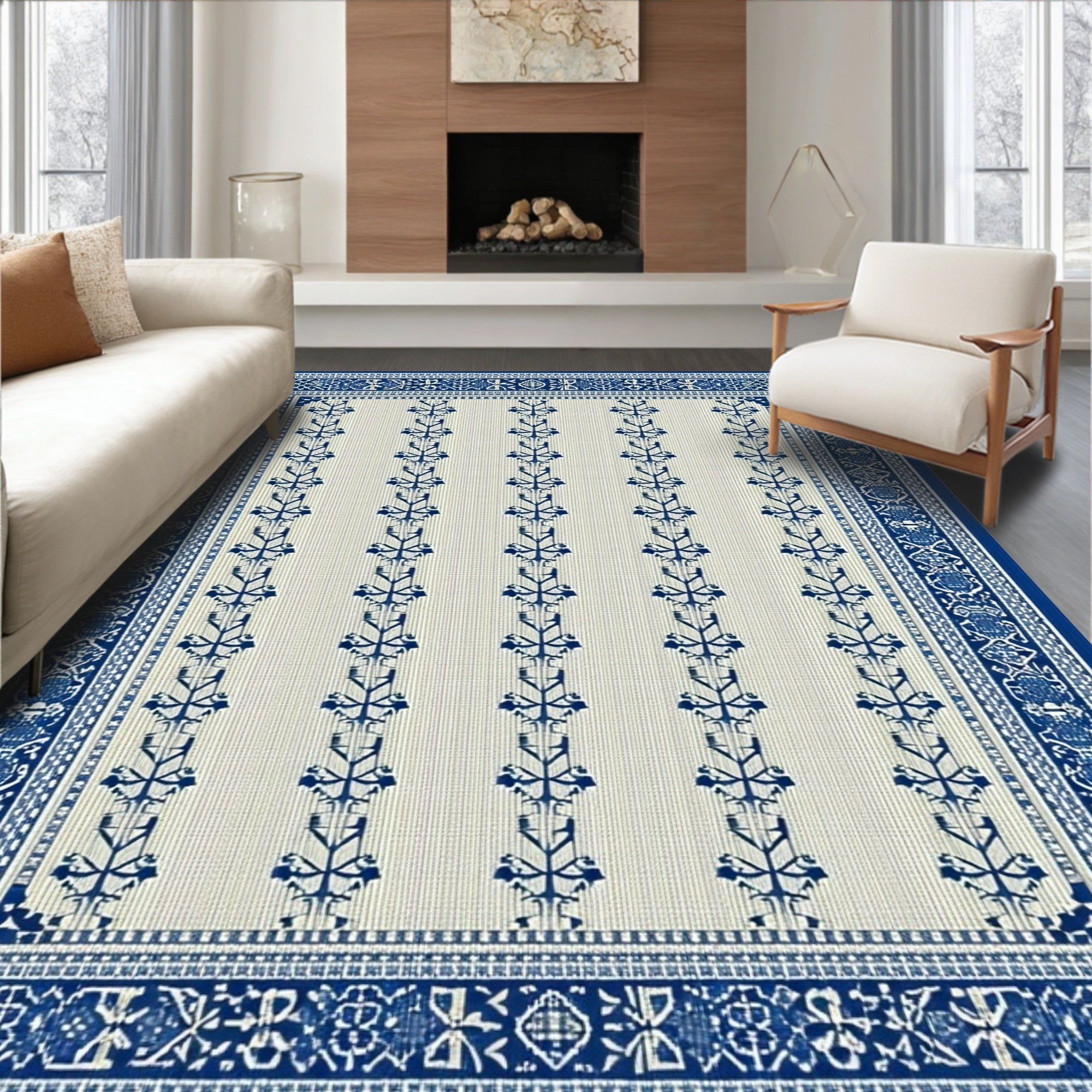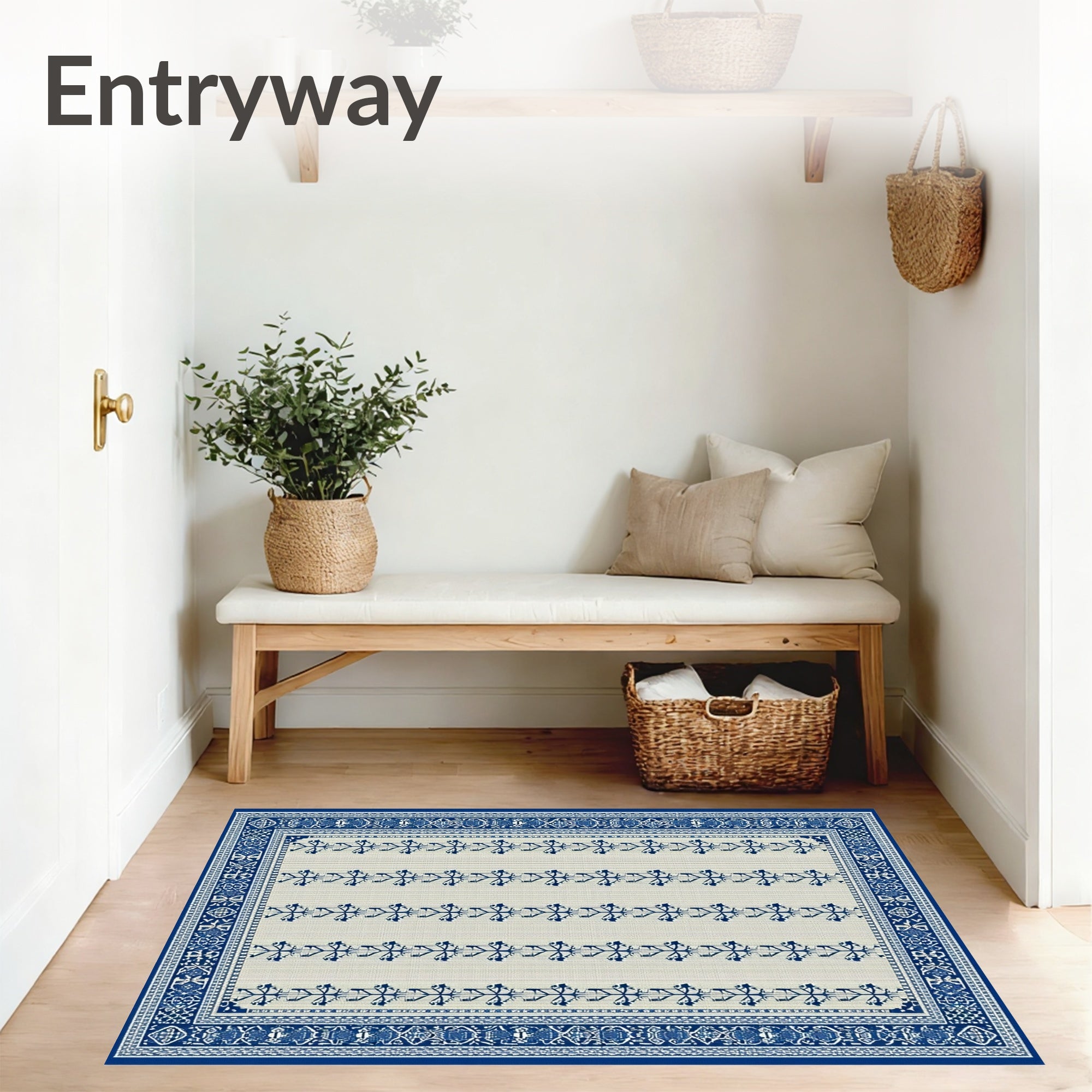 Ultra Soft Area Rug, Non Slip, Stain Resistant, Washable Area Rugs for Living Room, Bedroom, Coastal Anchor Accent in Blue and Beige Color Palette(Blue) Overview:
