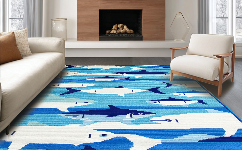Ultra Soft Area Rug, Non Slip, Stain Resistant, Washable Area Rugs for Living Room, Bedroom, Coastal Blue Geometric Elegance(Blue) Overview:
