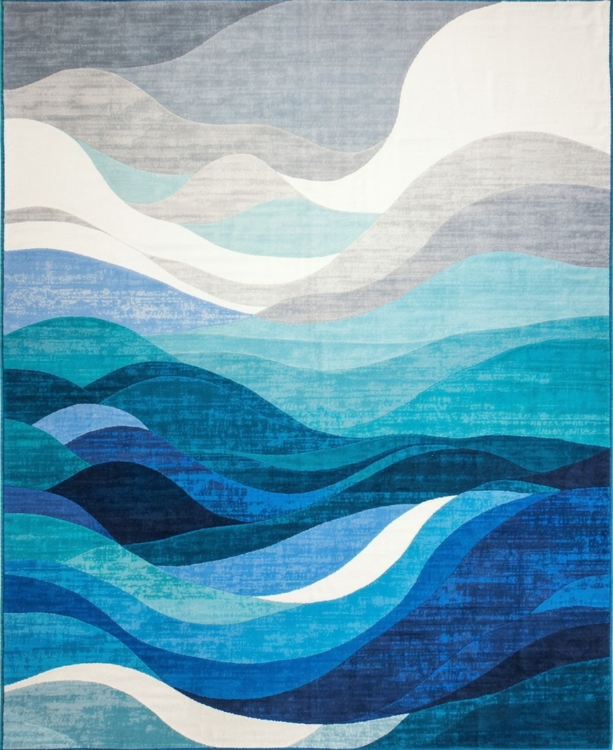 Coastal Blue Wave Abstract Area Rug Modern Artistic Funky Ocean Current Carpet(Blue)