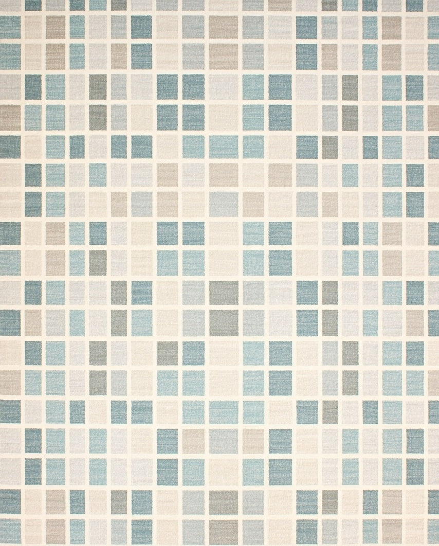 Coastal Breeze Area Serene Beige and Blue Geometric Design(Beige)