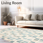 Ultra Soft Area Rug, Non Slip, Stain Resistant, Washable Area Rugs for Living Room, Bedroom, Coastal Breeze Area Serene Beige and Blue Geometric Design(Beige) Overview: