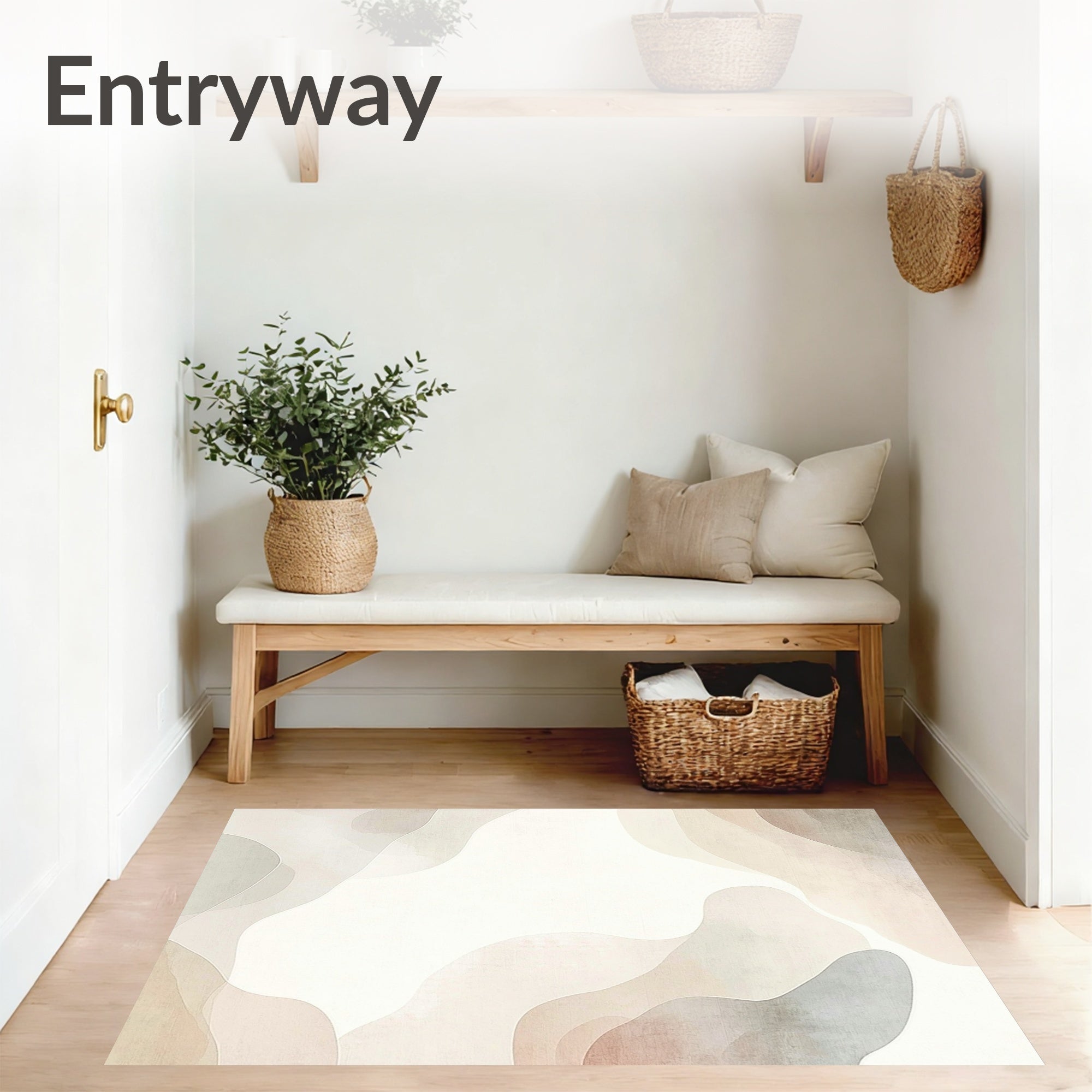 Ultra Soft Area Rug, Non Slip, Stain Resistant, Washable Area Rugs for Living Room, Bedroom, Coastal Breeze Oval Design in Elegant Light Beige(Beige) Overview: