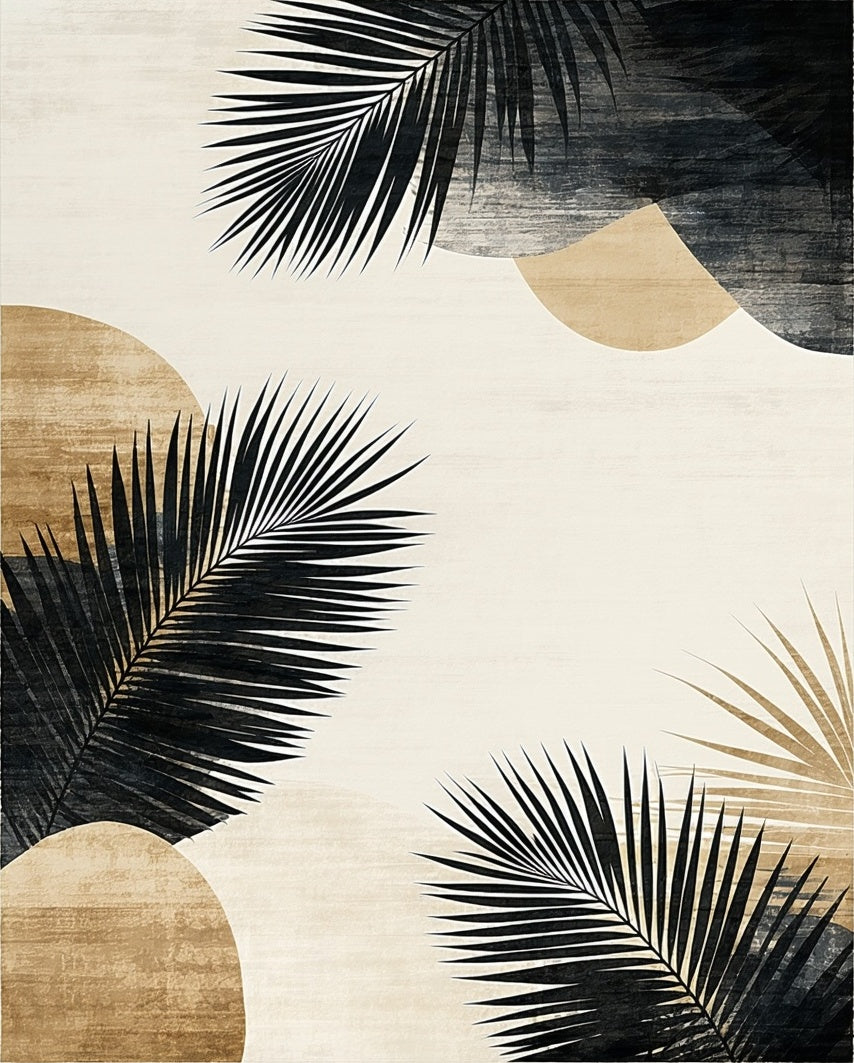 Coastal Breeze with Abstract Leaf Design Area(Beige)