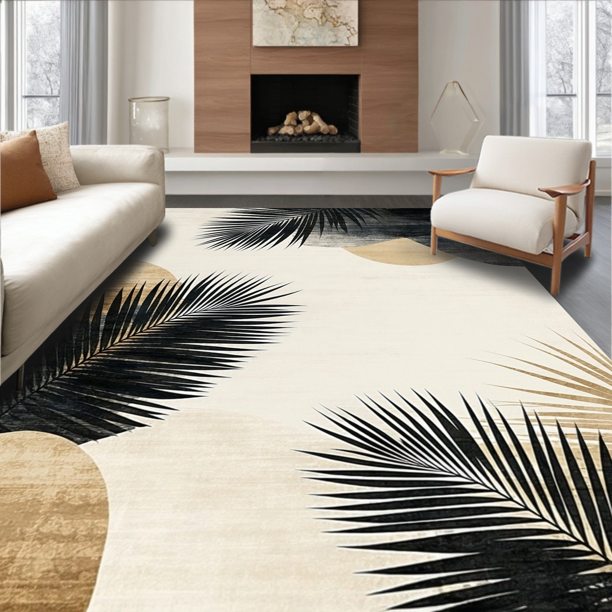 Ultra Soft Area Rug, Non Slip, Stain Resistant, Washable Area Rugs for Living Room, Bedroom, Coastal Breeze Rug with Abstract Leaf Design Area Carpet(Beige) Overview: