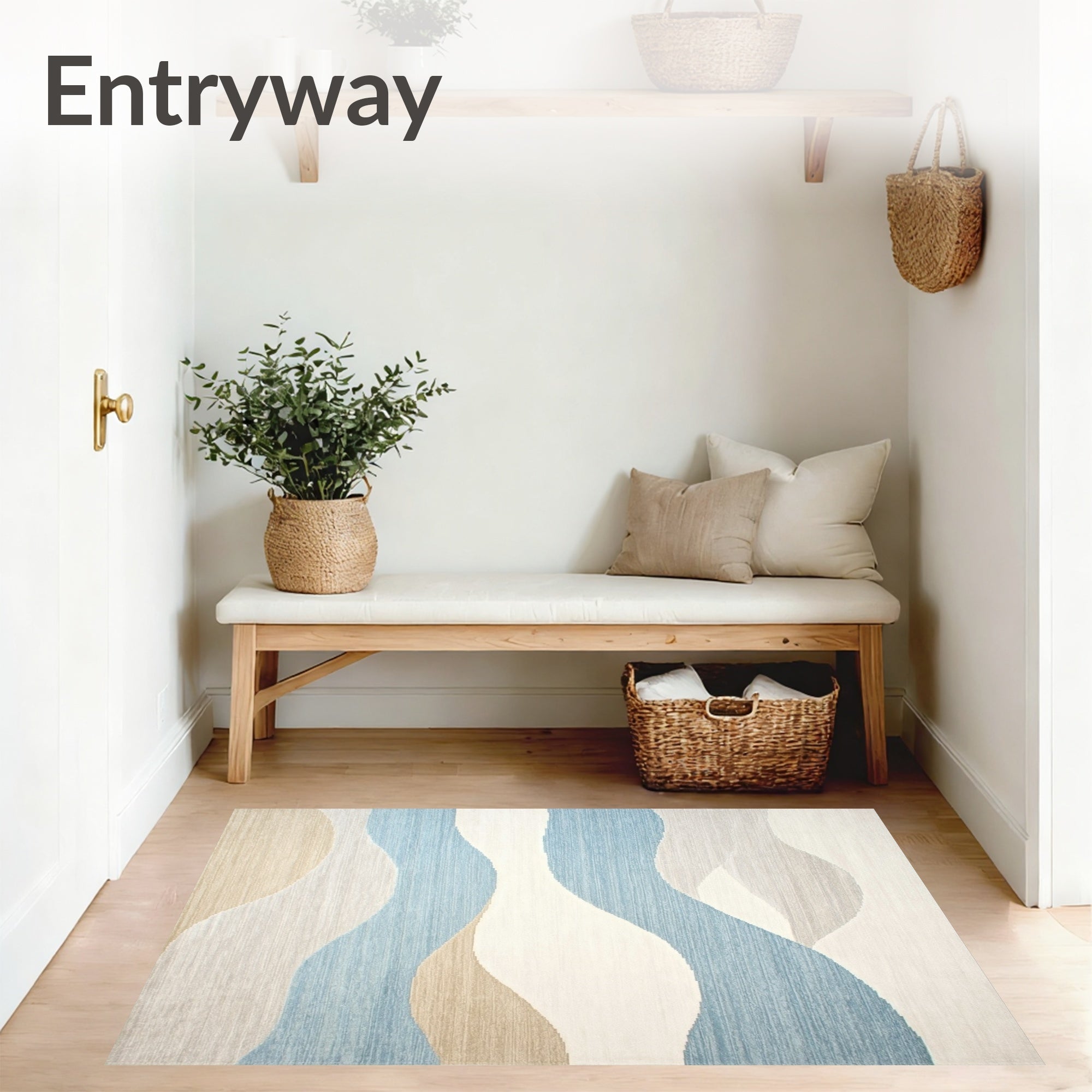 Ultra Soft Area Rug, Non Slip, Stain Resistant, Washable Area Rugs for Living Room, Bedroom, Coastal Breeze Woven Area Beach Inspired Design(Beige) Overview: