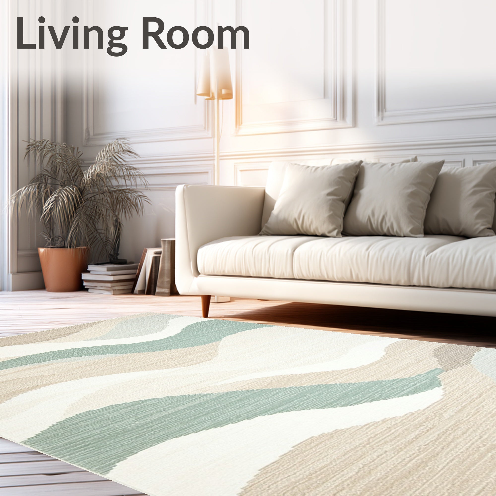 Ultra Soft Area Rug, Non Slip, Stain Resistant, Washable Area Rugs for Living Room, Bedroom, Coastal Calm Area Light Tan Shoreline Inspired Touch(Beige) Overview:
