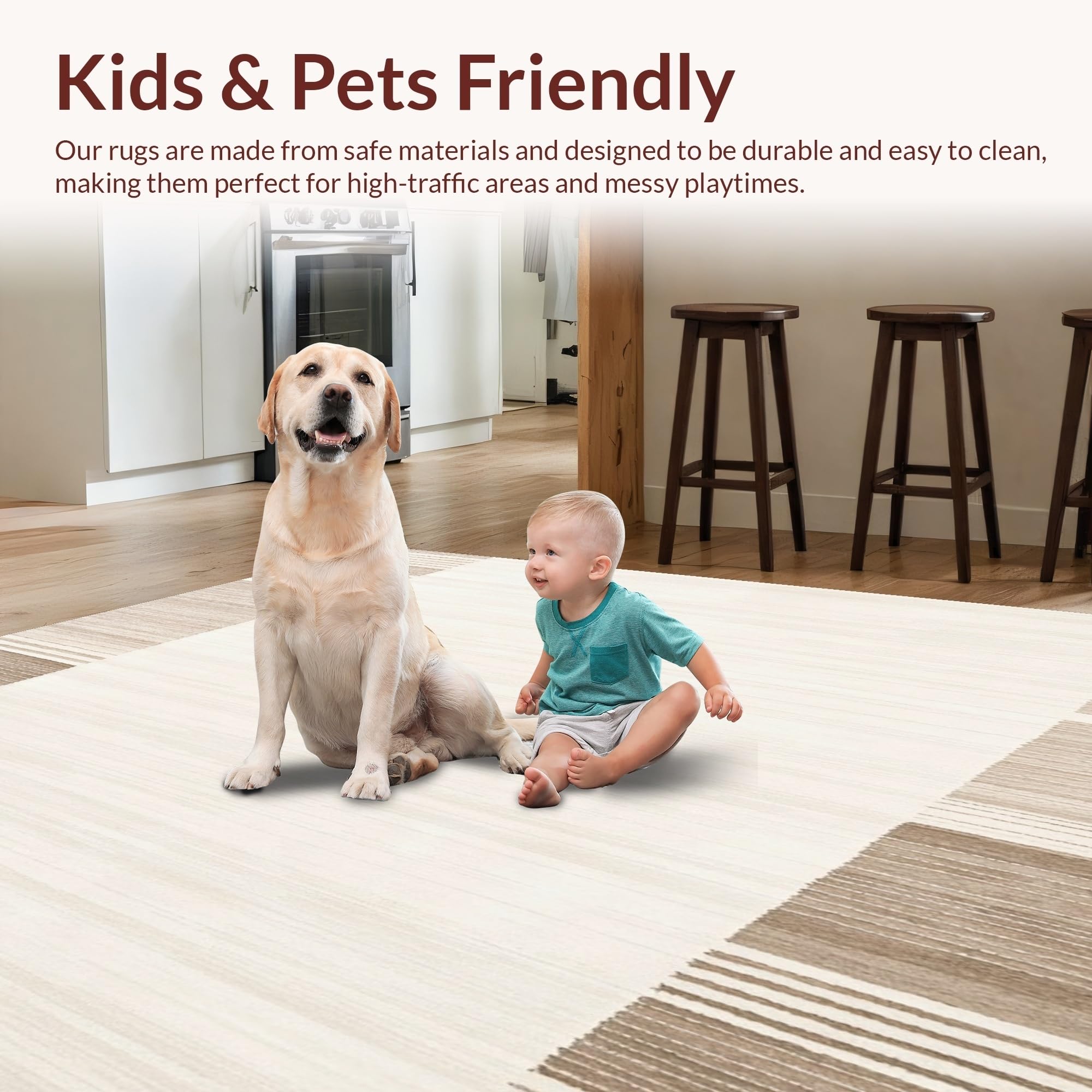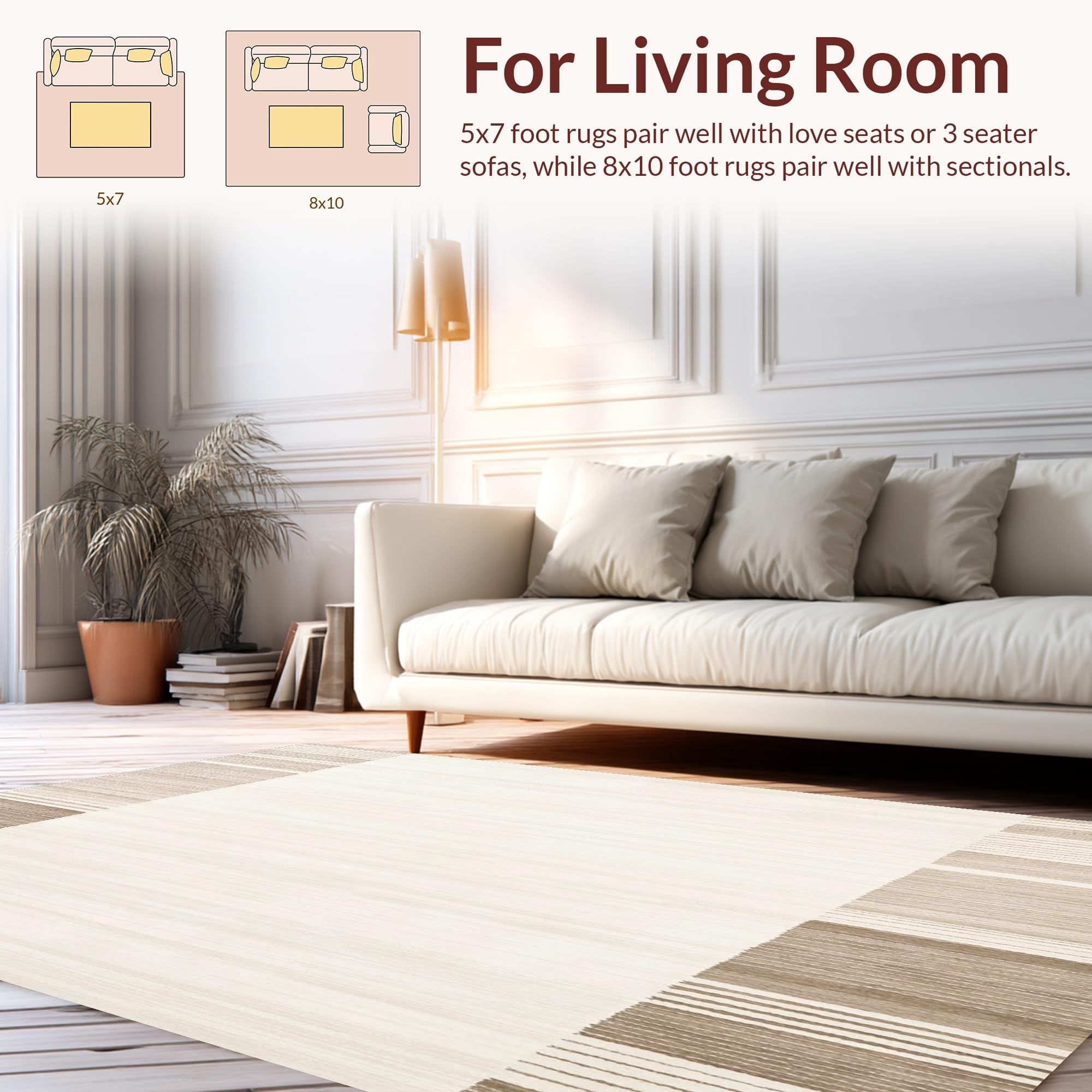 Ultra Soft Area Rug, Non Slip, Stain Resistant, Washable Area Rugs for Living Room, Bedroom, Coastal Calm Beige Textured Weave Decorative Area(Beige) Overview: