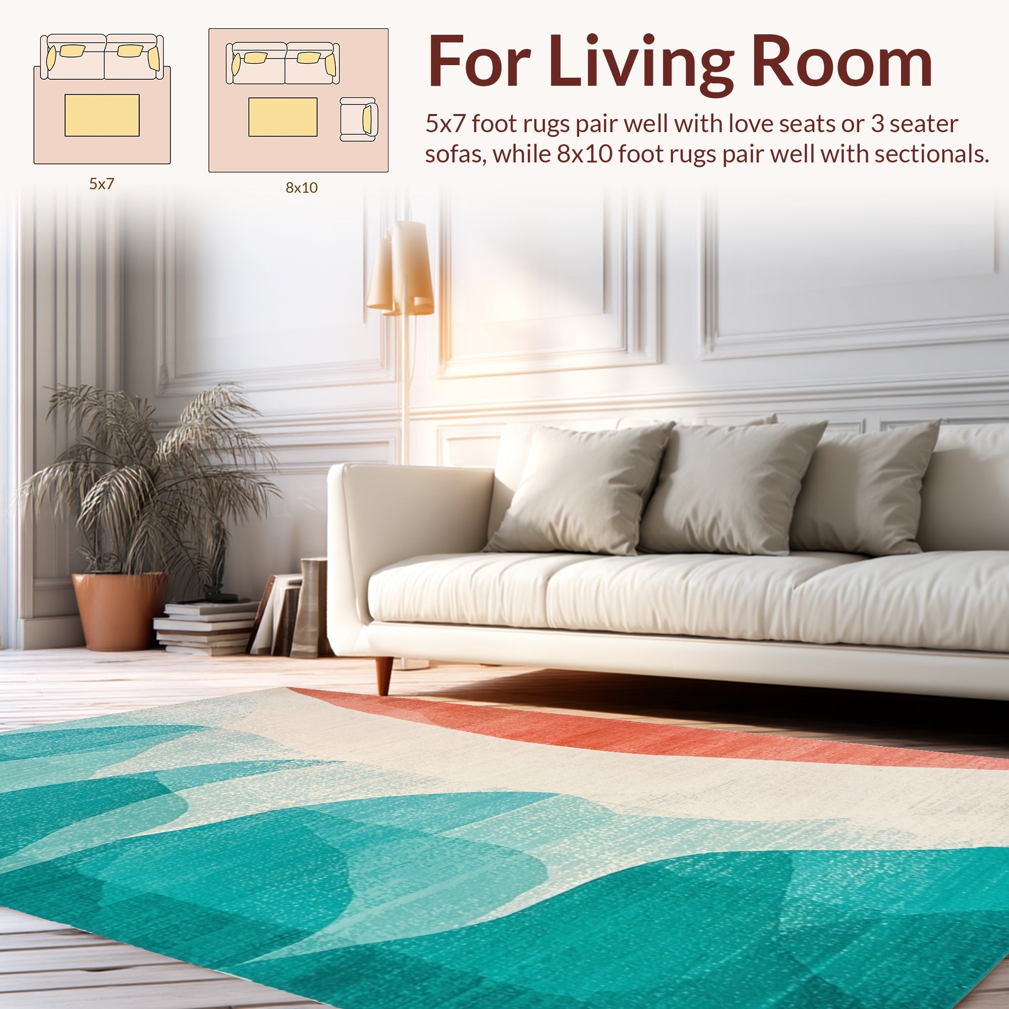 Ultra Soft Area Rug, Non Slip, Stain Resistant, Washable Area Rugs for Living Room, Bedroom, Coastal Catch Wave Planks Carpet with Artistic Shoreline Pattern(Green) Overview: