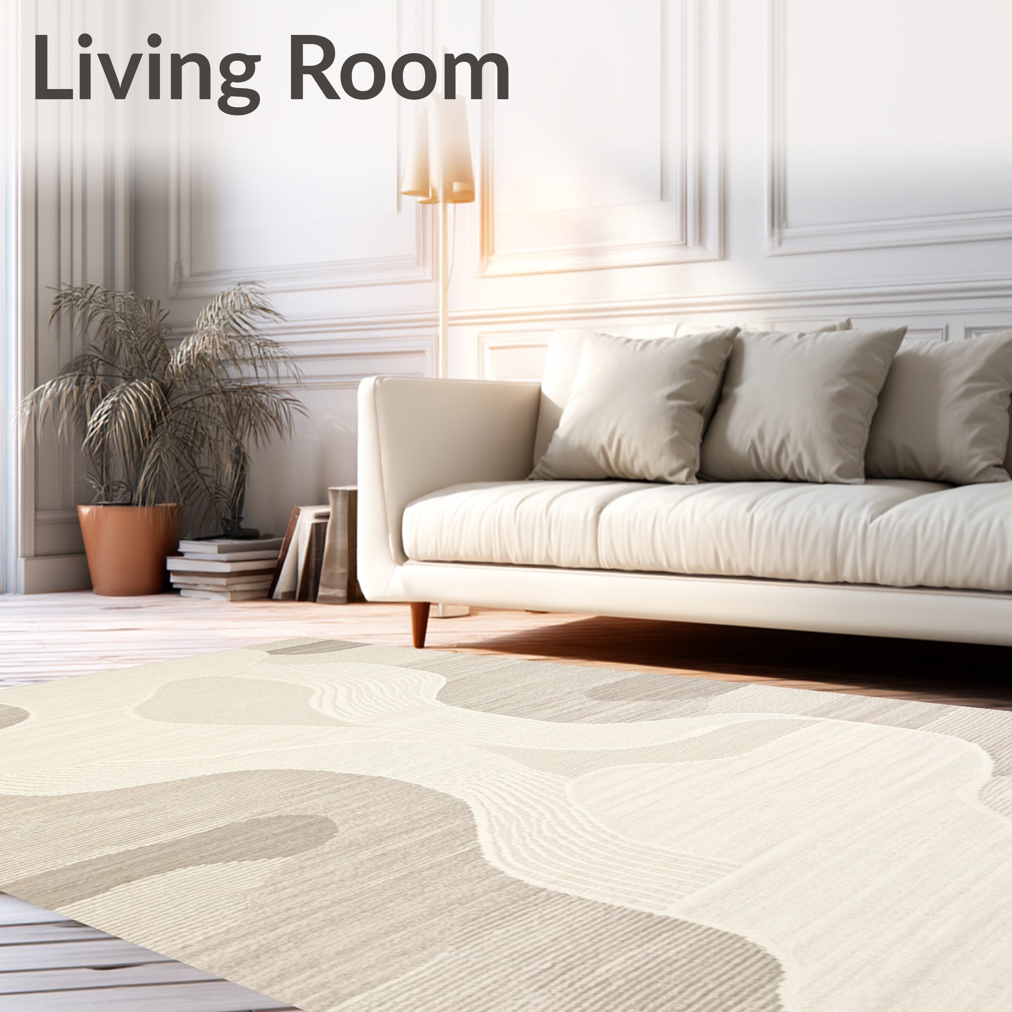 Ultra Soft Area Rug, Non Slip, Stain Resistant, Washable Area Rugs for Living Room, Bedroom, Coastal Charm Door Sand Inspired Beige Wave(Beige) Overview: