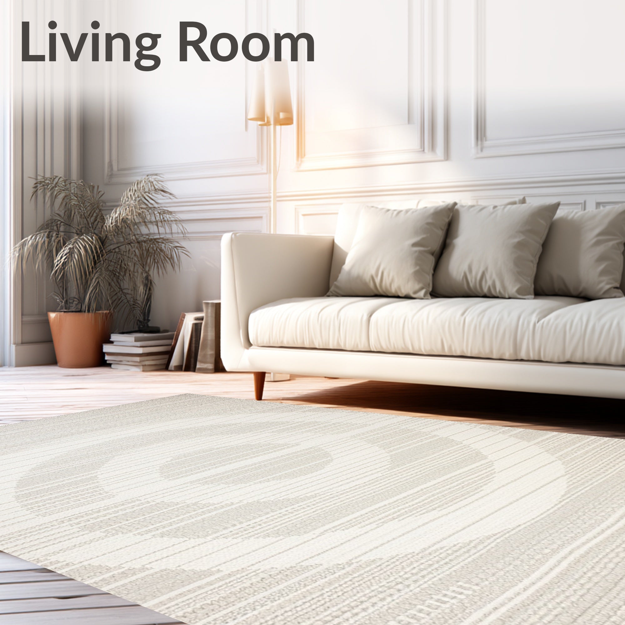 Ultra Soft Area Rug, Non Slip, Stain Resistant, Washable Area Rugs for Living Room, Bedroom, Coastal Charm Round Serene Ivory & Light Beige Woven Circle Area(Gray) Overview: