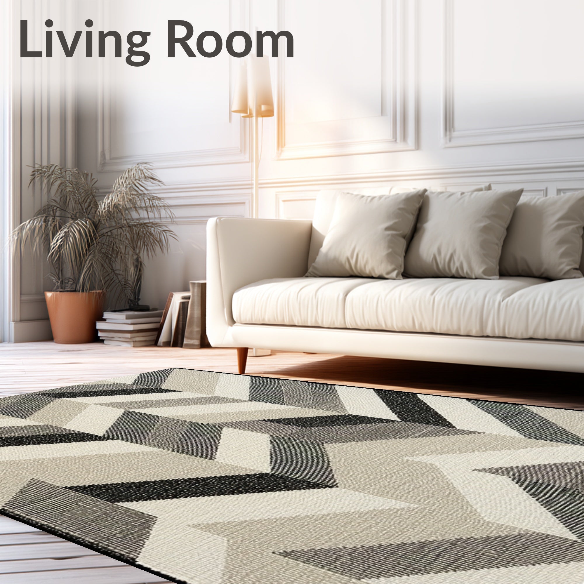 Ultra Soft Area Rug, Non Slip, Stain Resistant, Washable Area Rugs for Living Room, Bedroom, Coastal Chic Herringbone With Weather Resistant Reversible(Beige) Overview: