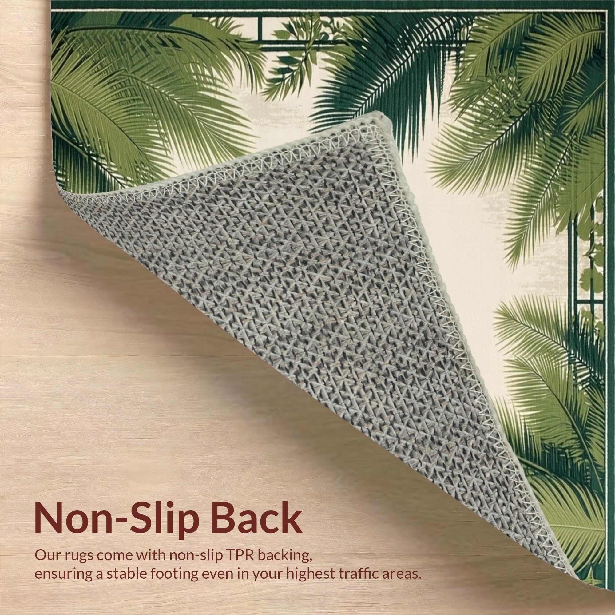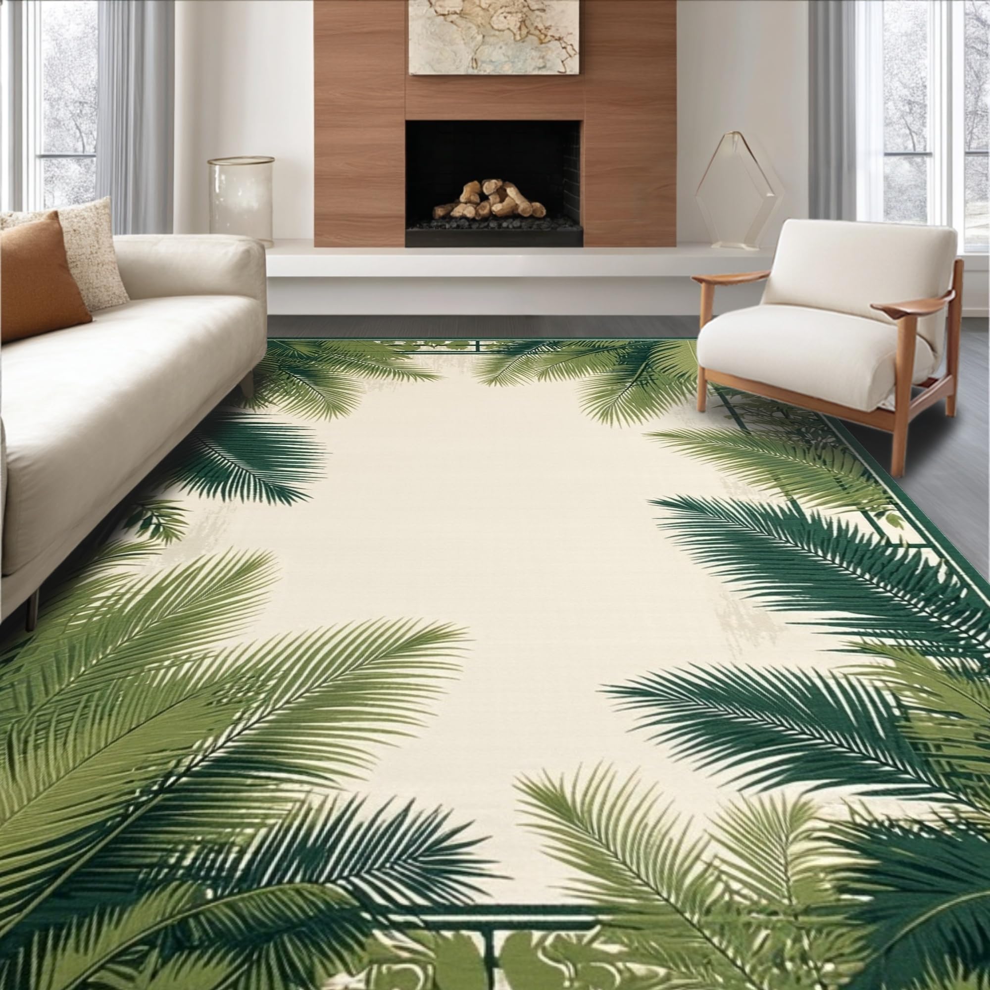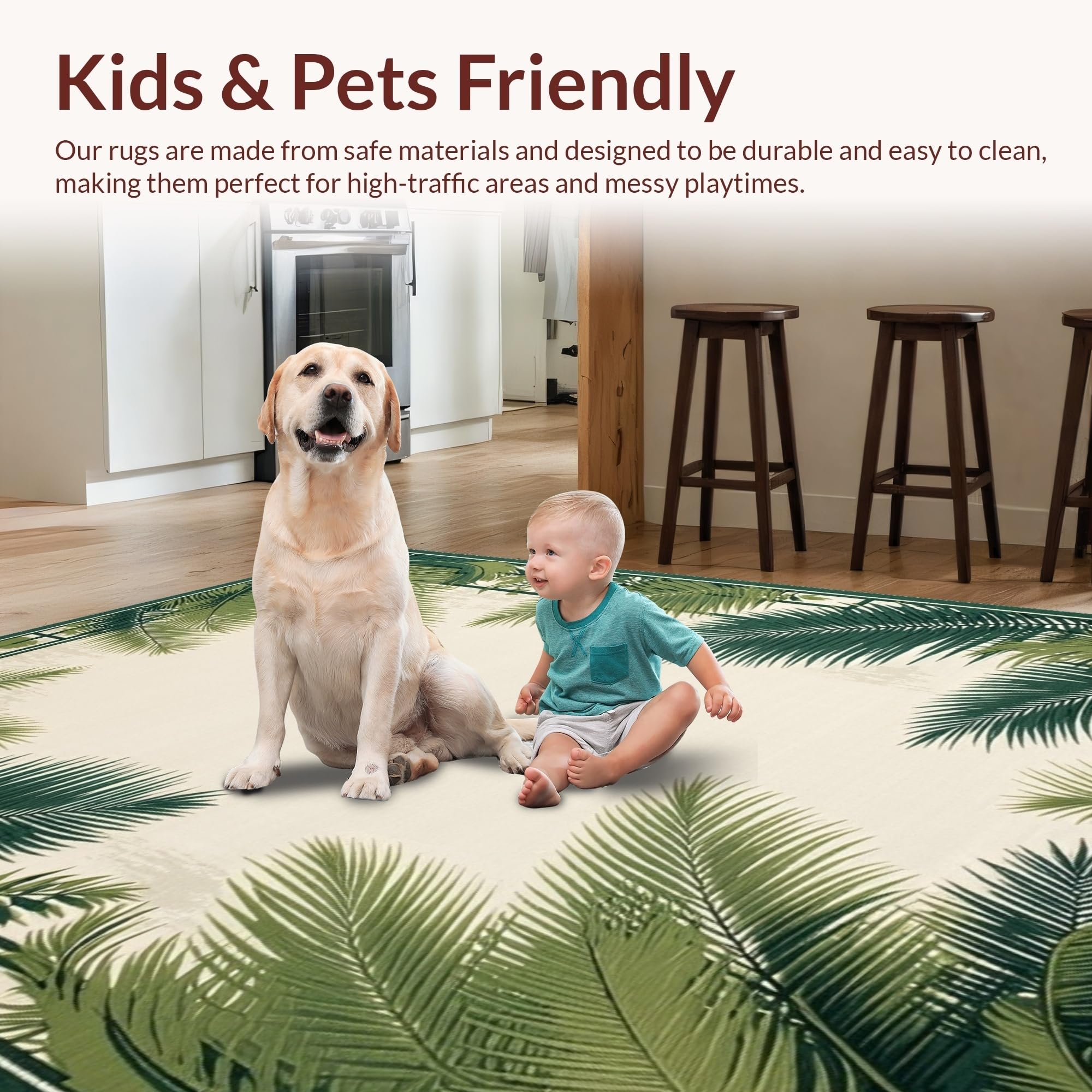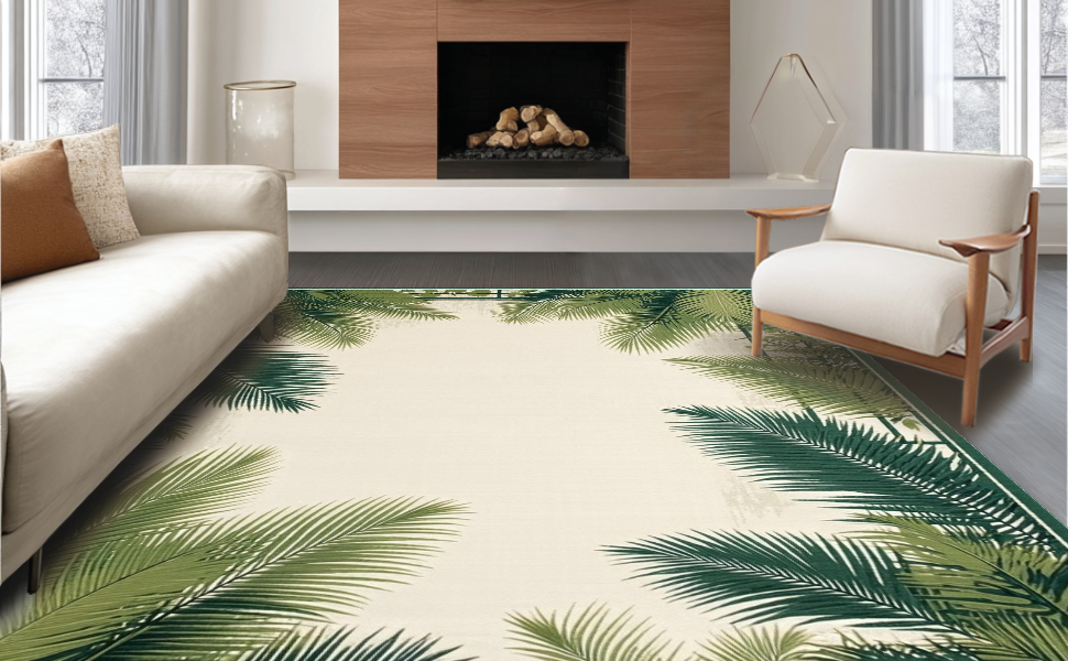Ultra Soft Area Rug, Non Slip, Stain Resistant, Washable Area Rugs for Living Room, Bedroom, Coastal Chic Tropical Aesthetic(Green) Overview: