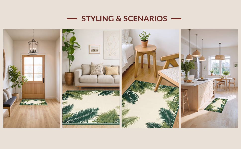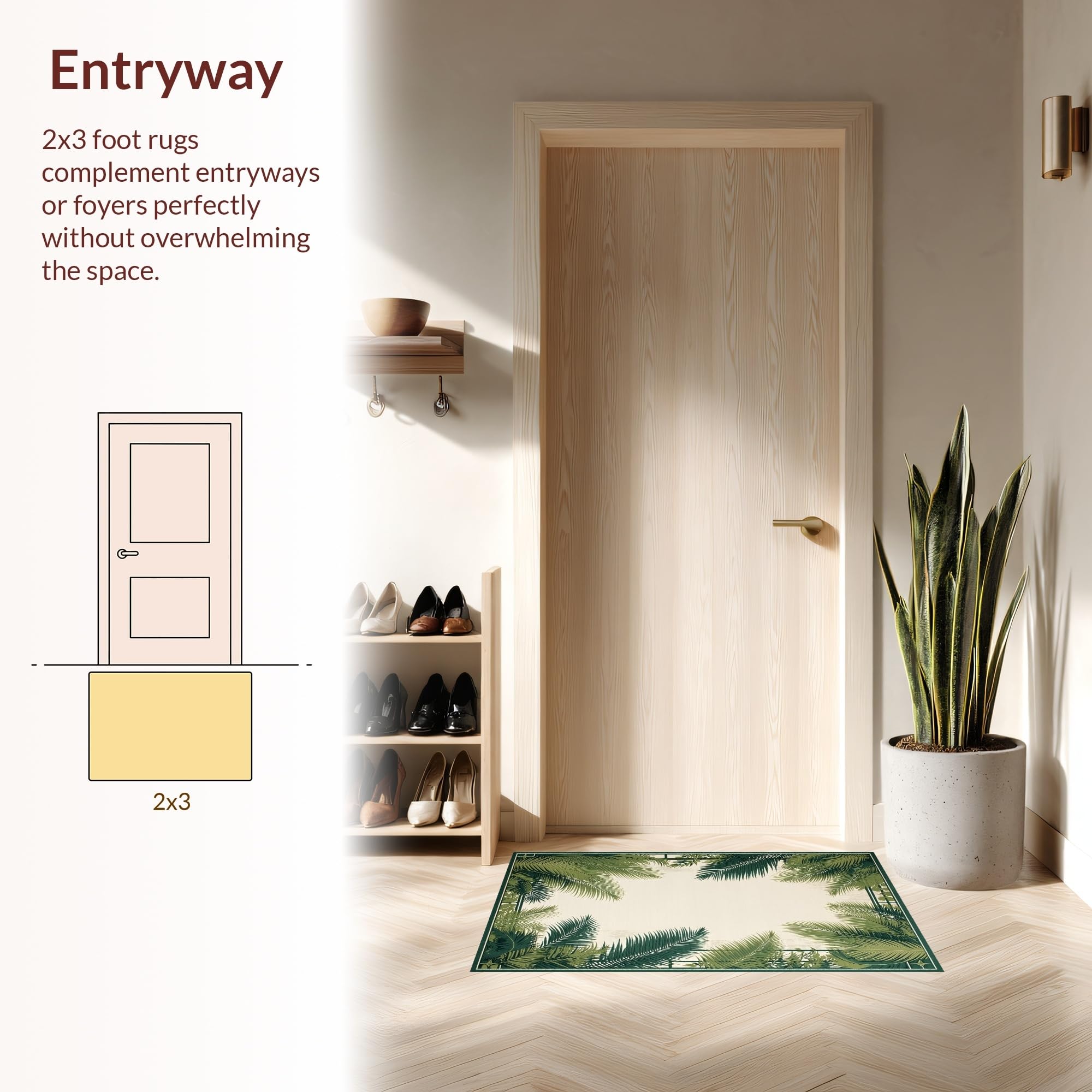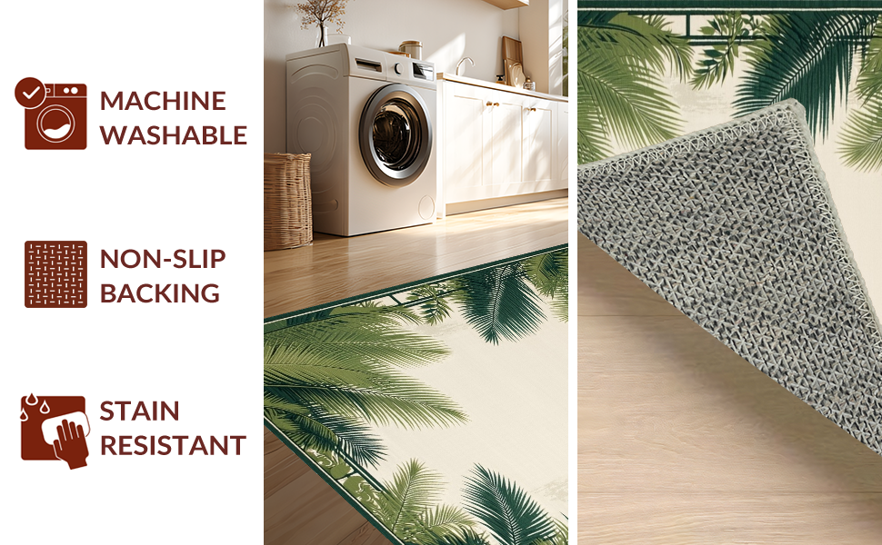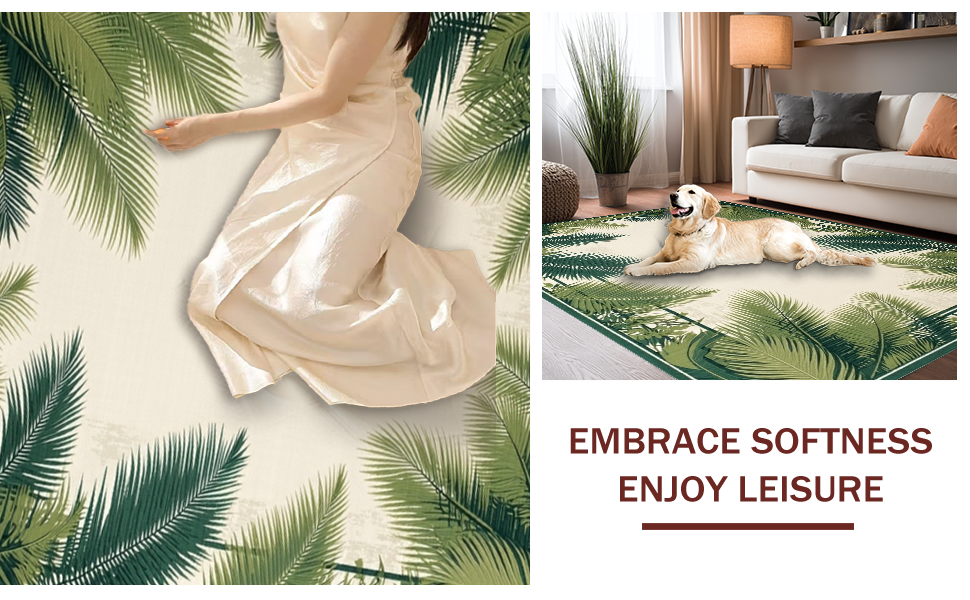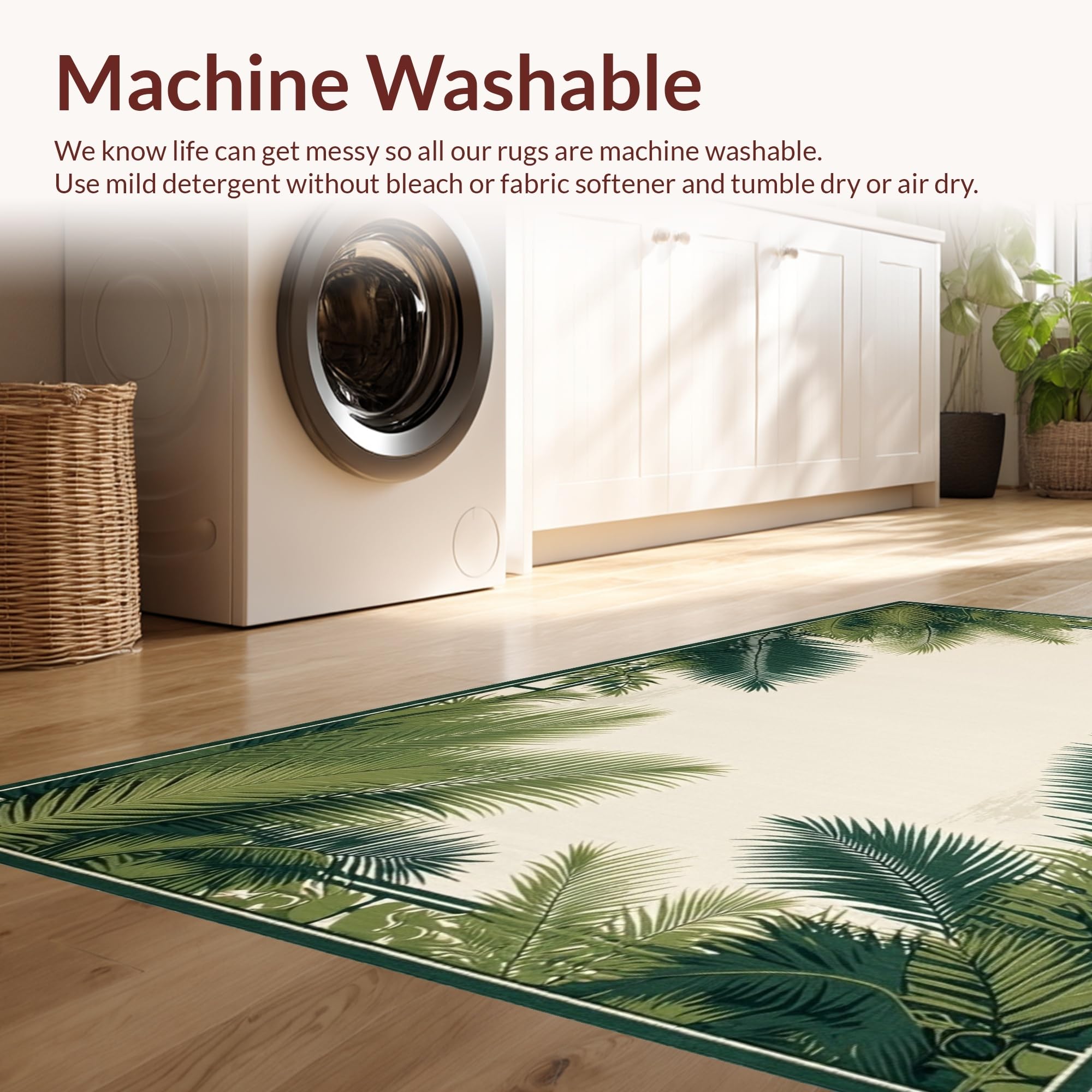 Ultra Soft Area Rug, Non Slip, Stain Resistant, Washable Area Rugs for Living Room, Bedroom, Coastal Chic Tropical Aesthetic(Green) Overview:
