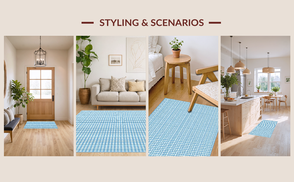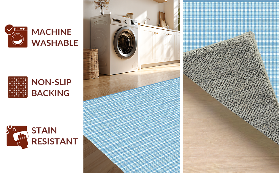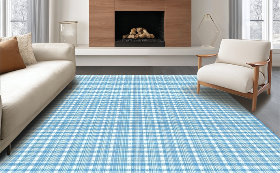 Ultra Soft Area Rug, Non Slip, Stain Resistant, Washable Area Rugs for Living Room, Bedroom, Coastal Gingham Geometric Flair(Blue) Overview: