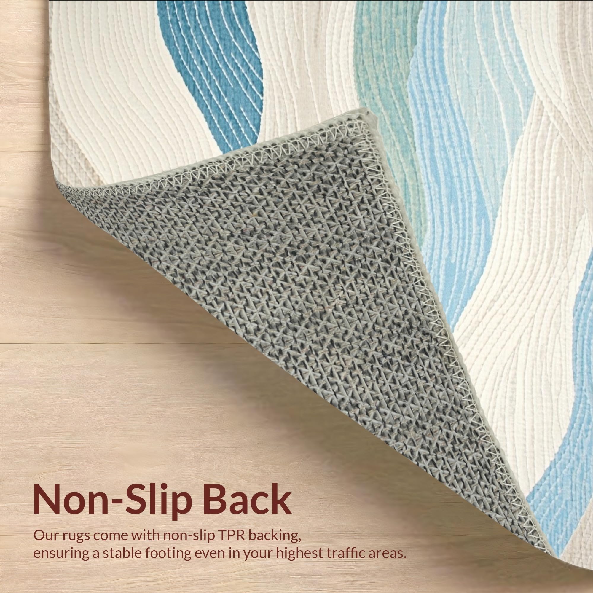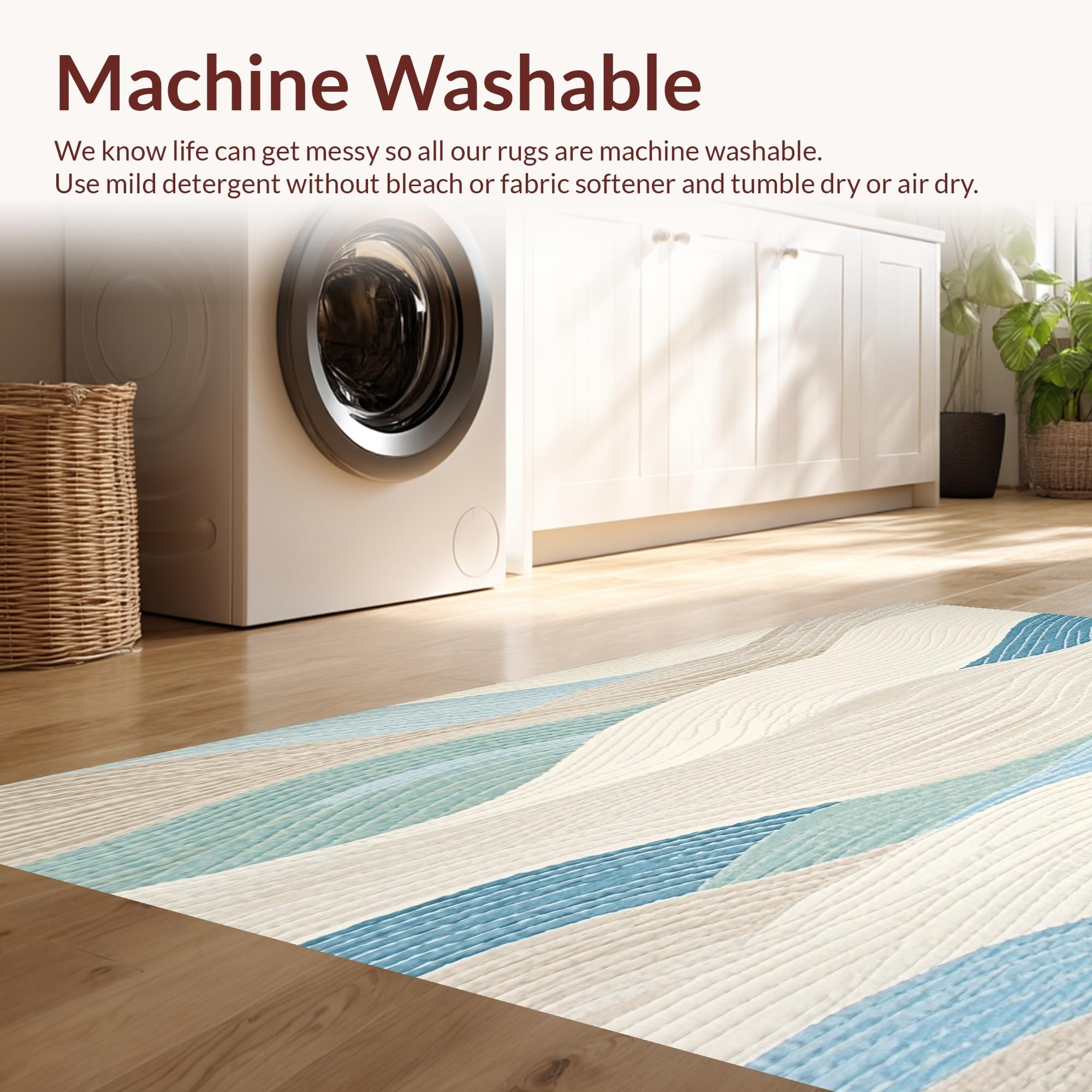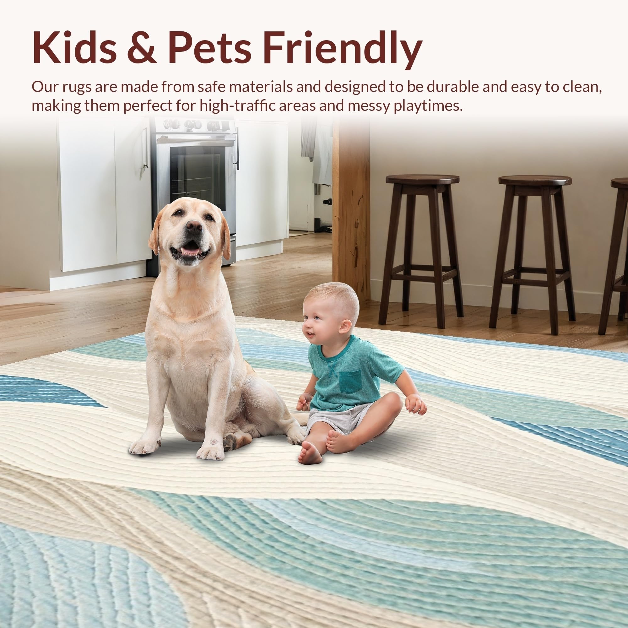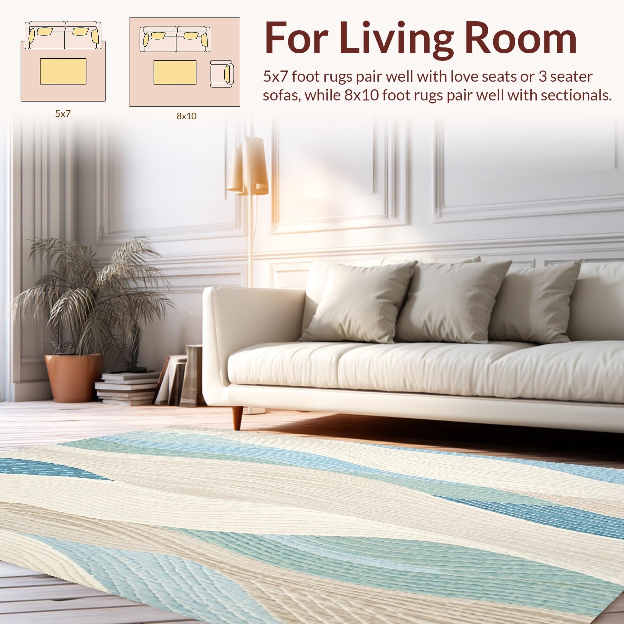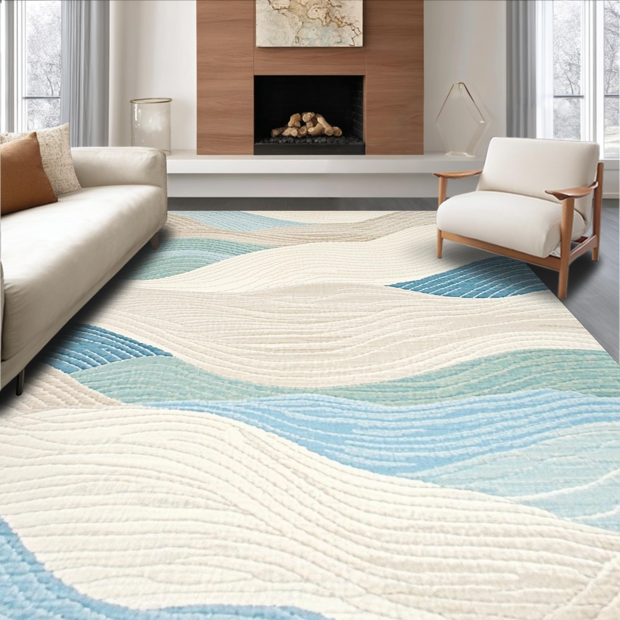Ultra Soft Area Rug, Non Slip, Stain Resistant, Washable Area Rugs for Living Room, Bedroom, Coastal Harmony Area Serene Tidal Ripple(Beige) Overview: